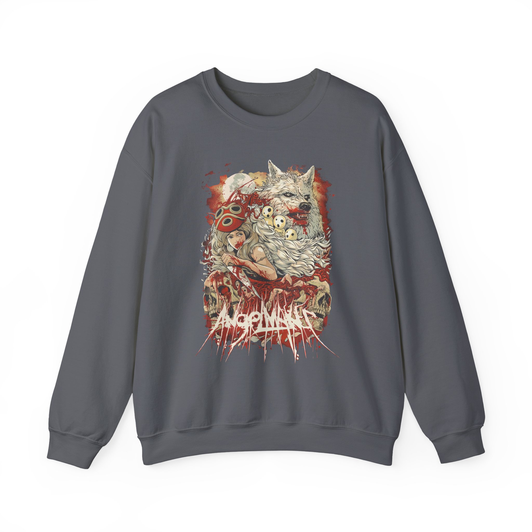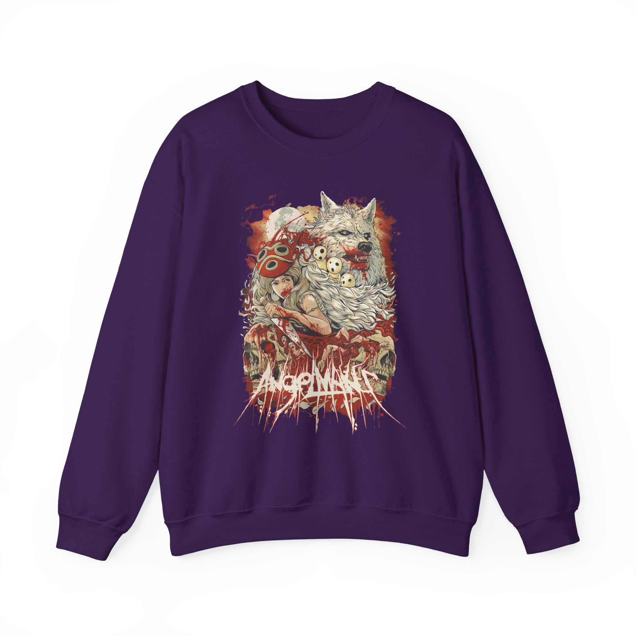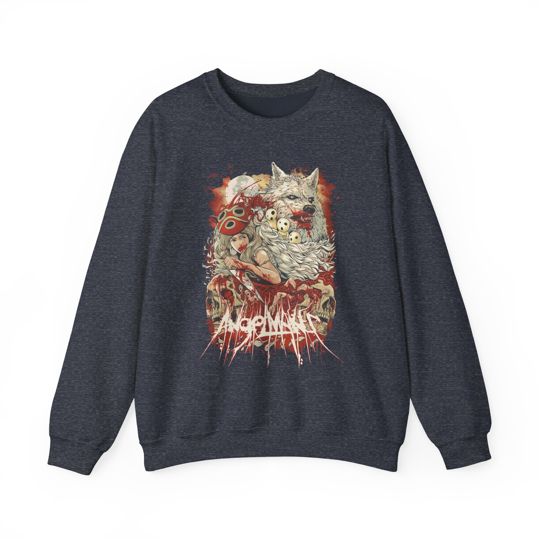 Ideal for any situation, a Angelmaker Mononoke unisex heavy blend crewneck sweatshirt is pure comfort. These garments are made from polyester and cotton. This combination helps designs come out looking fresh and beautiful. The collar is ribbed knit, so it retains its shape even after washing. There are no itchy side seams on these sweaters.
