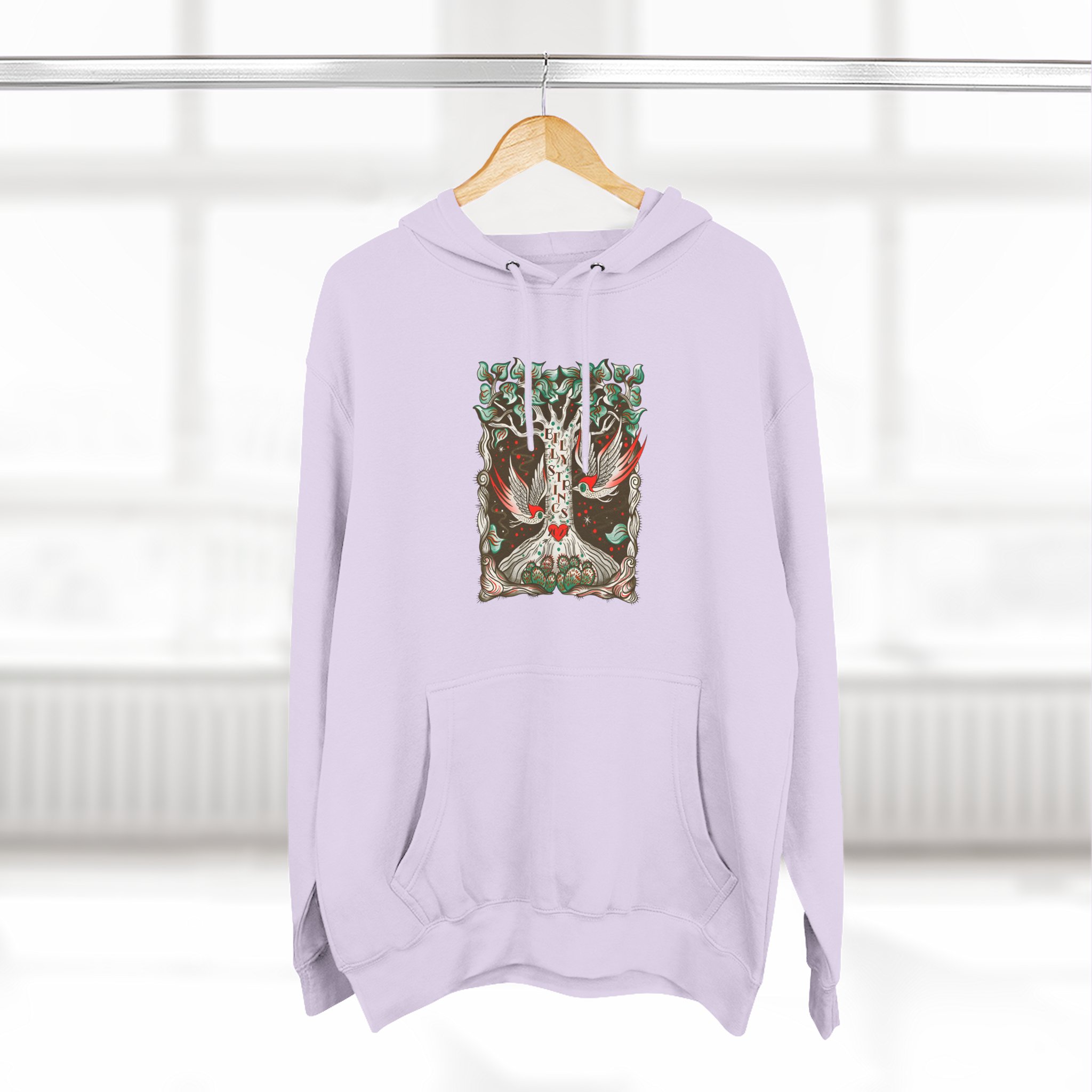 Beat the cold with this Billy Strings Woodpecker premium pullover hoodie that’s just the right layer of warm and cozy. Made with three-panel fleece lining, this pullover is double stitched for durability and roomy. Pick one in your favorite color to match your style.