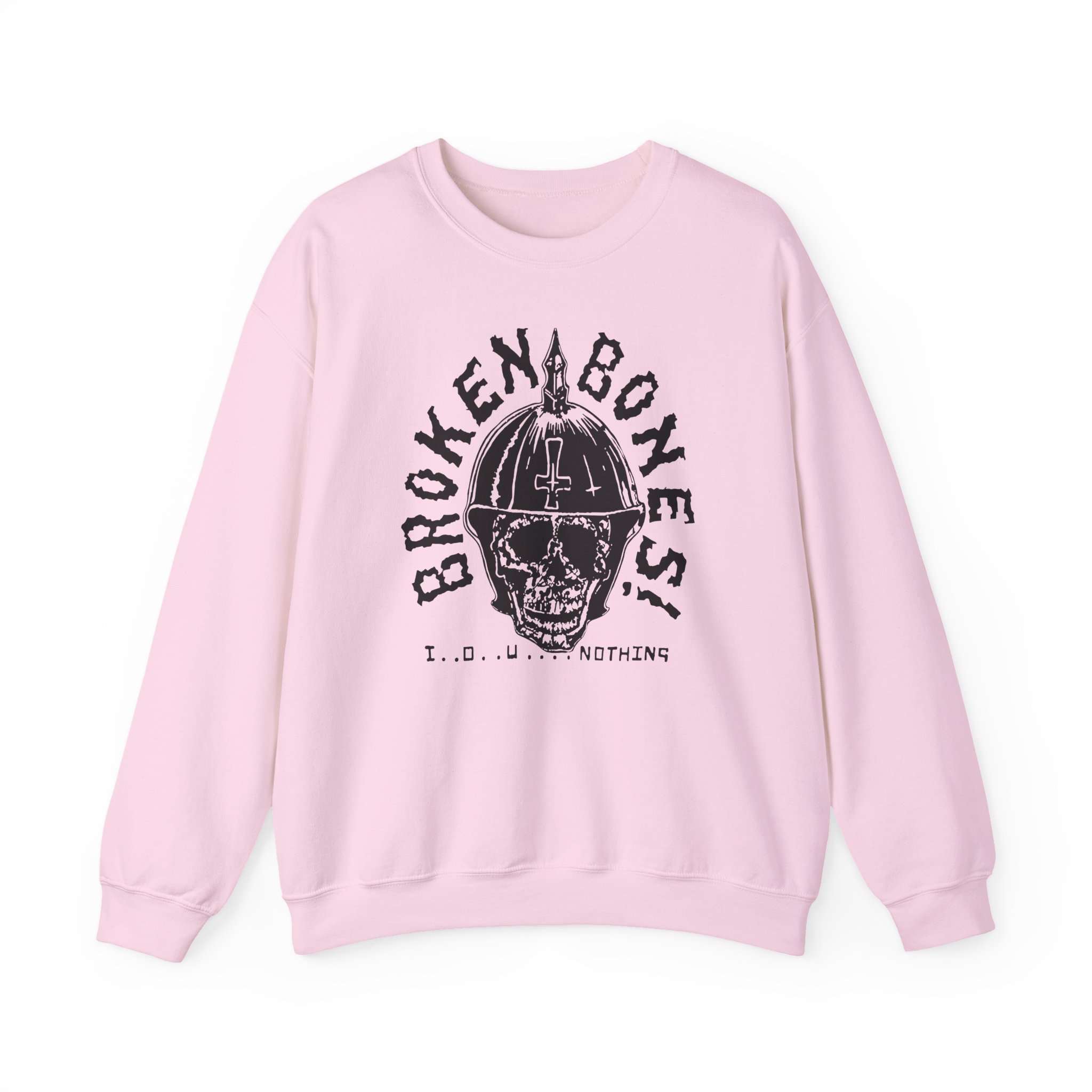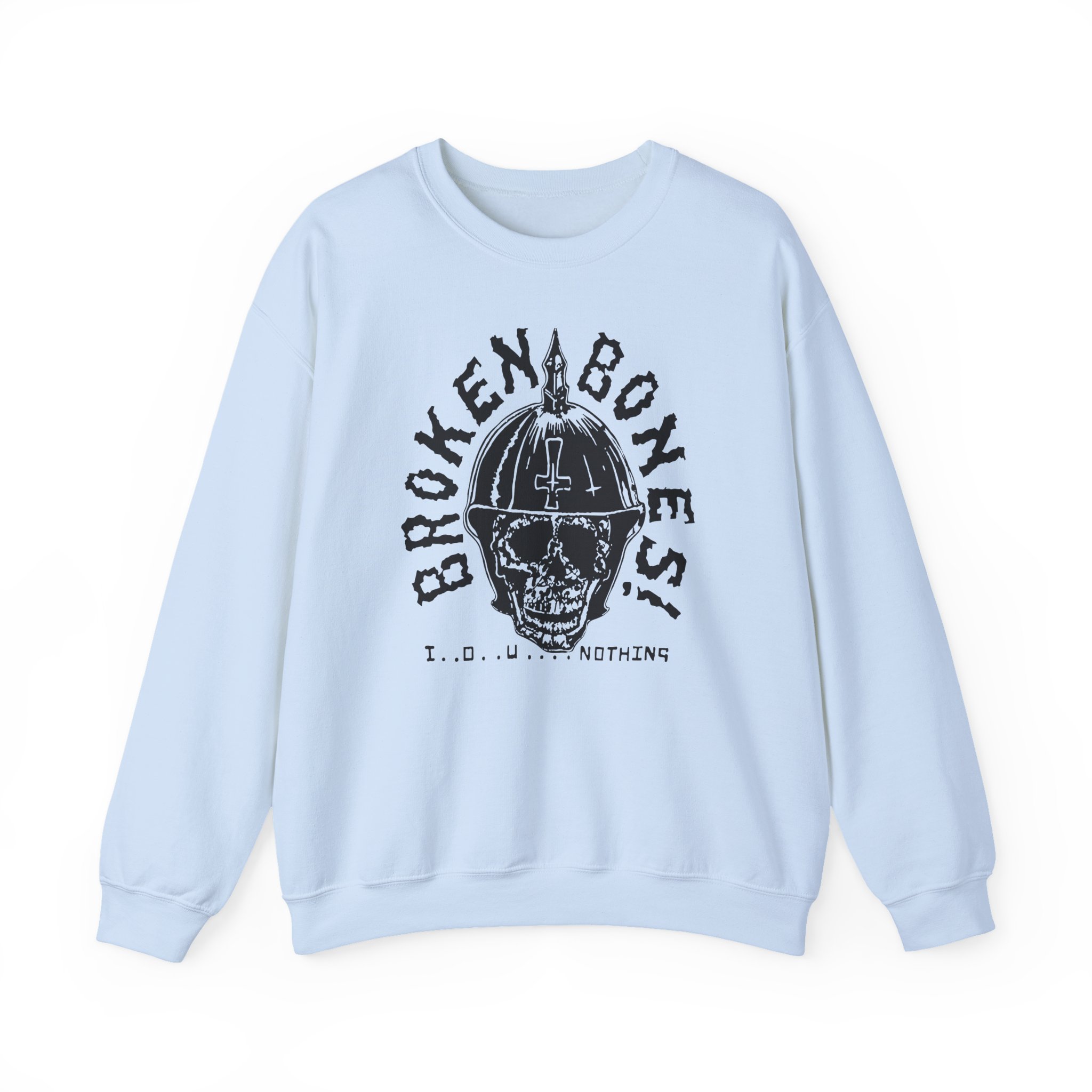 Ideal for any situation, a Broken Bones IOU Nothing unisex heavy blend crewneck sweatshirt is pure comfort. These garments are made from polyester and cotton. This combination helps designs come out looking fresh and beautiful. The collar is ribbed knit, so it retains its shape even after washing. There are no itchy side seams on these sweaters.
