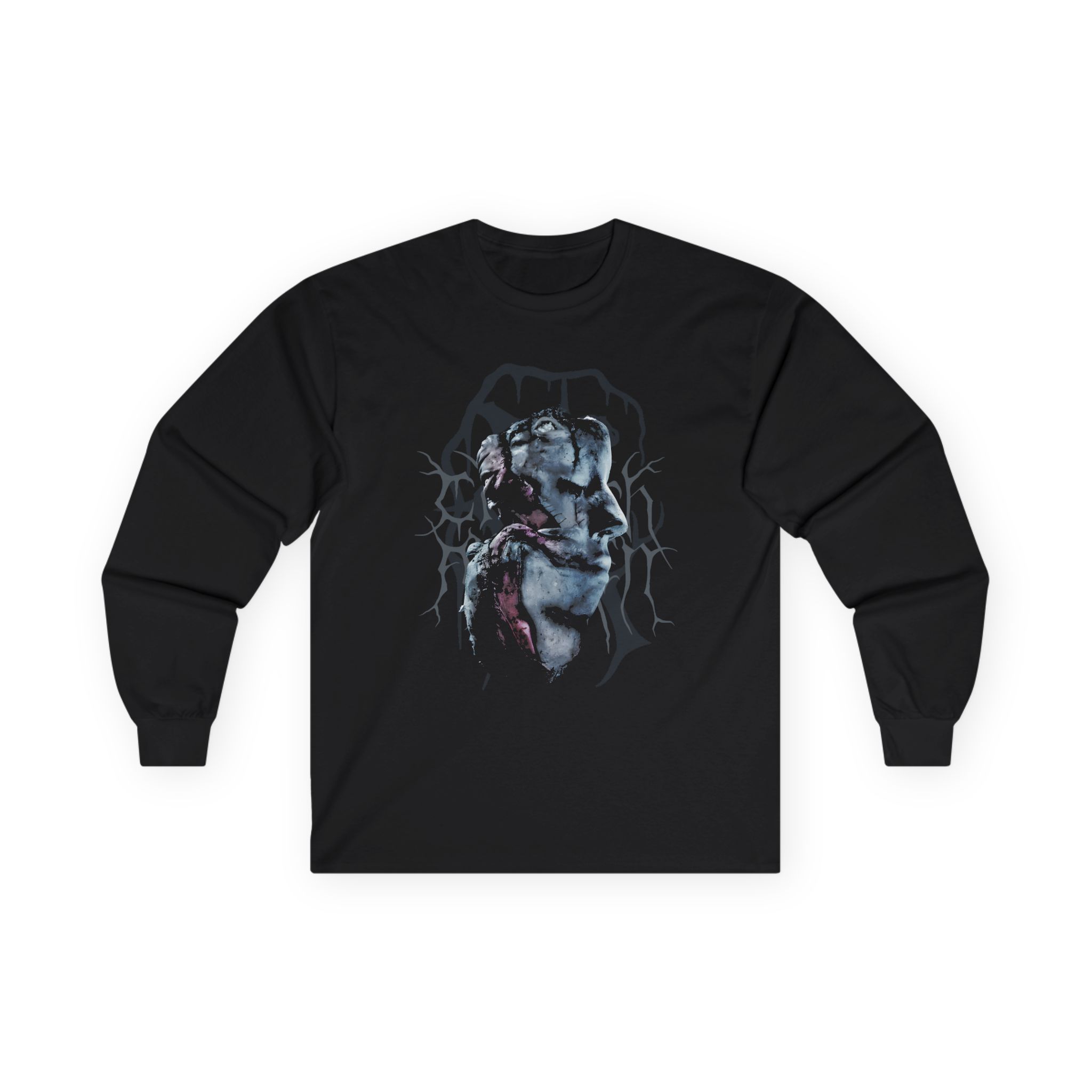 A bit more formal than a standard-issue t-shirt, the Carach Angren Head ultra cotton long sleeve tee is a clear comfort winner. The sleeves also act as a nice frame. There are no side seams. The shoulders are taped for improved durability. This makes for a good fitting around the shoulders and neck. The cotton used for these shirts is environmentally friendly.