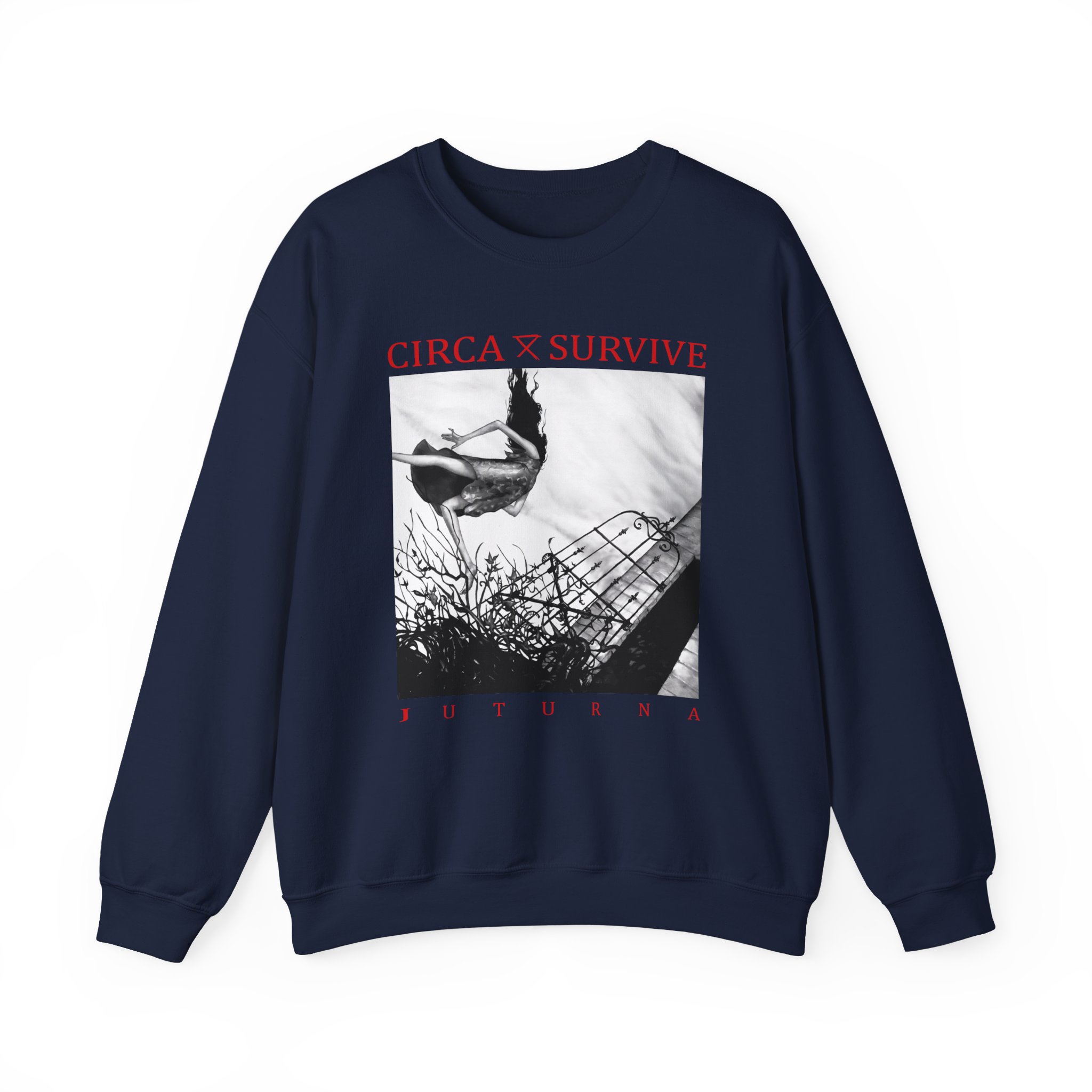 Ideal for any situation, a Circa Survive Juturna unisex heavy blend crewneck sweatshirt is pure comfort. These garments are made from polyester and cotton. This combination helps designs come out looking fresh and beautiful. The collar is ribbed knit, so it retains its shape even after washing. There are no itchy side seams on these sweaters.