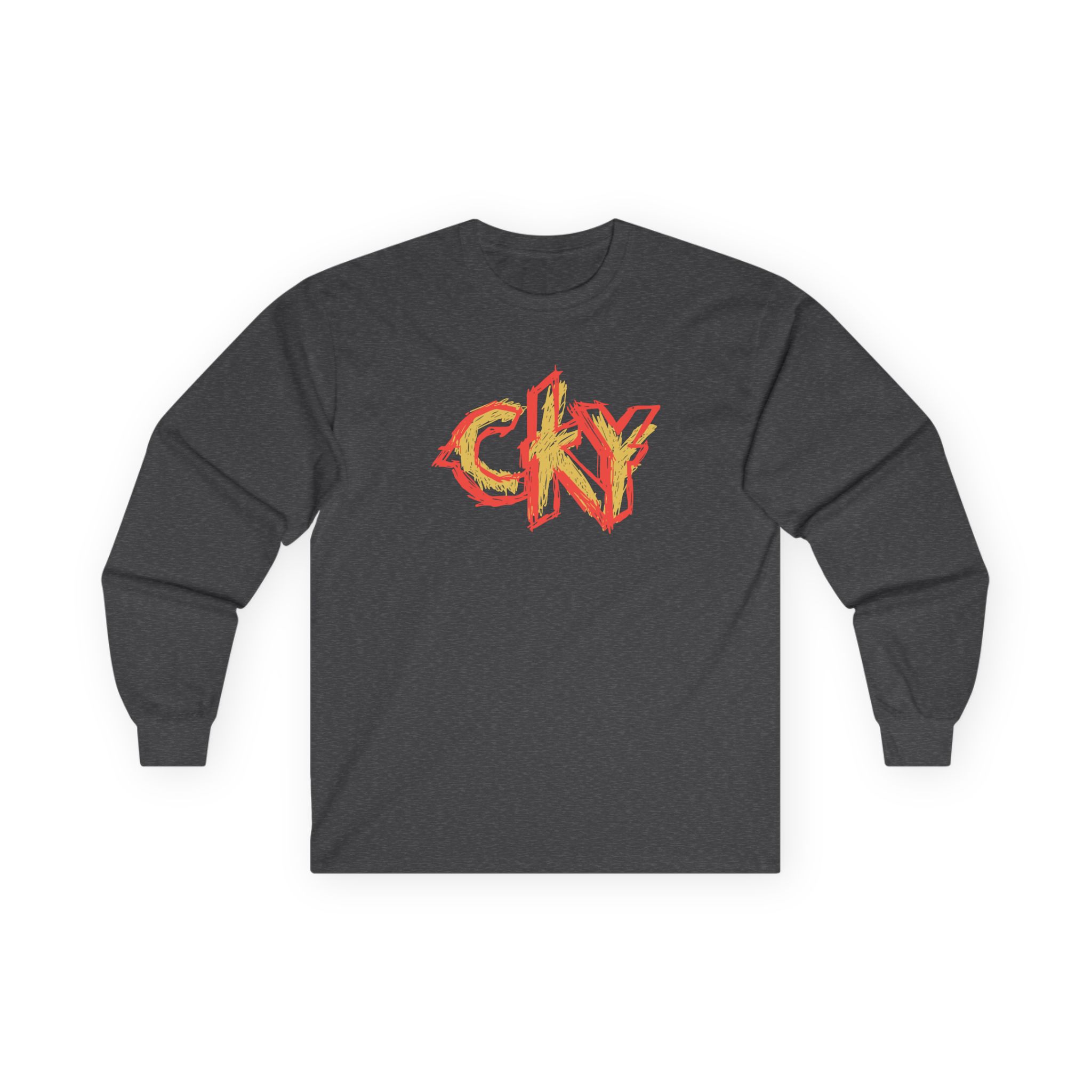 A bit more formal than a standard-issue t-shirt, the CKY Scribble Logo ultra cotton long sleeve tee is a clear comfort winner. The sleeves also act as a nice frame. There are no side seams. The shoulders are taped for improved durability. This makes for a good fitting around the shoulders and neck. The cotton used for these shirts is environmentally friendly.