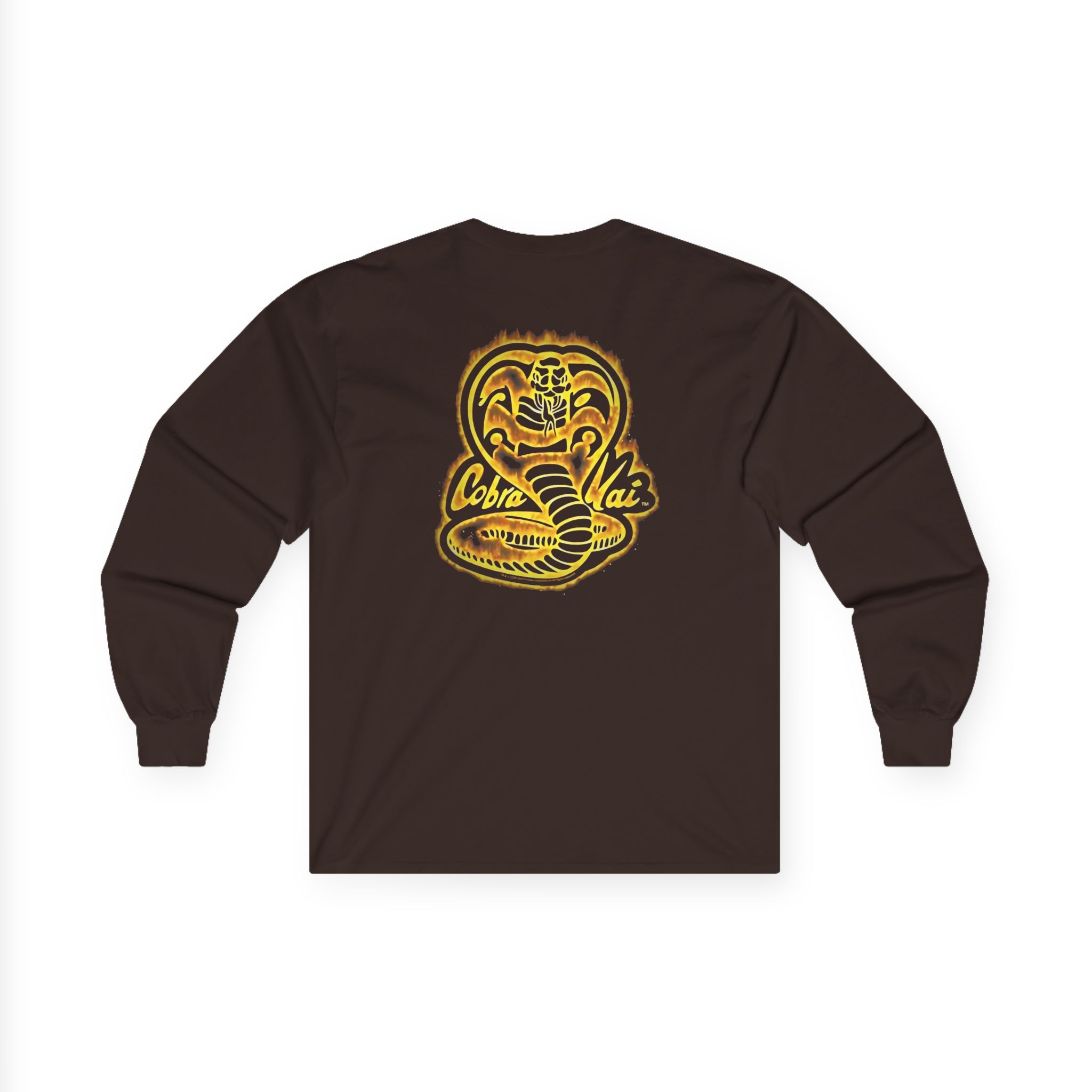 A bit more formal than a standard-issue t-shirt, the Cobra Kai Fire ultra cotton long sleeve tee is a clear comfort winner. The sleeves also act as a nice frame. There are no side seams. The shoulders are taped for improved durability. This makes for a good fitting around the shoulders and neck. The cotton used for these shirts is environmentally friendly.