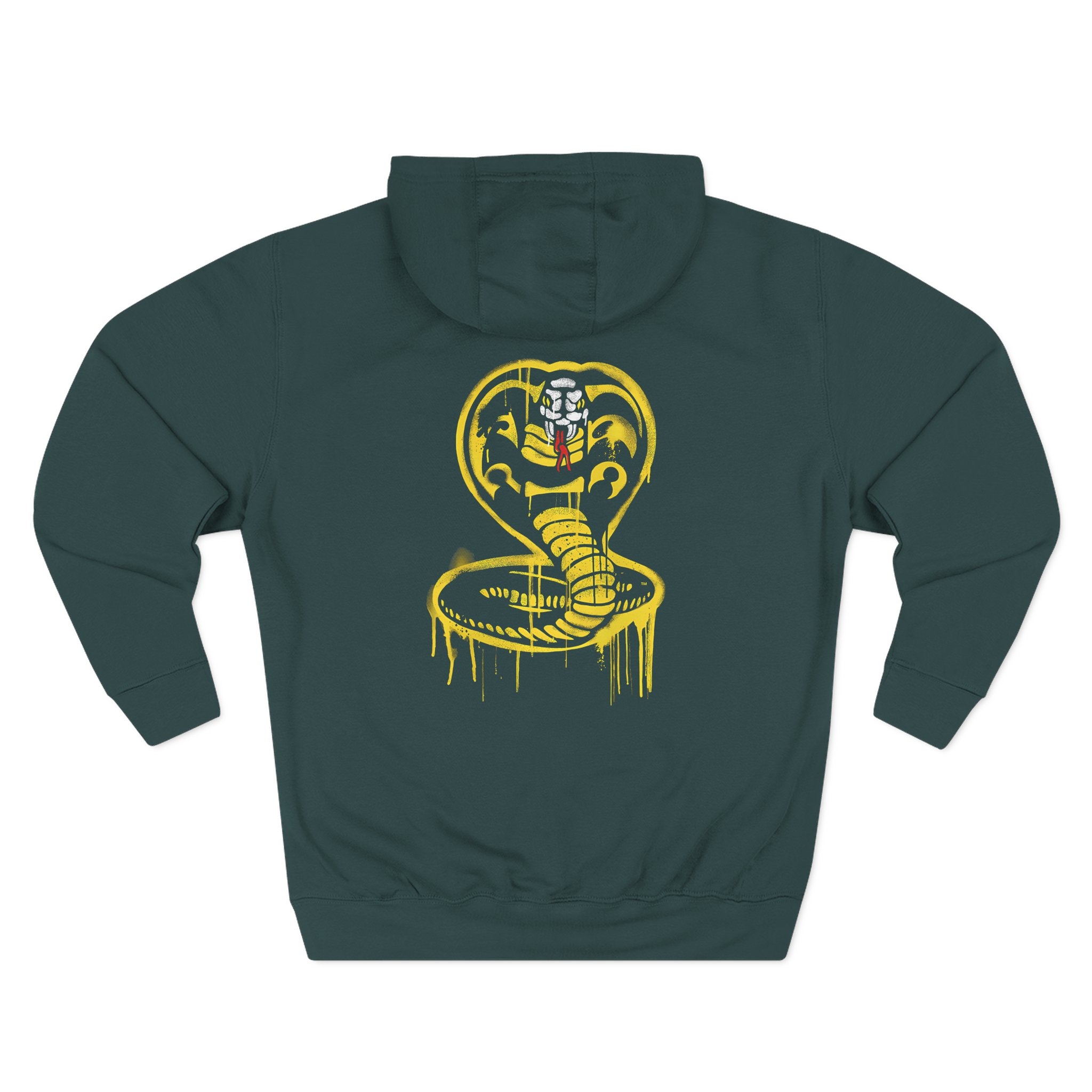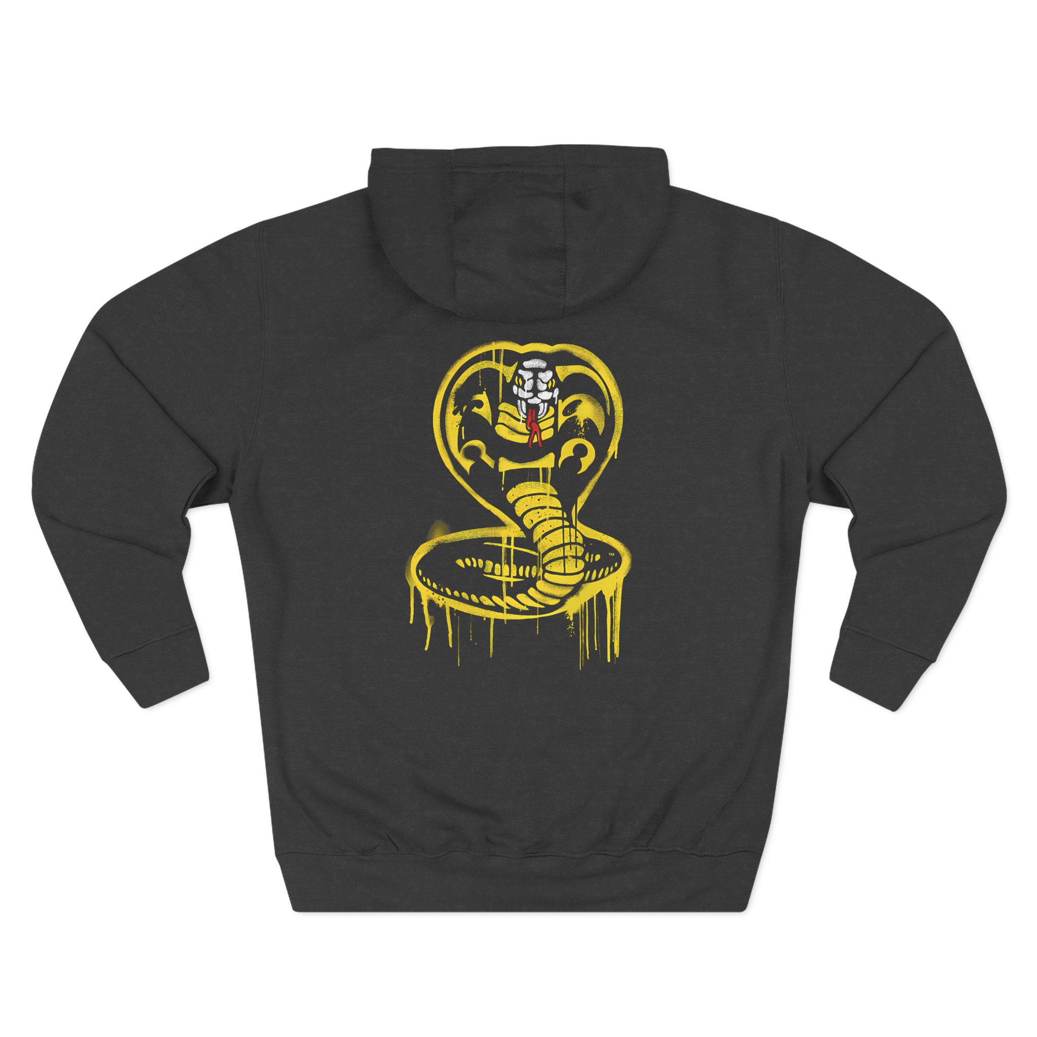 Beat the cold with this Cobra Kai Graffiti Cobra premium pullover hoodie that’s just the right layer of warm and cozy. Made with three-panel fleece lining, this pullover is double stitched for durability and roomy. Pick one in your favorite color to match your style.