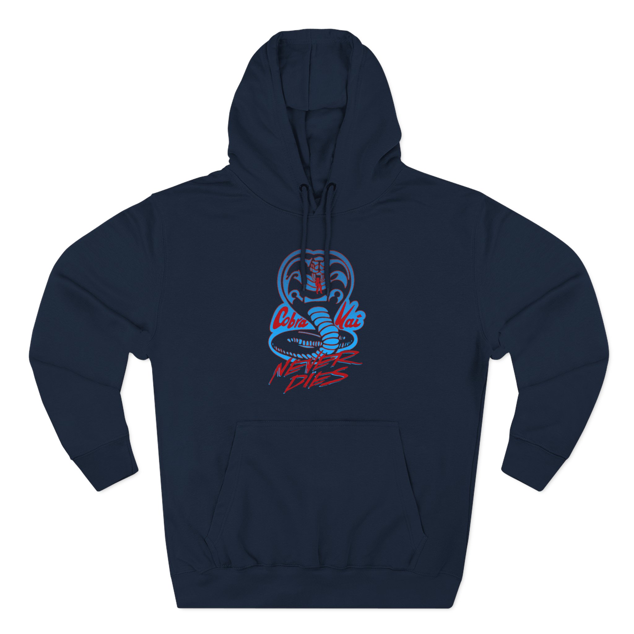 Beat the cold with this Cobra Kai Never Dies premium pullover hoodie that’s just the right layer of warm and cozy. Made with three-panel fleece lining, this pullover is double stitched for durability and roomy. Pick one in your favorite color to match your style.