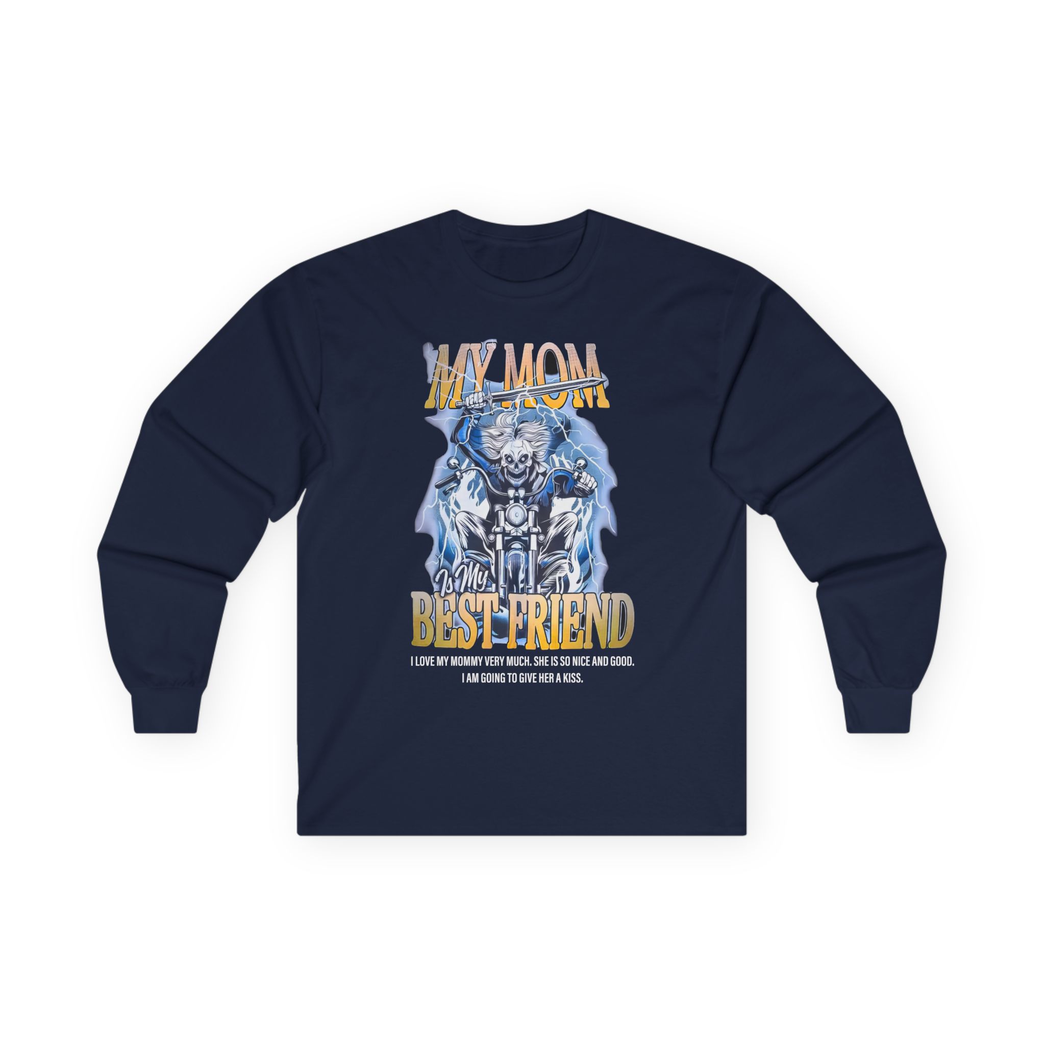 A bit more formal than a standard-issue t-shirt, the Cold Ones the Mommy ultra cotton long sleeve tee is a clear comfort winner. The sleeves also act as a nice frame. There are no side seams. The shoulders are taped for improved durability. This makes for a good fitting around the shoulders and neck. The cotton used for these shirts is environmentally friendly.