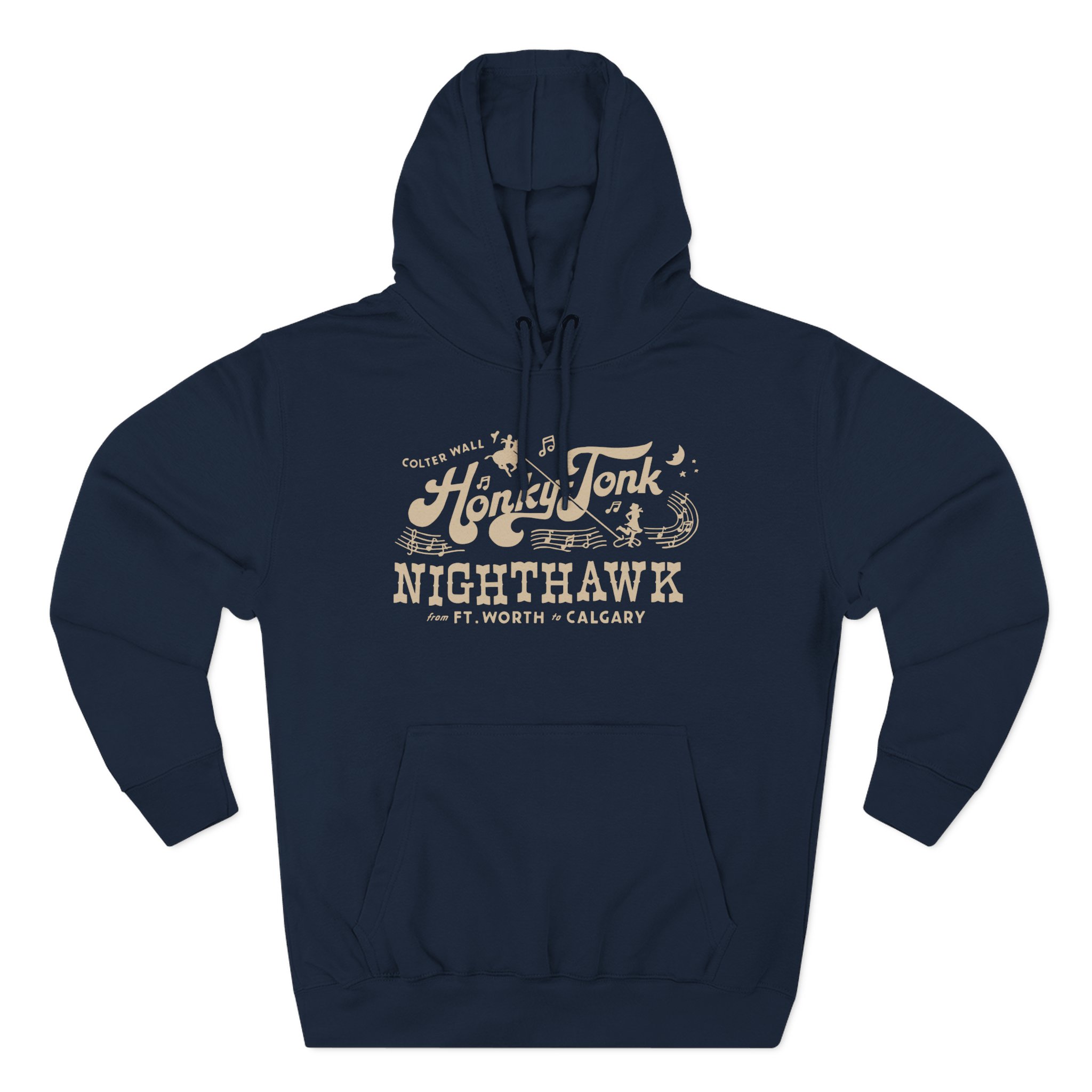 Beat the cold with this Colter Wall Honky-tonk Nighthawk premium pullover hoodie that’s just the right layer of warm and cozy. Made with three-panel fleece lining, this pullover is double stitched for durability and roomy. Pick one in your favorite color to match your style.