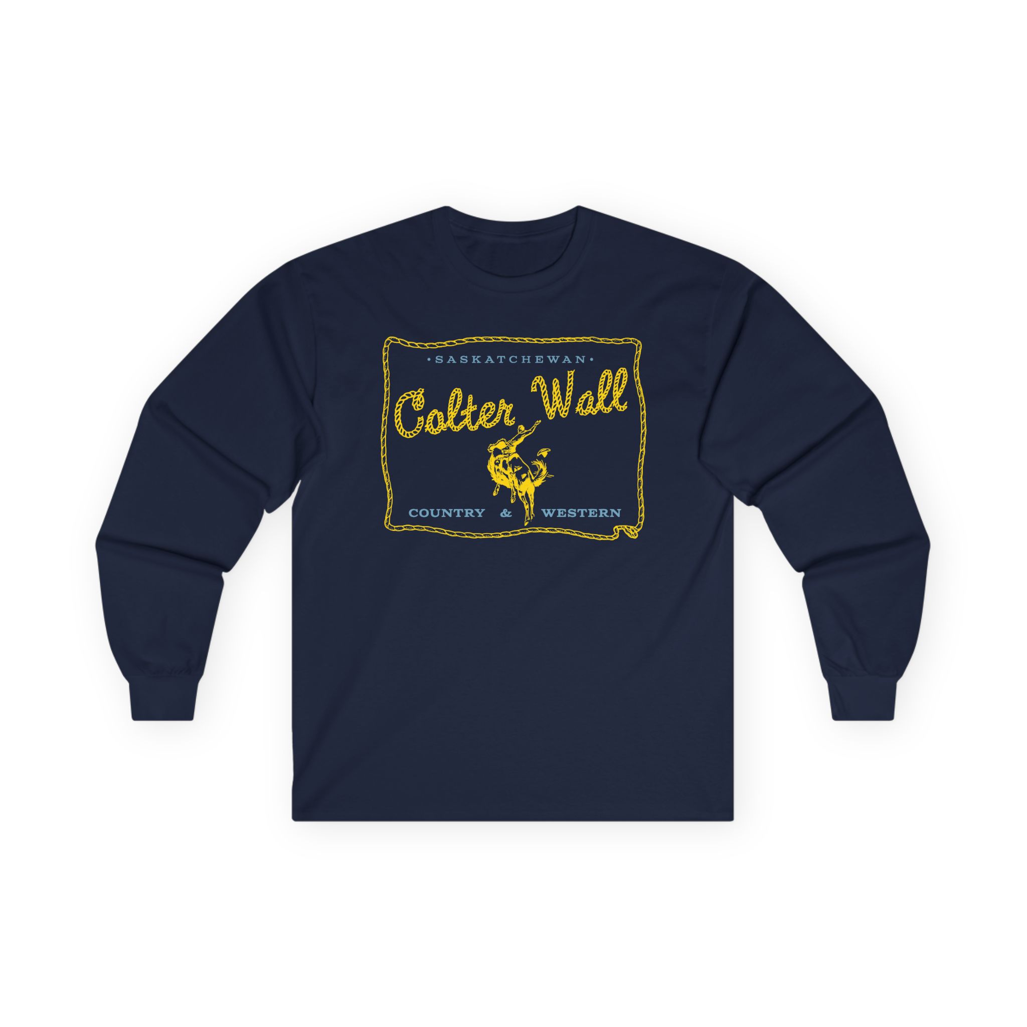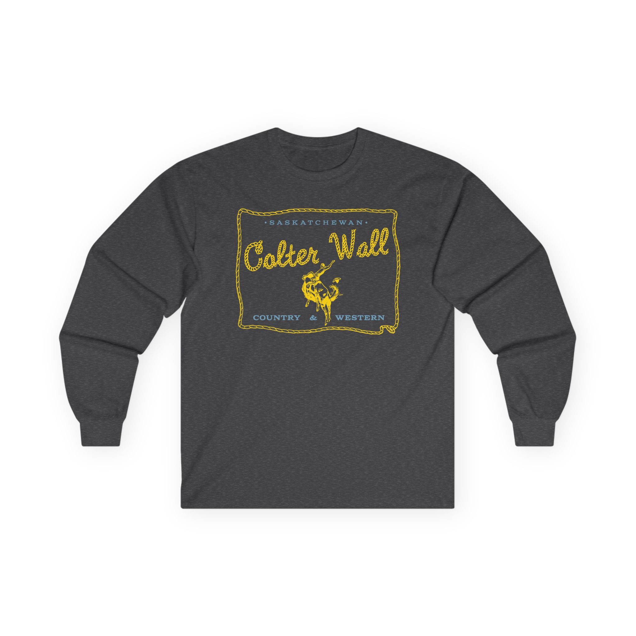 A bit more formal than a standard-issue t-shirt, the Colter Wall Saskatchewan ultra cotton long sleeve tee is a clear comfort winner. The sleeves also act as a nice frame. There are no side seams. The shoulders are taped for improved durability. This makes for a good fitting around the shoulders and neck. The cotton used for these shirts is environmentally friendly.