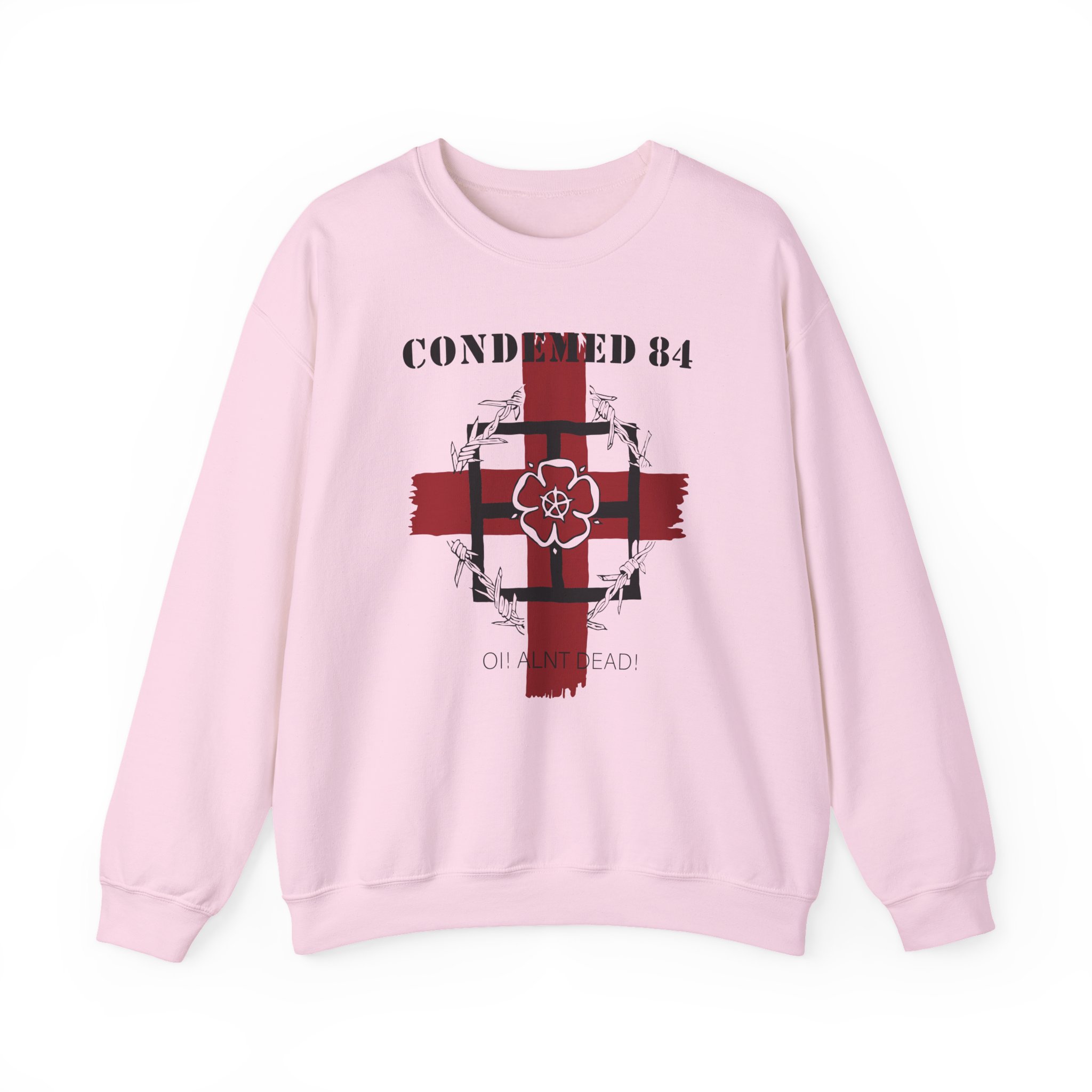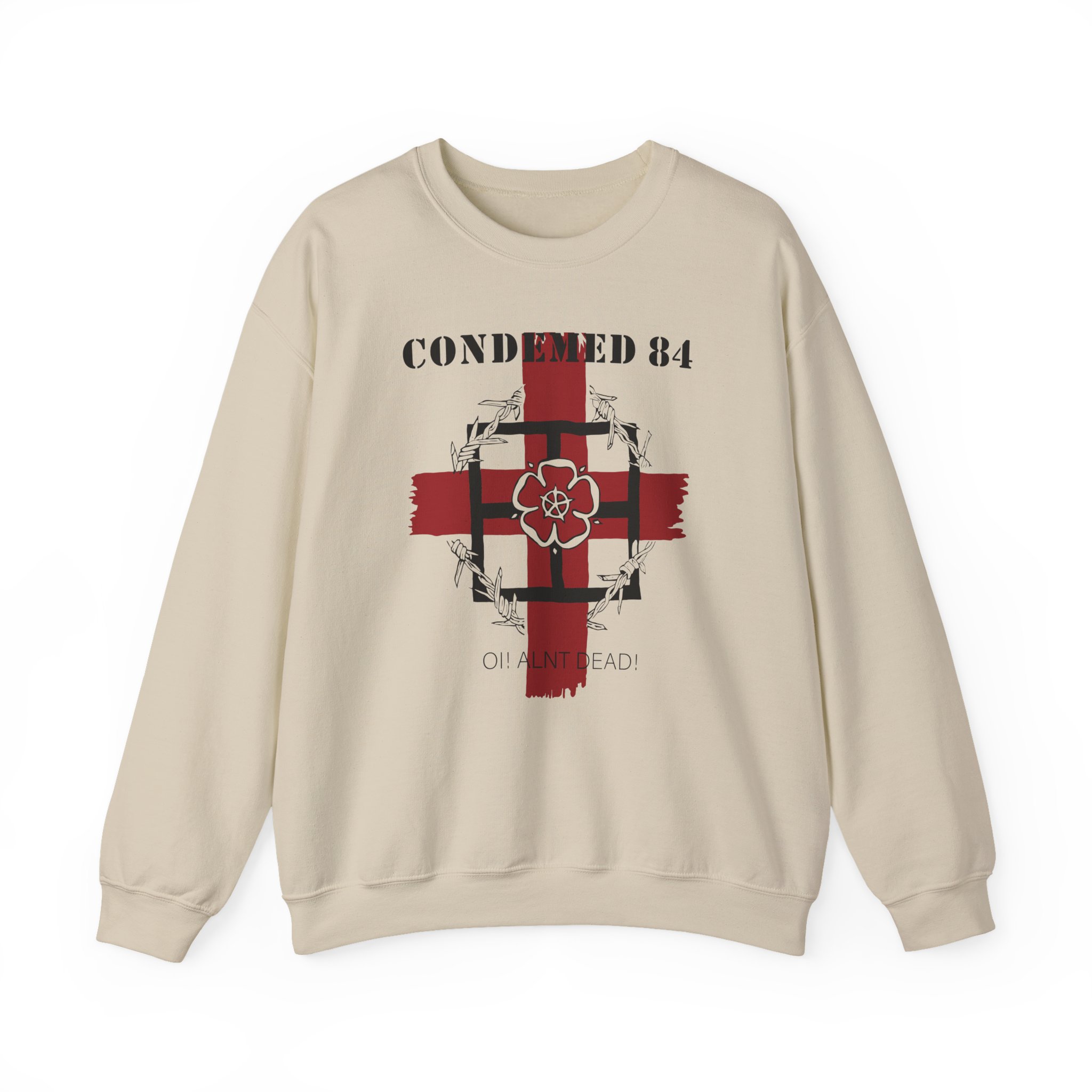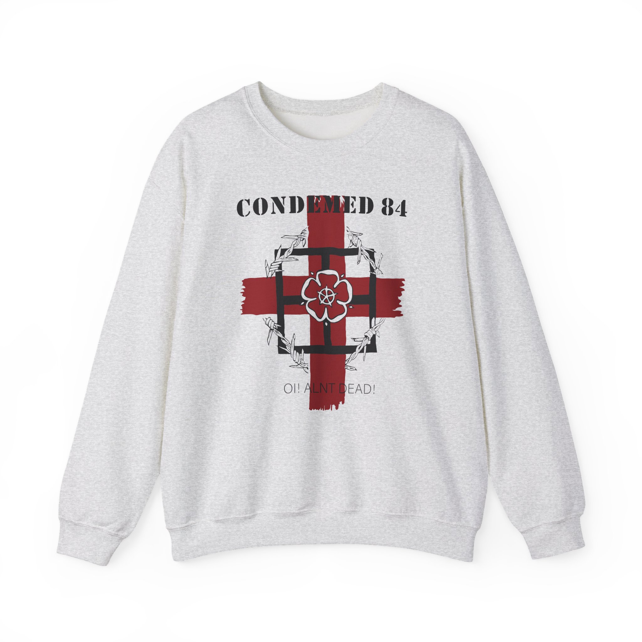 Ideal for any situation, a Combat 84 Condemned unisex heavy blend crewneck sweatshirt is pure comfort. These garments are made from polyester and cotton. This combination helps designs come out looking fresh and beautiful. The collar is ribbed knit, so it retains its shape even after washing. There are no itchy side seams on these sweaters.