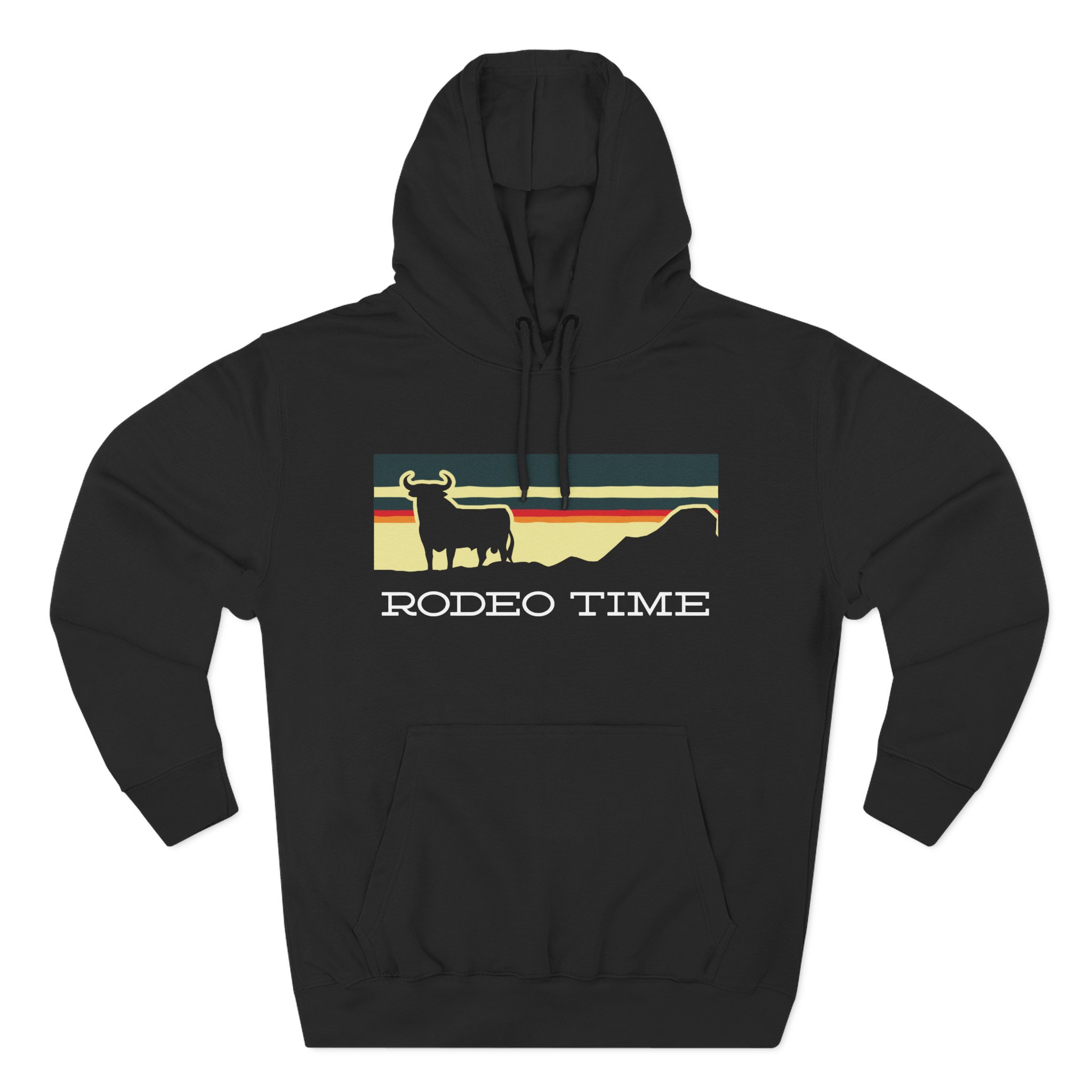 Beat the cold with this Dale Brisby Sunset Rodeo Time premium pullover hoodie that’s just the right layer of warm and cozy. Made with three-panel fleece lining, this pullover is double stitched for durability and roomy. Pick one in your favorite color to match your style.