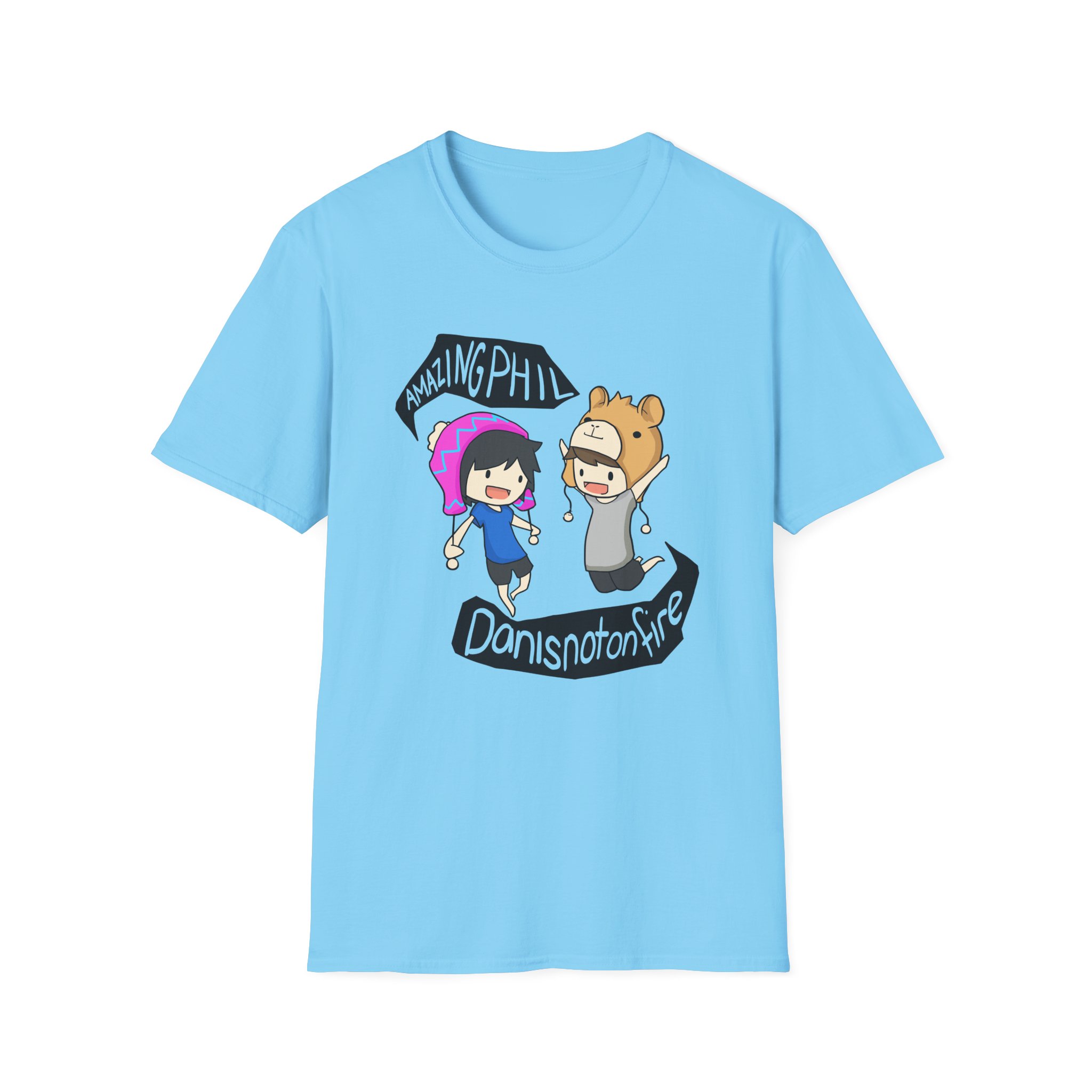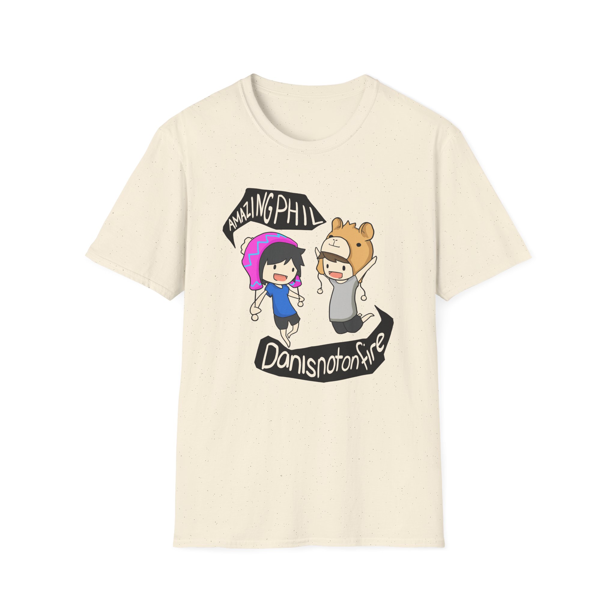 The Dan and Phil unisex soft-style t-shirt puts a new spin on casual comfort. Made from very soft materials, this tee is 100% cotton for solid colors. Heather colors and sports grey include polyester. The shoulders have twill tape for improved durability. There are no side seams. The collar is made with ribbed knitting to prevent curling damage.
