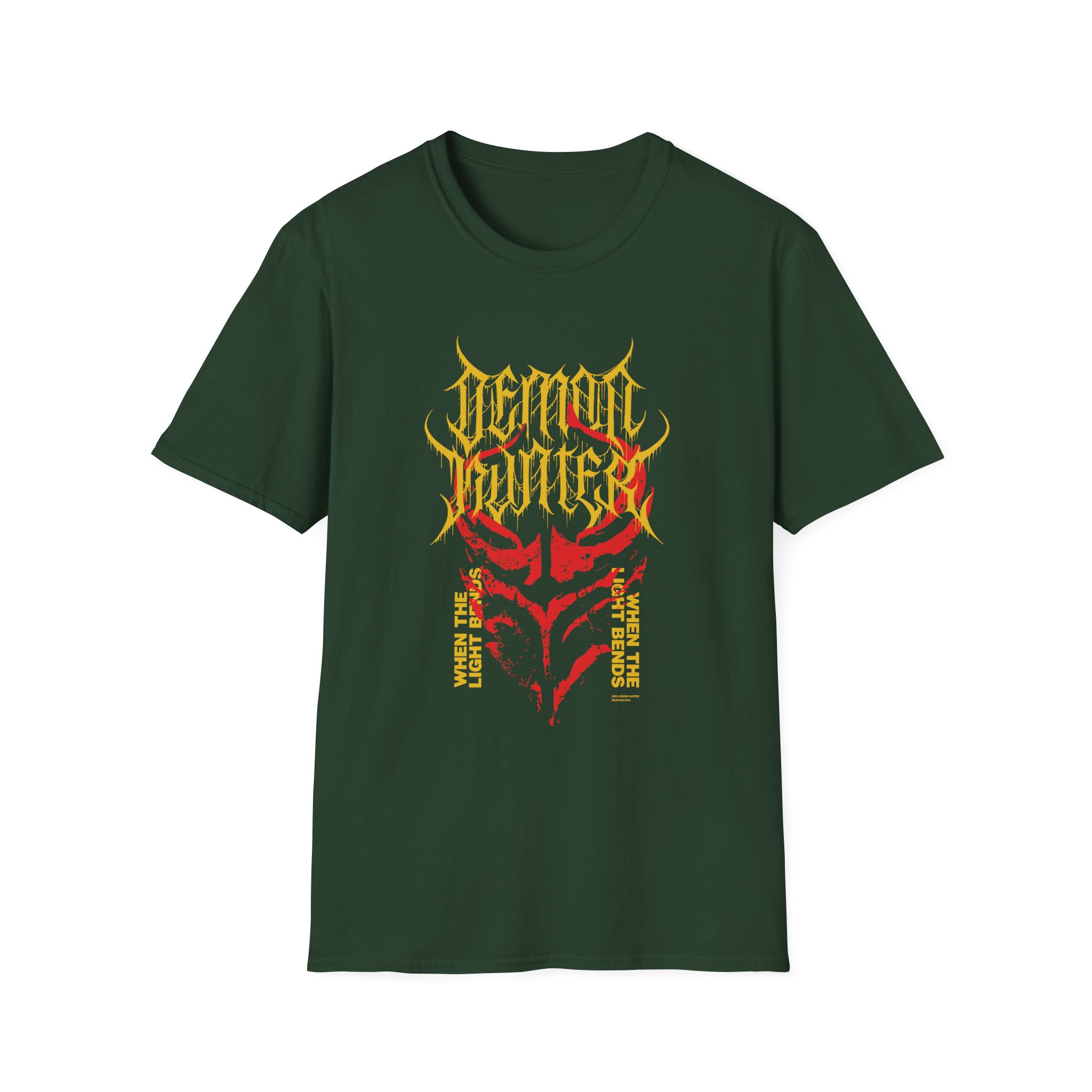 The Demon Hunter unisex soft-style t-shirt puts a new spin on casual comfort. Made from very soft materials, this tee is 100% cotton for solid colors. Heather colors and sports grey include polyester. The shoulders have twill tape for improved durability. There are no side seams. The collar is made with ribbed knitting to prevent curling damage.