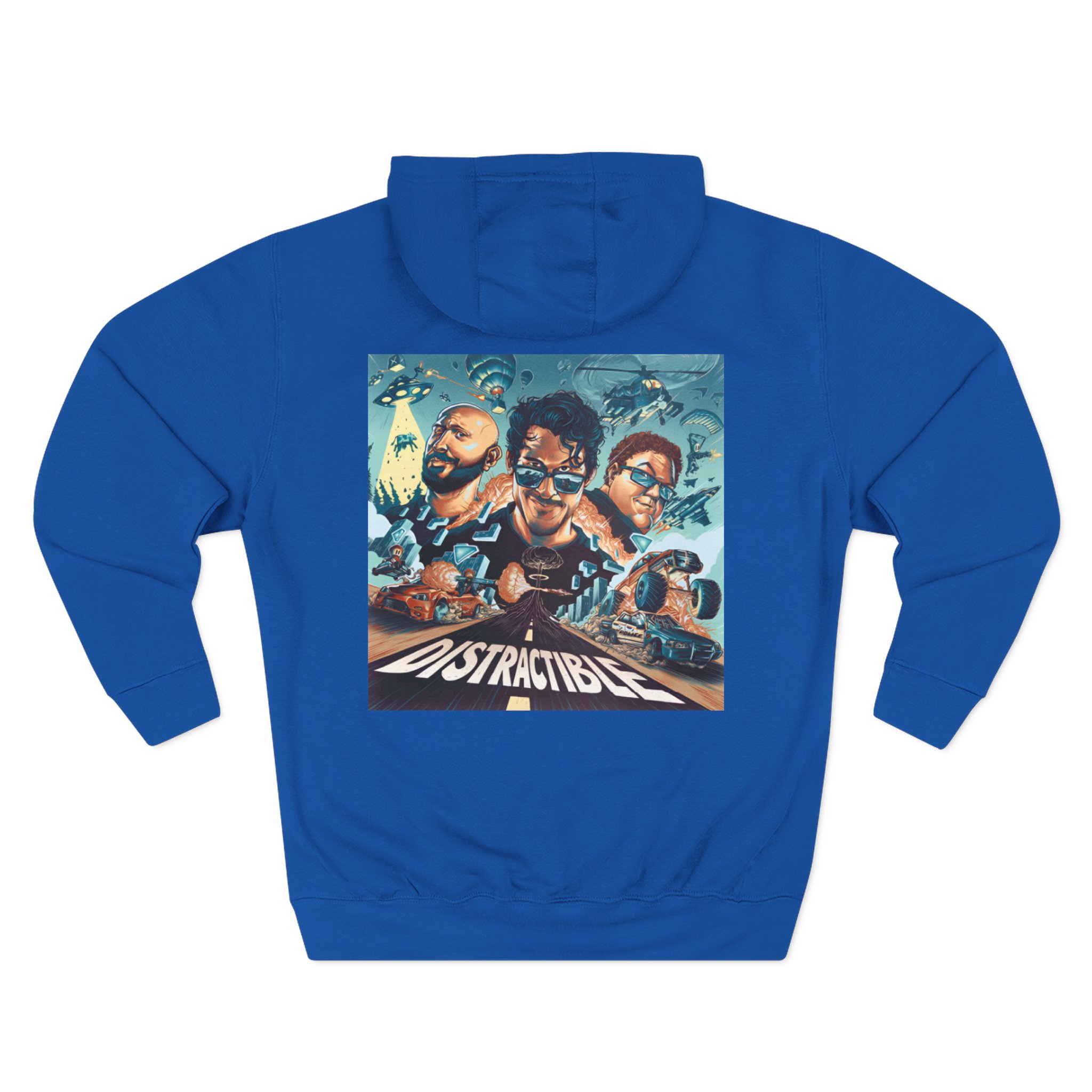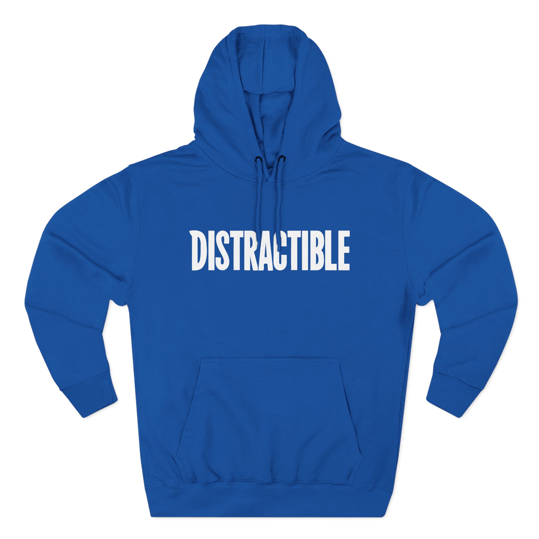 Beat the cold with this Distractible premium pullover hoodie that’s just the right layer of warm and cozy. Made with three-panel fleece lining, this pullover is double stitched for durability and roomy. Pick one in your favorite color to match your style.