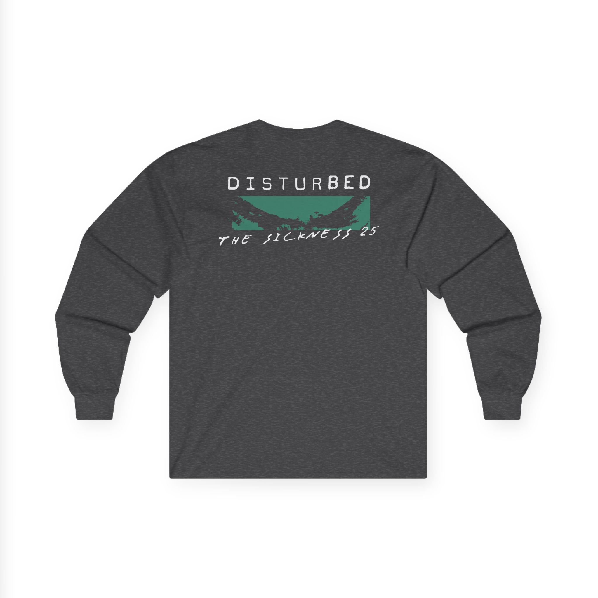 A bit more formal than a standard-issue t-shirt, the Disturbed the Sickness Anniversary ultra cotton long sleeve tee is a clear comfort winner. The sleeves also act as a nice frame. There are no side seams. The shoulders are taped for improved durability. This makes for a good fitting around the shoulders and neck. The cotton used for these shirts is environmentally friendly.