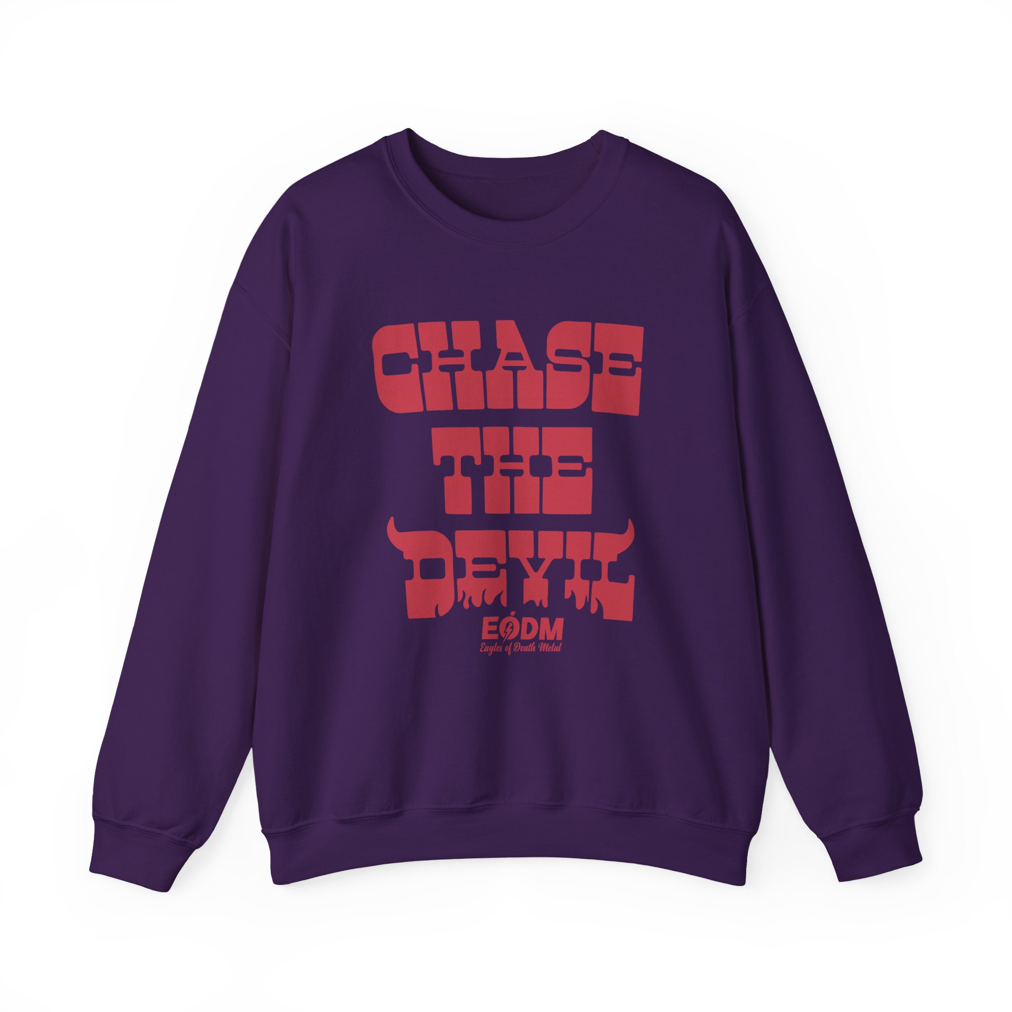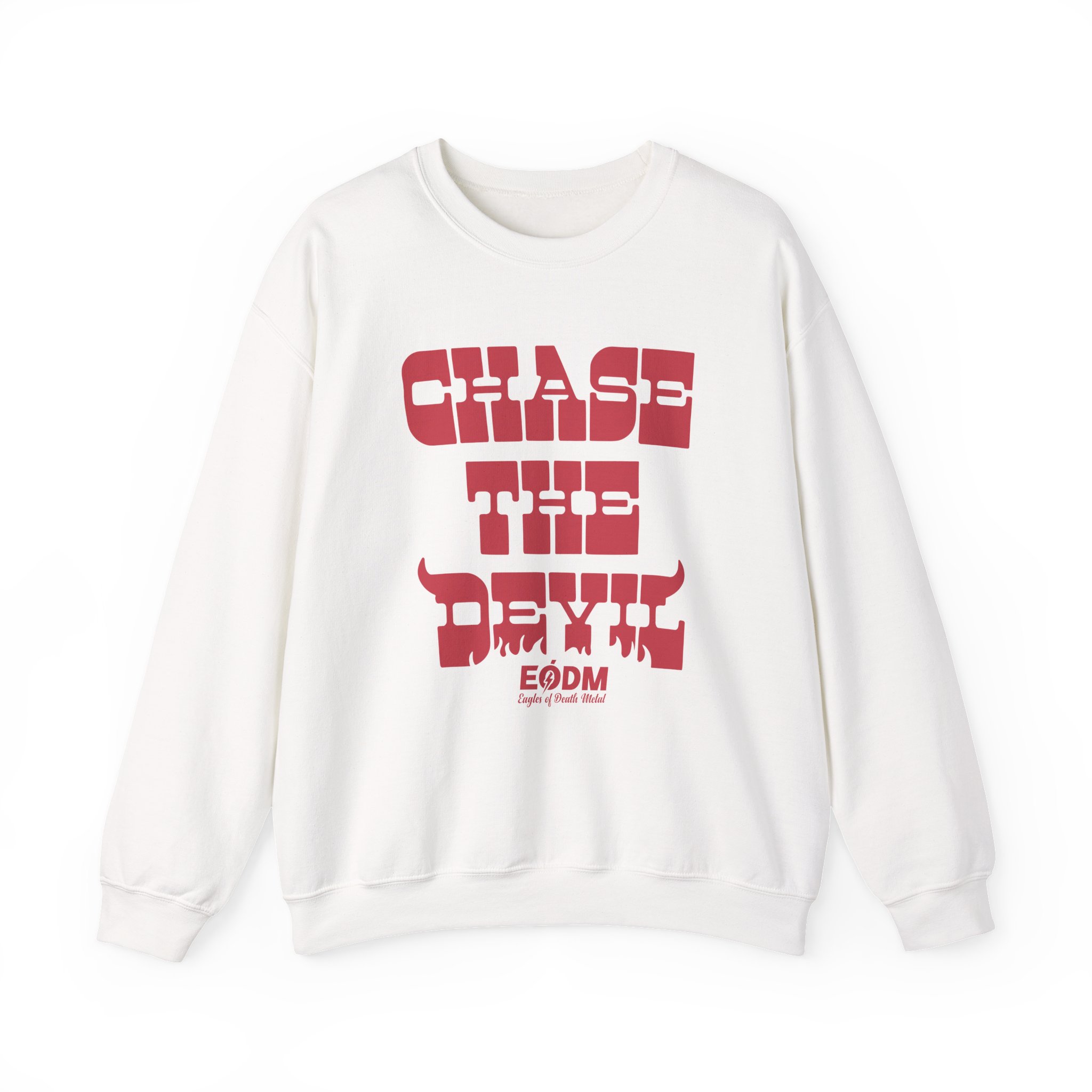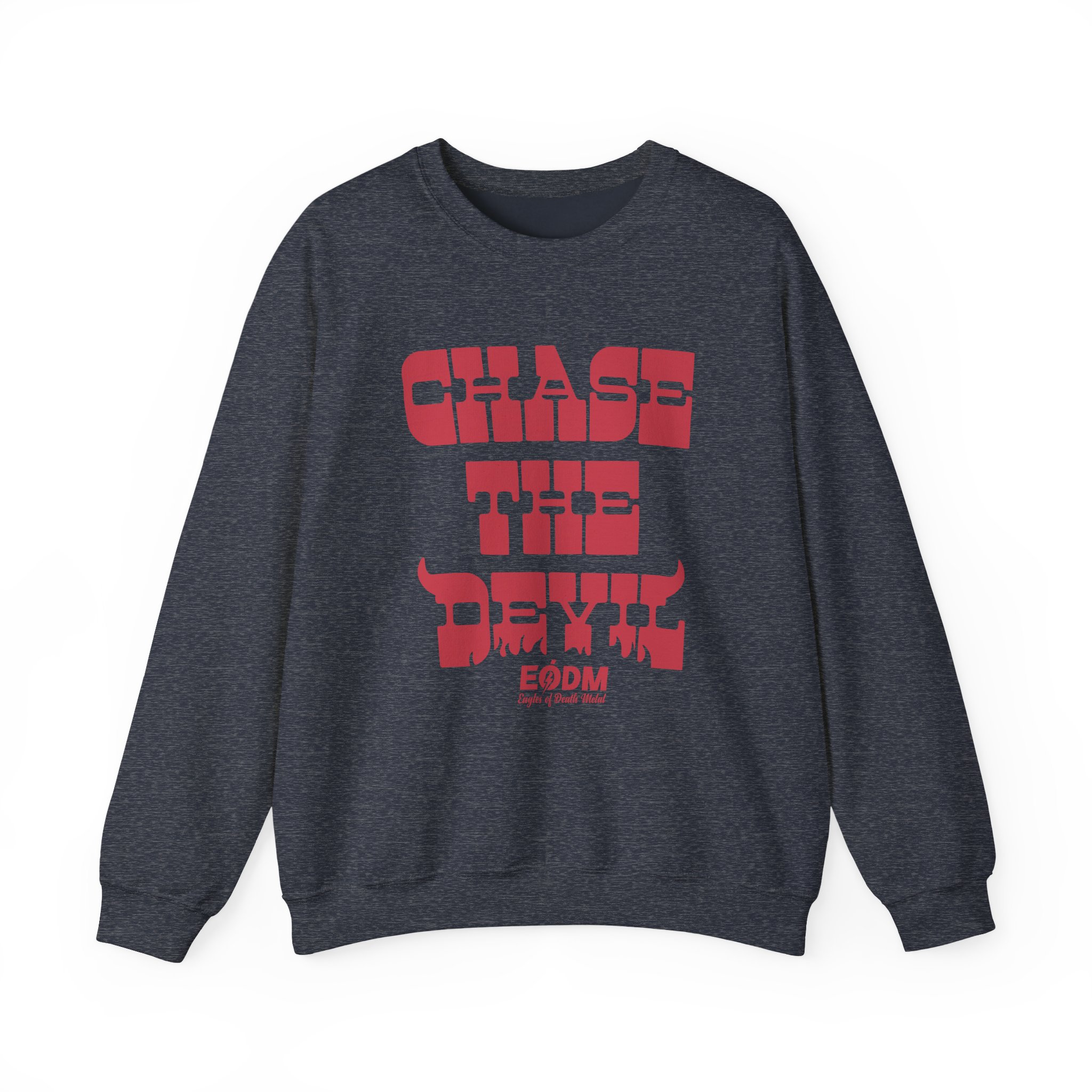 Ideal for any situation, a Eagles of Death Metal Chase The Devil unisex heavy blend crewneck sweatshirt is pure comfort. These garments are made from polyester and cotton. This combination helps designs come out looking fresh and beautiful. The collar is ribbed knit, so it retains its shape even after washing. There are no itchy side seams on these sweaters.