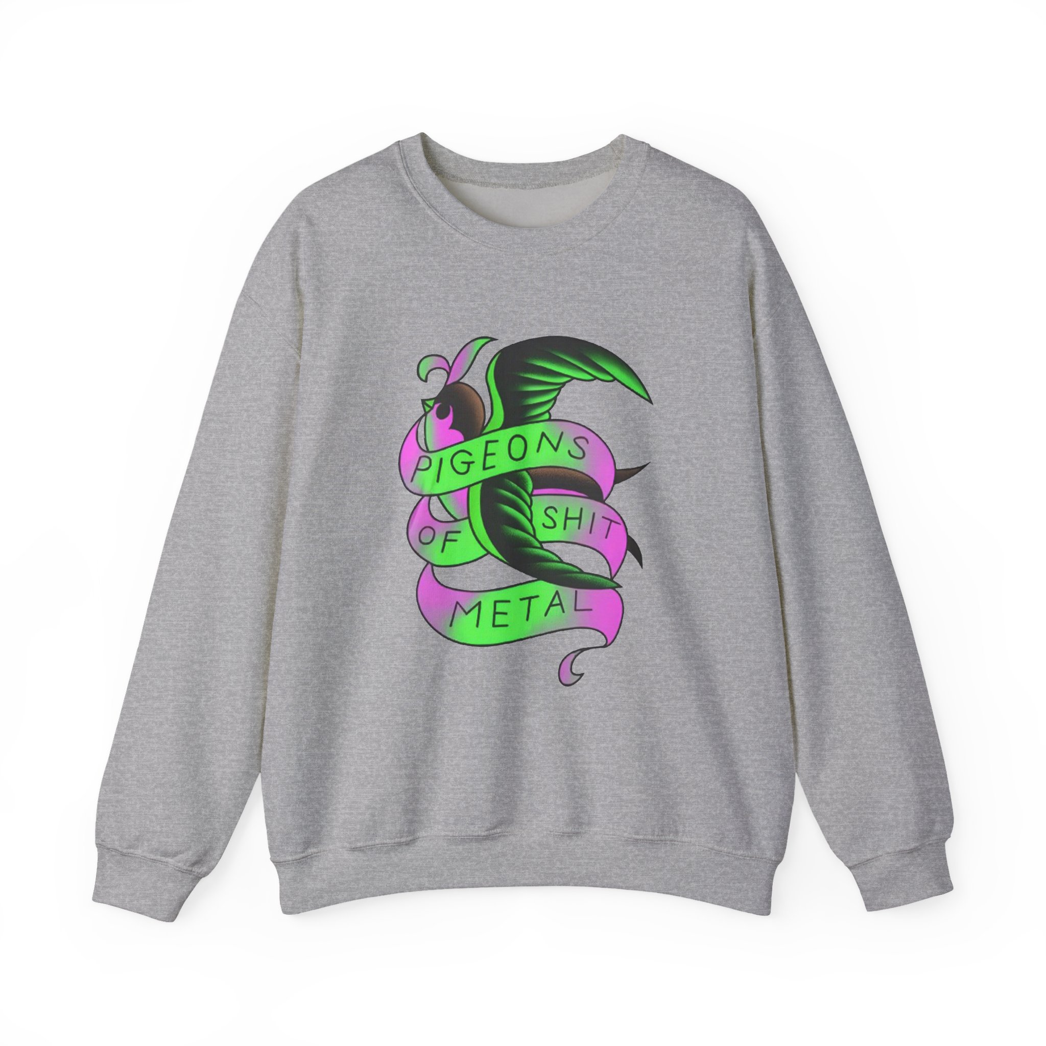 Ideal for any situation, a Eagles of Death Metal Pigeons unisex heavy blend crewneck sweatshirt is pure comfort. These garments are made from polyester and cotton. This combination helps designs come out looking fresh and beautiful. The collar is ribbed knit, so it retains its shape even after washing. There are no itchy side seams on these sweaters.