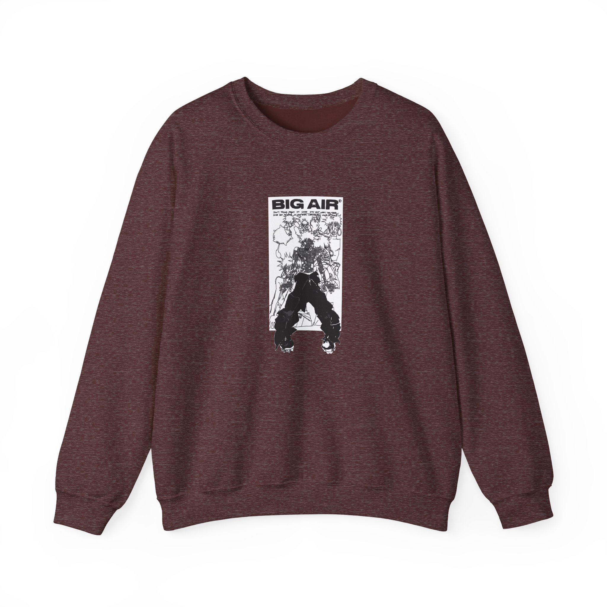 Ideal for any situation, a Ecco2k Big Air unisex heavy blend crewneck sweatshirt is pure comfort. These garments are made from polyester and cotton. This combination helps designs come out looking fresh and beautiful. The collar is ribbed knit, so it retains its shape even after washing. There are no itchy side seams on these sweaters.