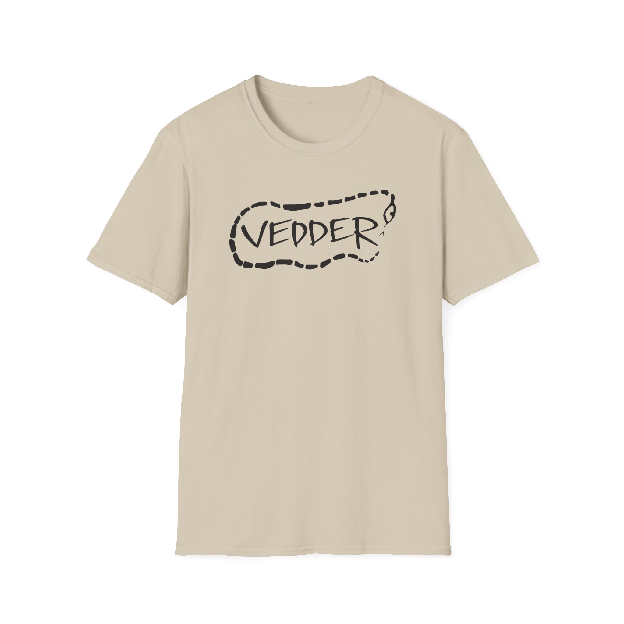 The Eddie Vedder Stencil Snake unisex soft-style t-shirt puts a new spin on casual comfort. Made from very soft materials, this tee is 100% cotton for solid colors. Heather colors and sports grey include polyester. The shoulders have twill tape for improved durability. There are no side seams. The collar is made with ribbed knitting to prevent curling damage.