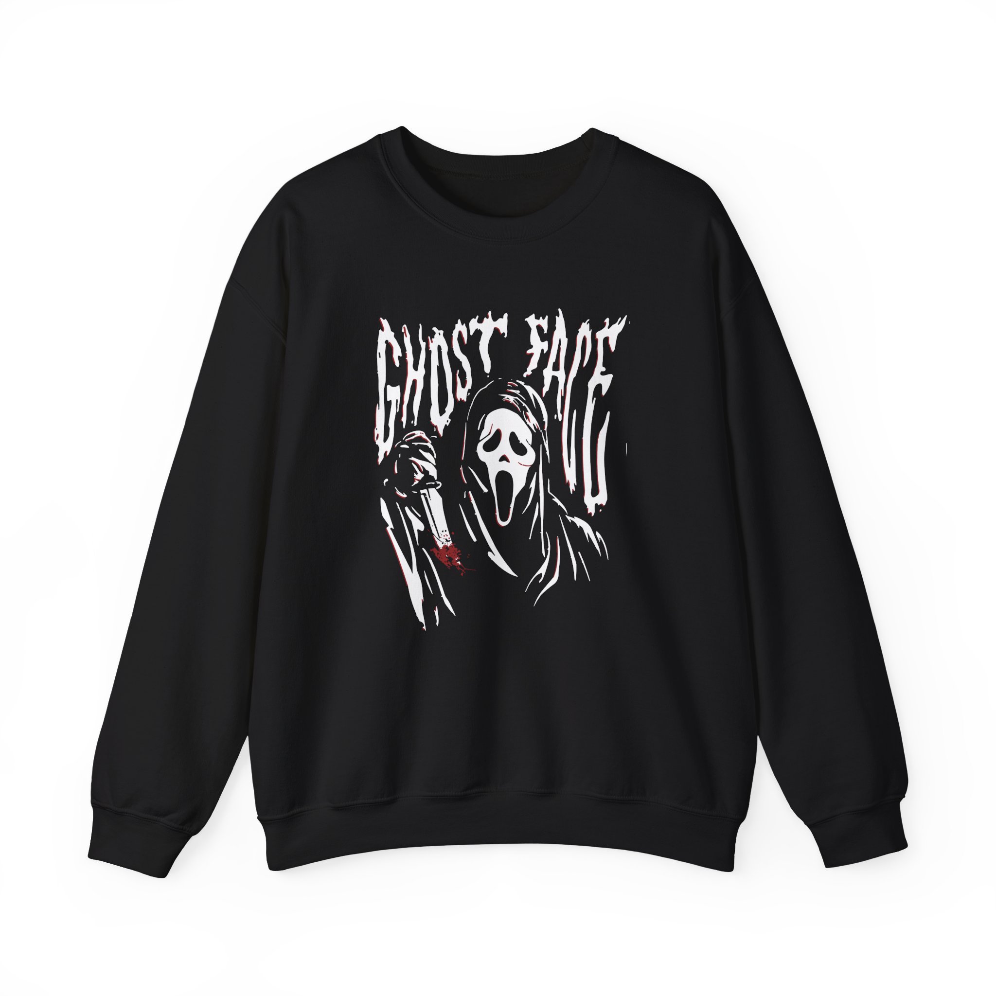Ideal for any situation, a Ghostface unisex heavy blend crewneck sweatshirt is pure comfort. These garments are made from polyester and cotton. This combination helps designs come out looking fresh and beautiful. The collar is ribbed knit, so it retains its shape even after washing. There are no itchy side seams on these sweaters.