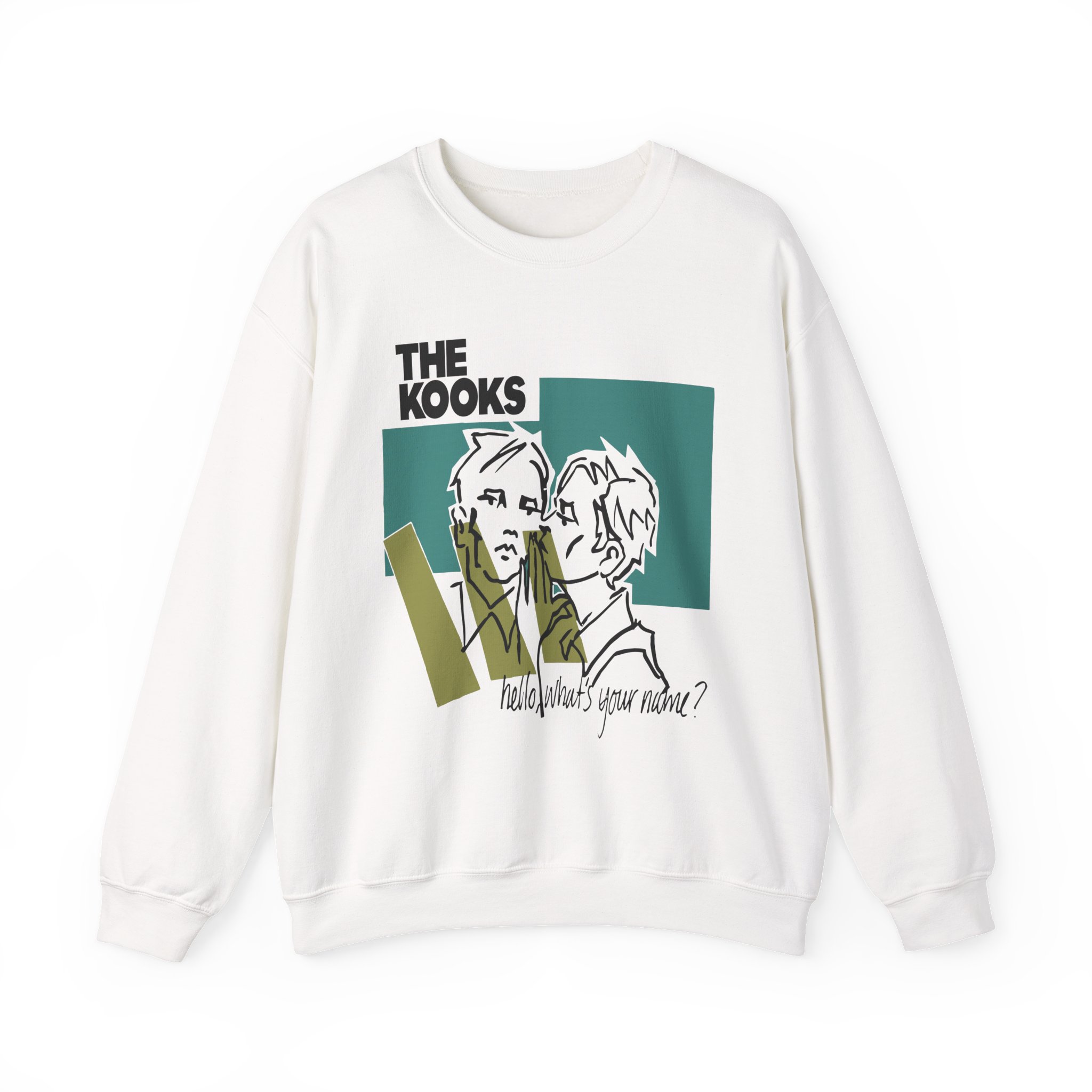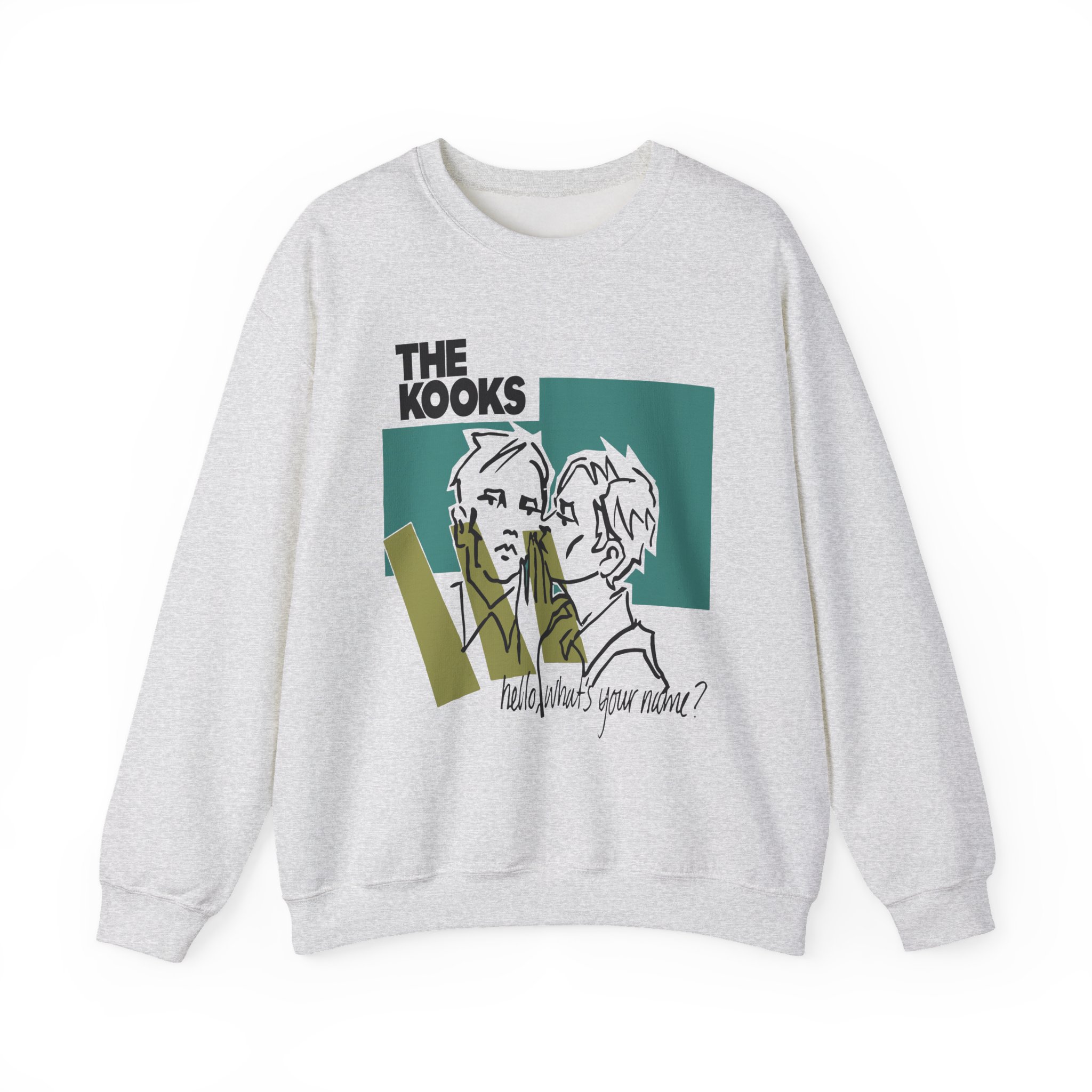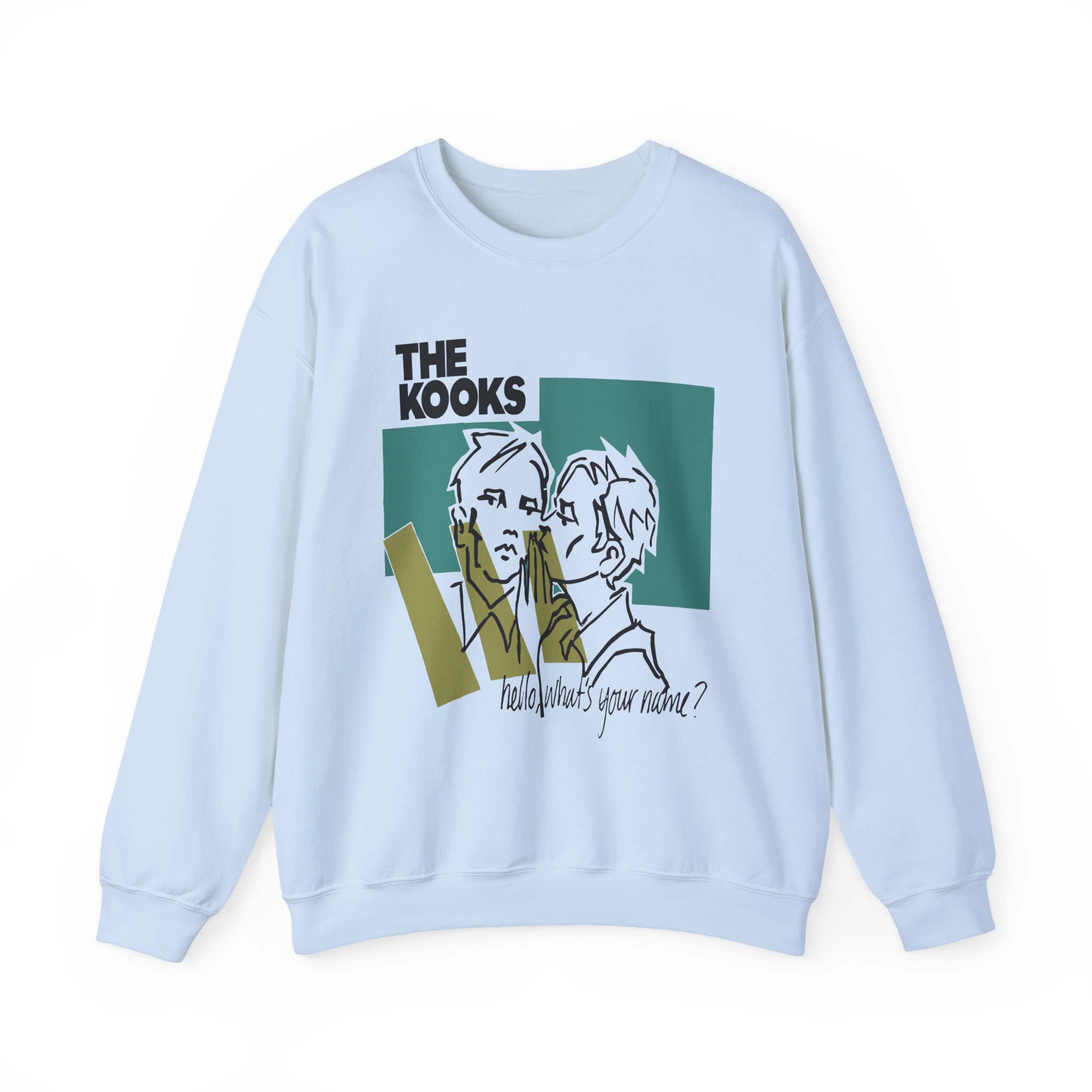 Ideal for any situation, a Hello Whats Your Name the Kooks unisex heavy blend crewneck sweatshirt is pure comfort. These garments are made from polyester and cotton. This combination helps designs come out looking fresh and beautiful. The collar is ribbed knit, so it retains its shape even after washing. There are no itchy side seams on these sweaters.