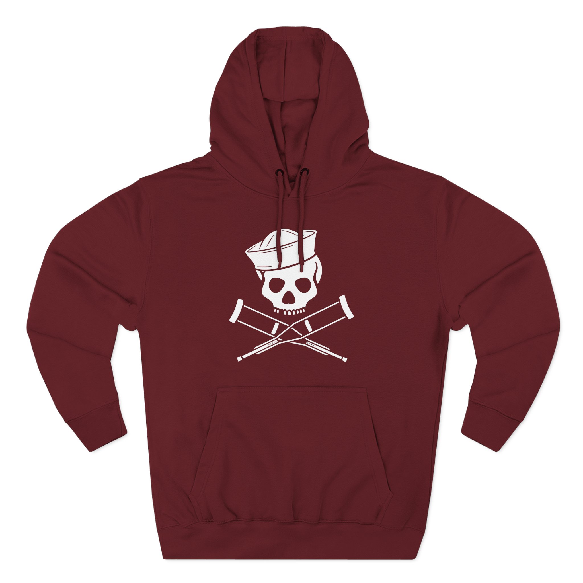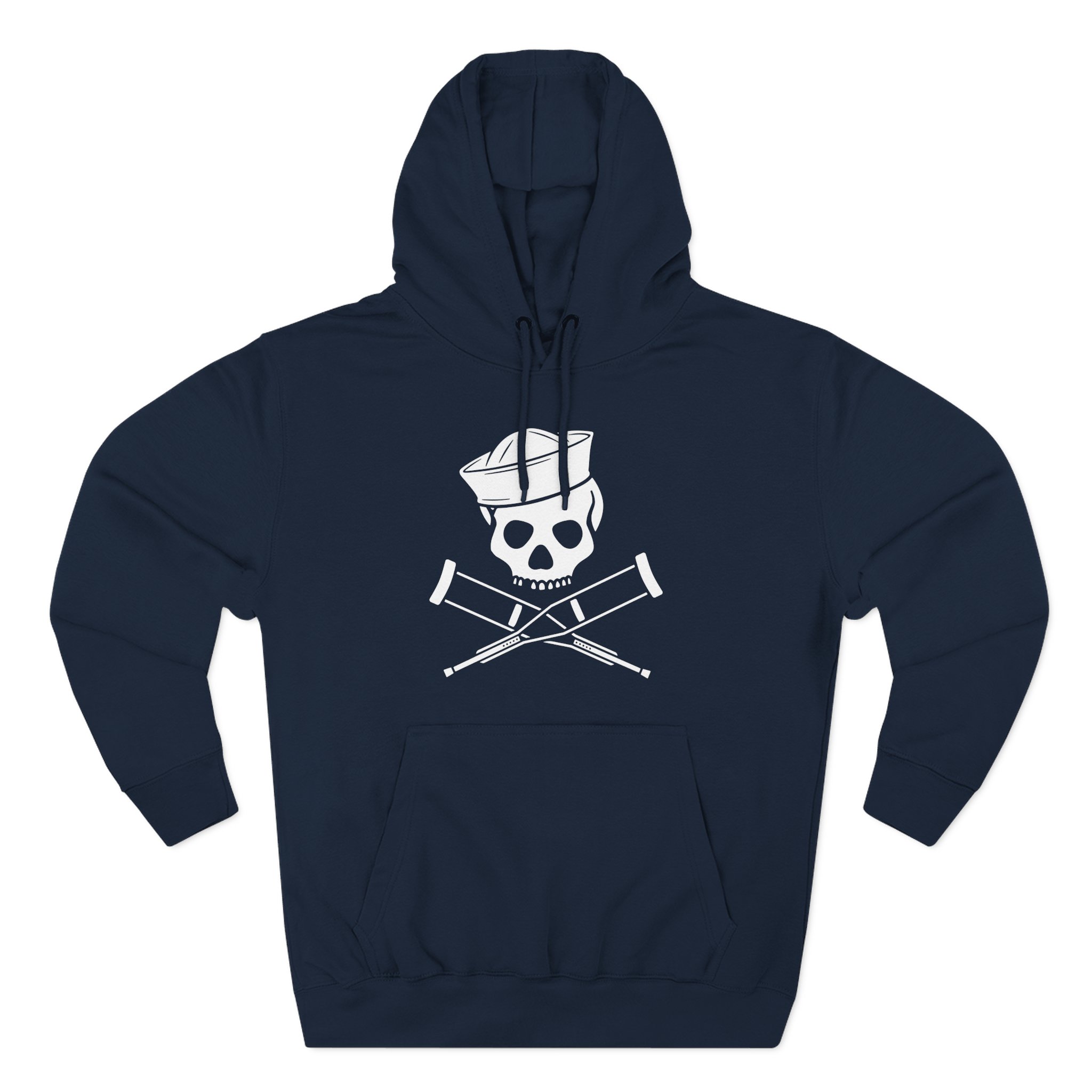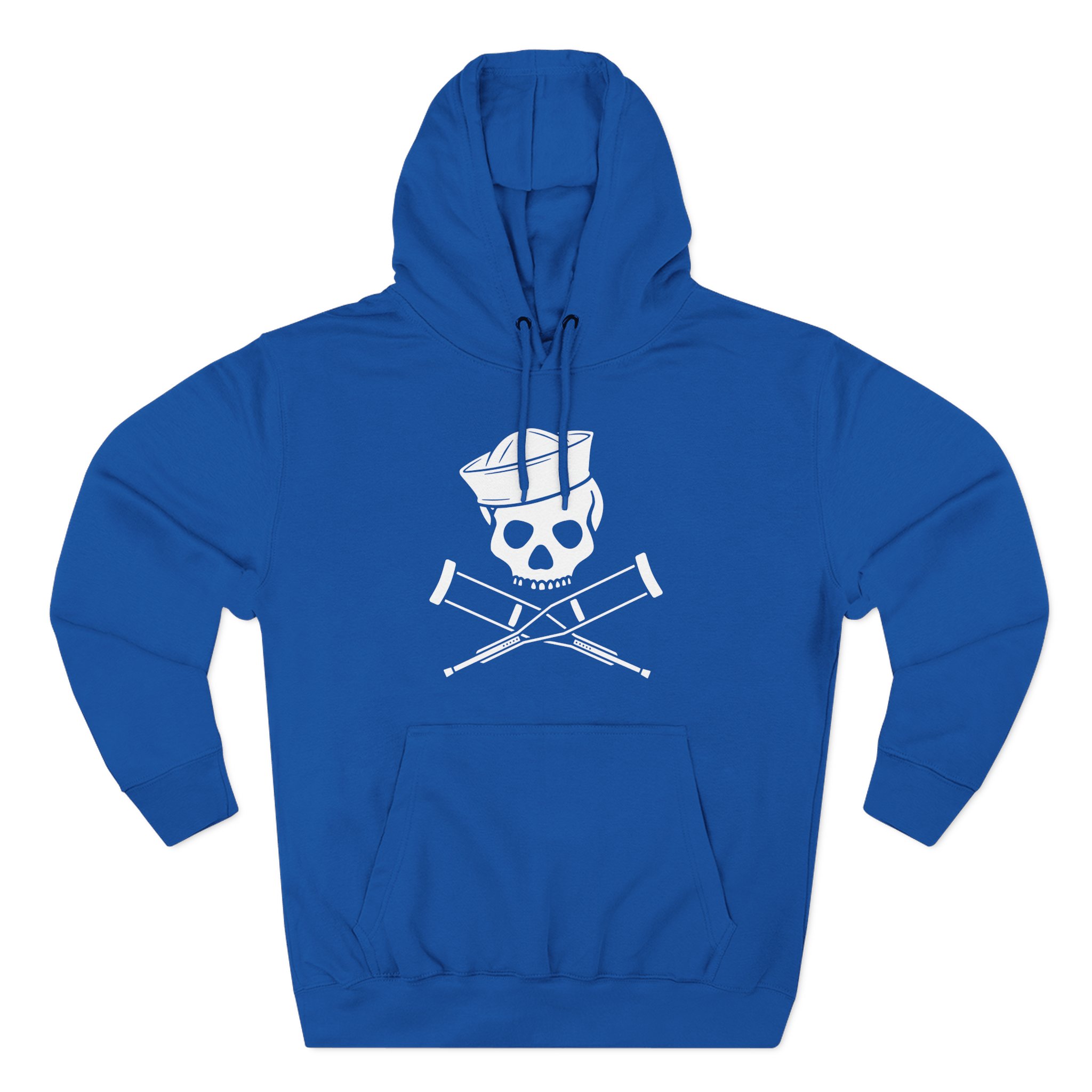 Beat the cold with this Jackass Sailor Skull & Crossbones premium pullover hoodie that’s just the right layer of warm and cozy. Made with three-panel fleece lining, this pullover is double stitched for durability and roomy. Pick one in your favorite color to match your style.