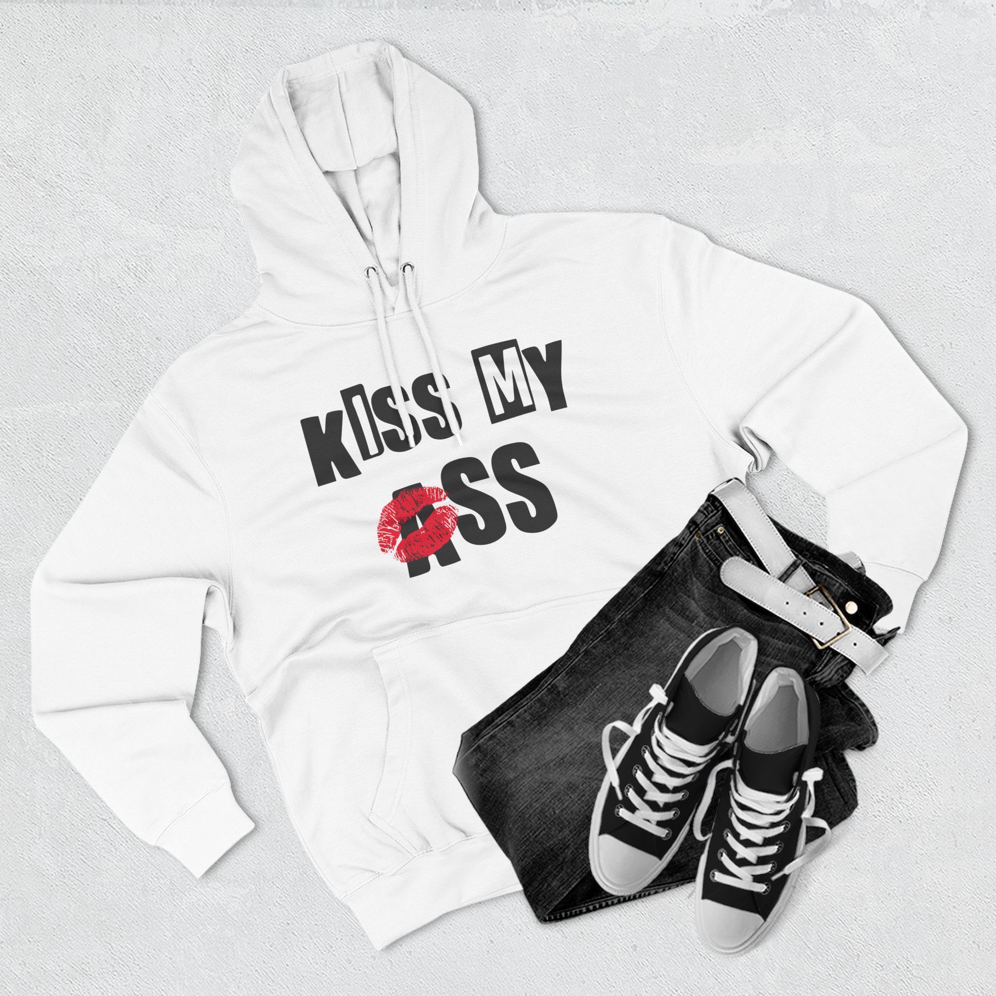 Beat the cold with this Jake Webber Kiss My Ass premium pullover hoodie that’s just the right layer of warm and cozy. Made with three-panel fleece lining, this pullover is double stitched for durability and roomy. Pick one in your favorite color to match your style.