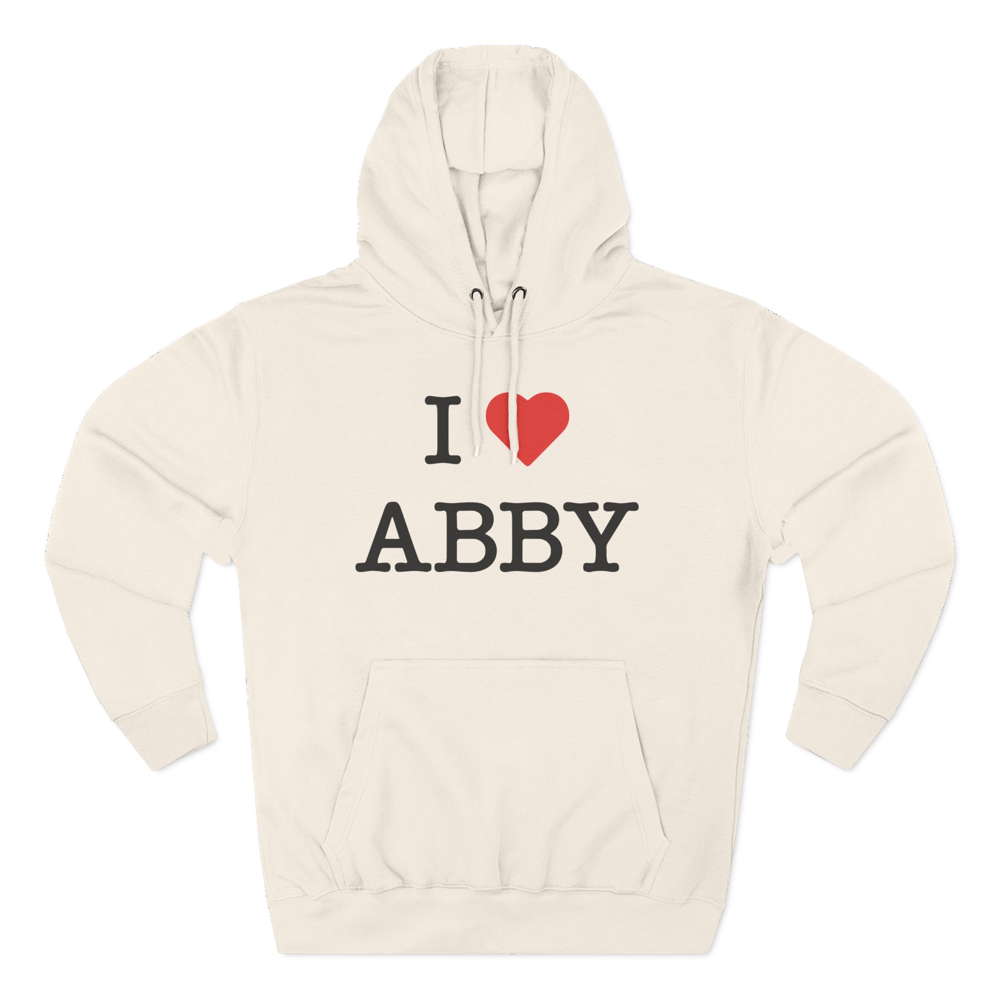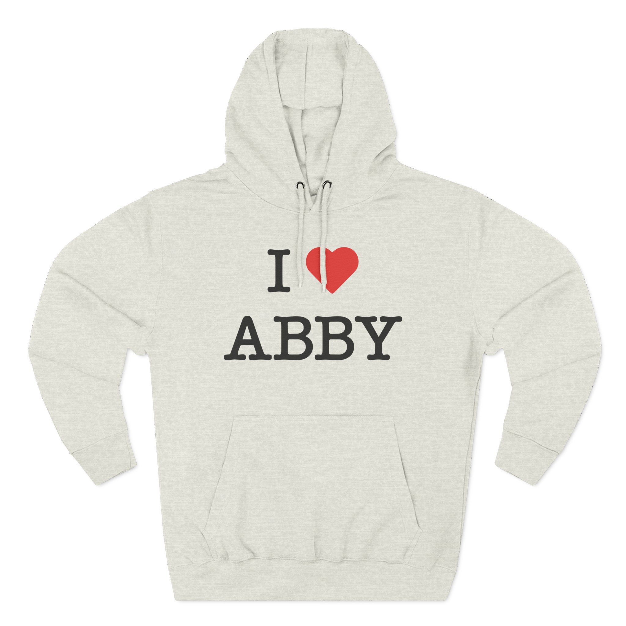 Beat the cold with this Jon Marianek I Love Abby premium pullover hoodie that’s just the right layer of warm and cozy. Made with three-panel fleece lining, this pullover is double stitched for durability and roomy. Pick one in your favorite color to match your style.