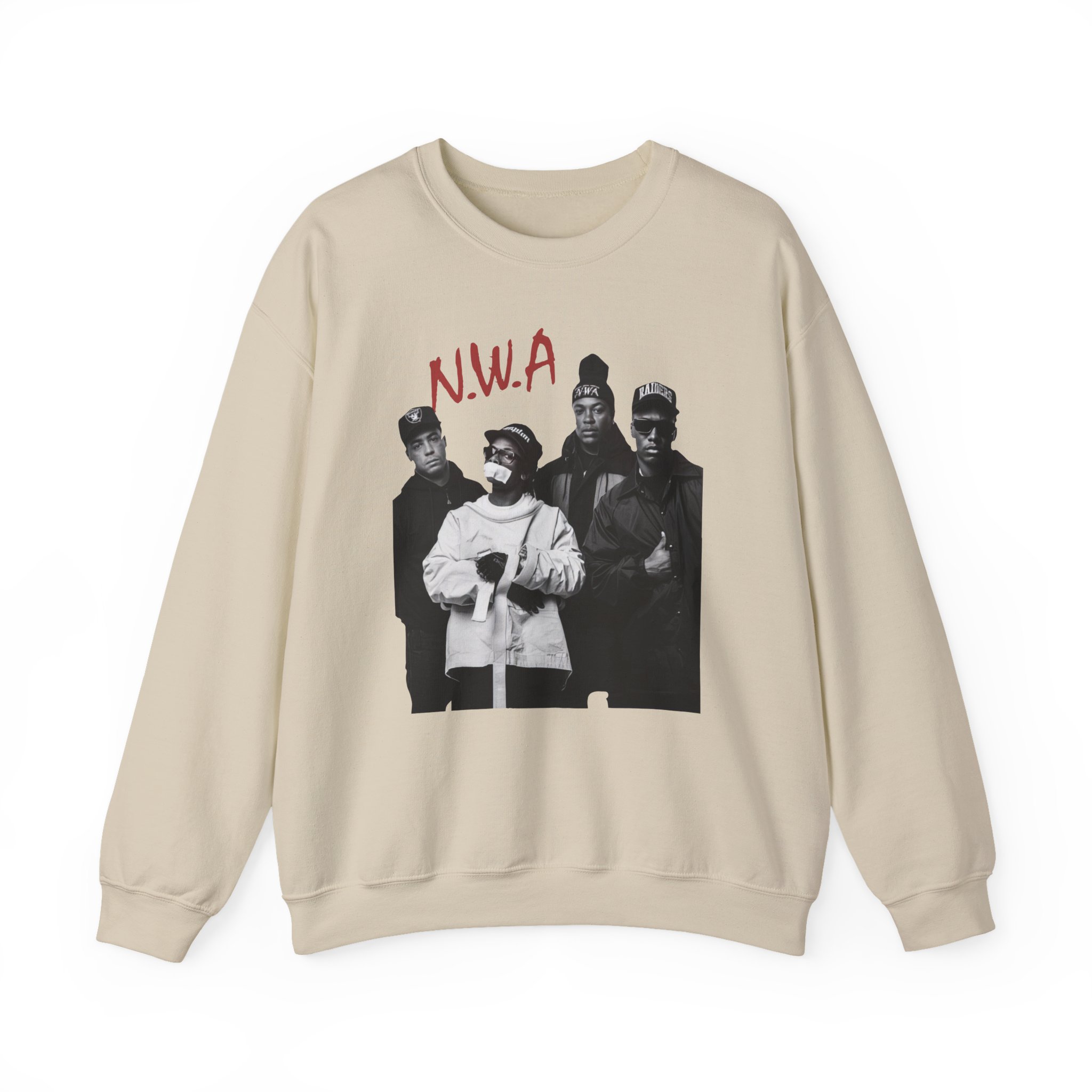 Ideal for any situation, a NWA Rap unisex heavy blend crewneck sweatshirt is pure comfort. These garments are made from polyester and cotton. This combination helps designs come out looking fresh and beautiful. The collar is ribbed knit, so it retains its shape even after washing. There are no itchy side seams on these sweaters.