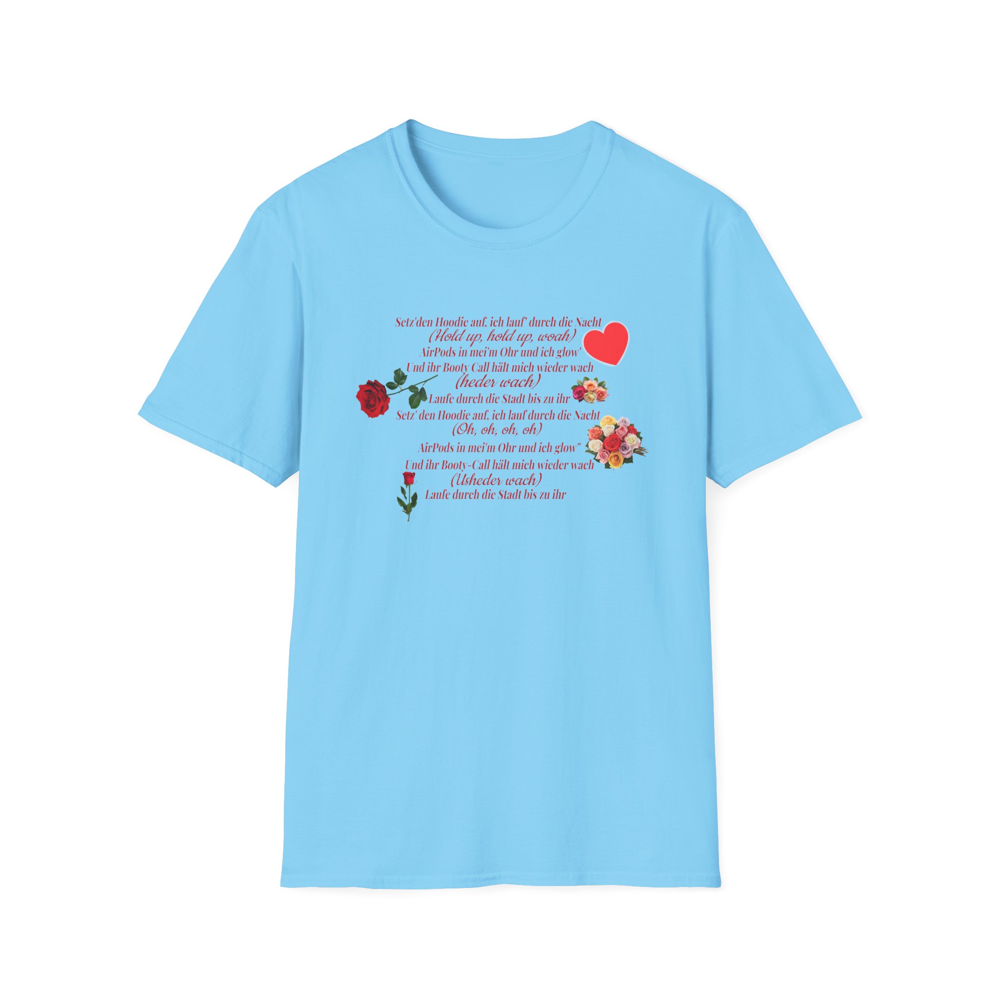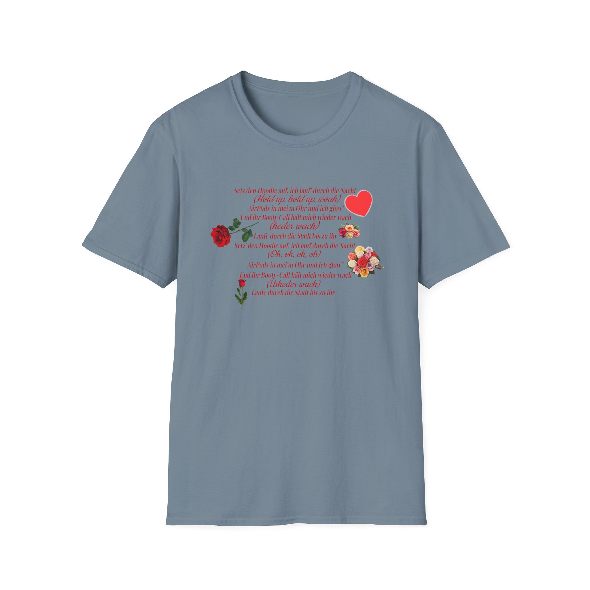 The Papaplatte BIS ZU IHR unisex soft-style t-shirt puts a new spin on casual comfort. Made from very soft materials, this tee is 100% cotton for solid colors. Heather colors and sports grey include polyester. The shoulders have twill tape for improved durability. There are no side seams. The collar is made with ribbed knitting to prevent curling damage.
