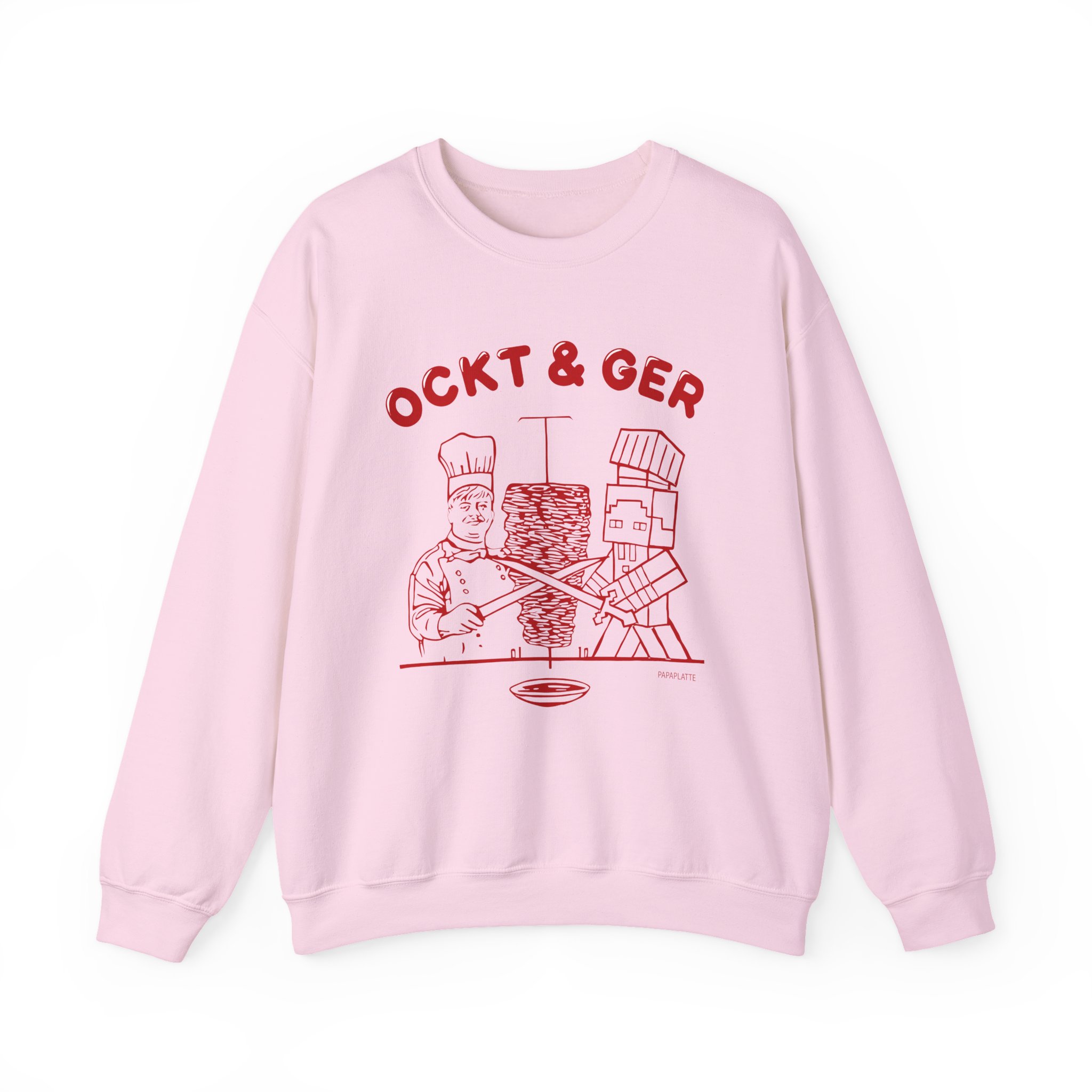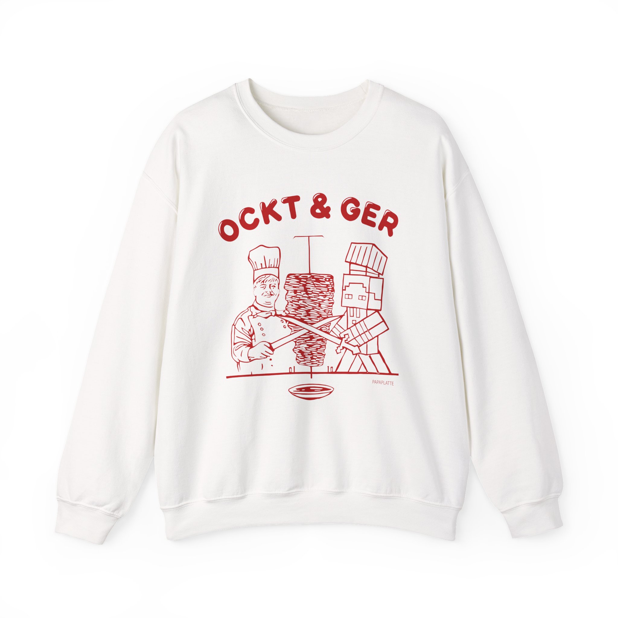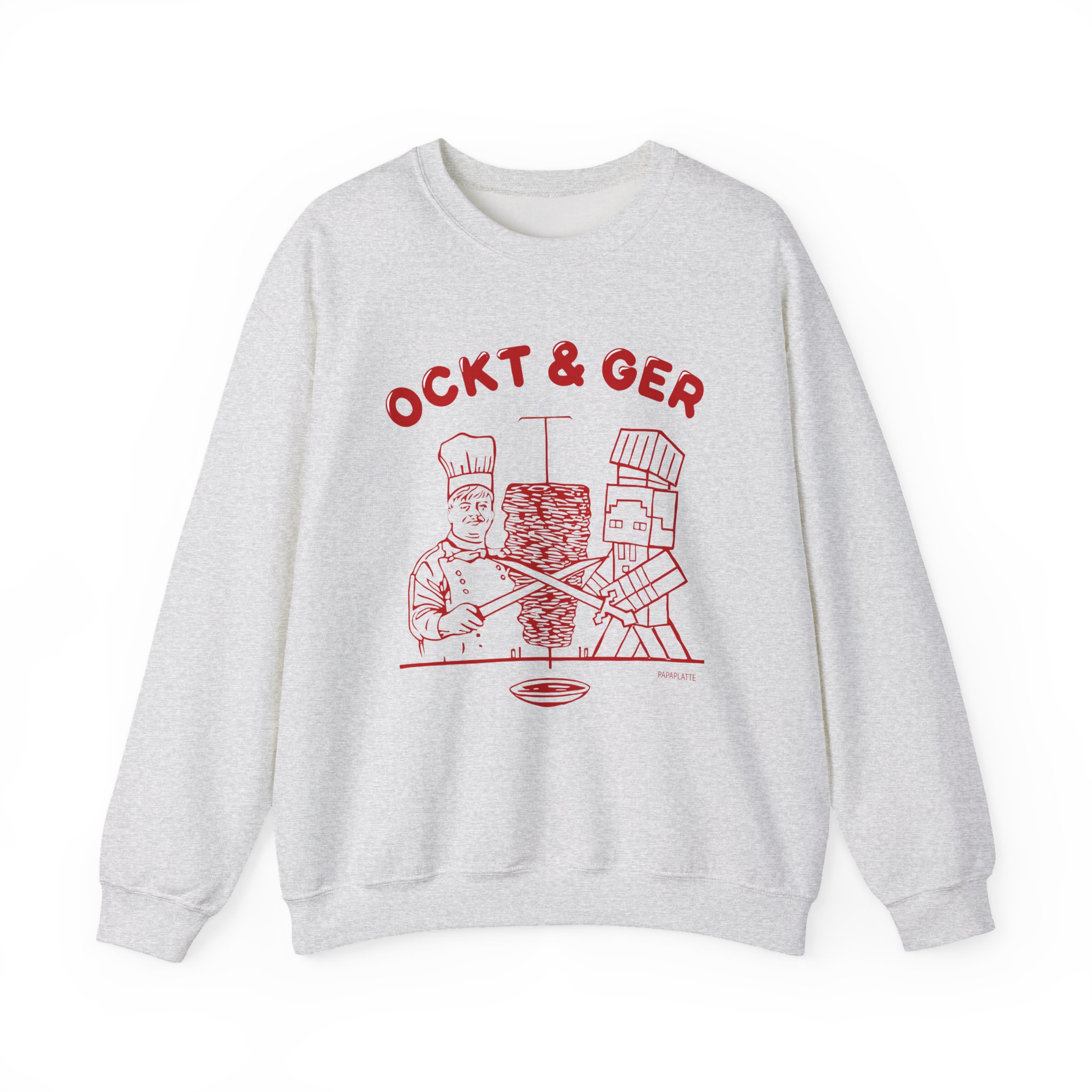 Ideal for any situation, a Papaplatte OCKT & GER unisex heavy blend crewneck sweatshirt is pure comfort. These garments are made from polyester and cotton. This combination helps designs come out looking fresh and beautiful. The collar is ribbed knit, so it retains its shape even after washing. There are no itchy side seams on these sweaters.