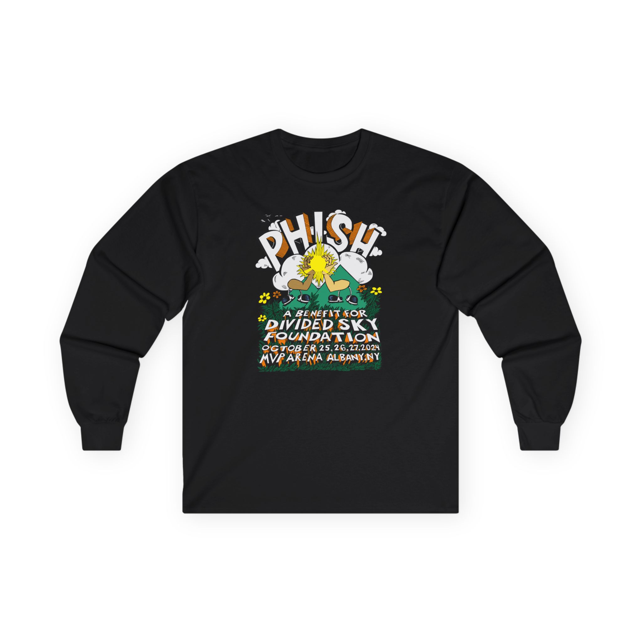 A bit more formal than a standard-issue t-shirt, the Phish Pollock Arm in Arm ultra cotton long sleeve tee is a clear comfort winner. The sleeves also act as a nice frame. There are no side seams. The shoulders are taped for improved durability. This makes for a good fitting around the shoulders and neck. The cotton used for these shirts is environmentally friendly.