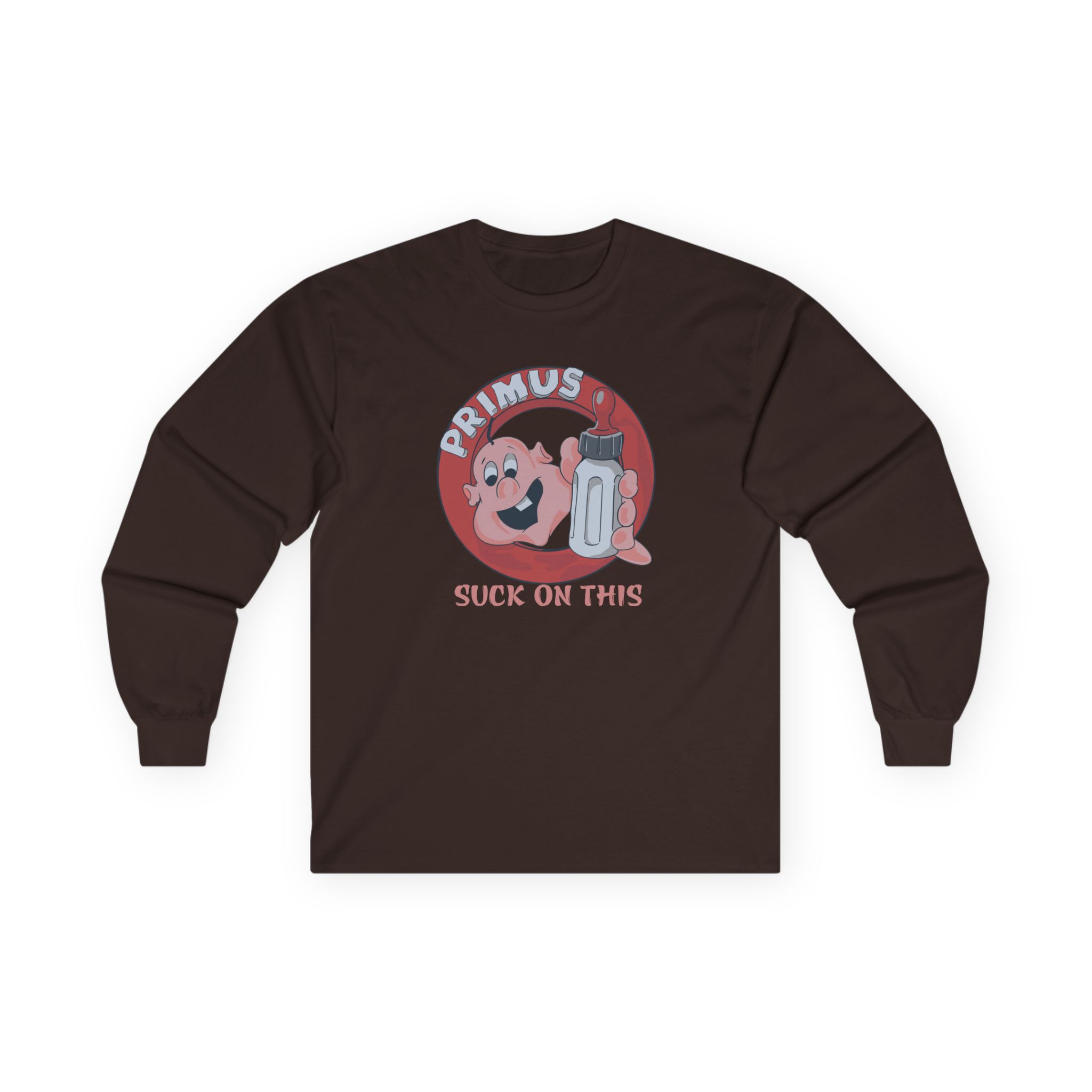 A bit more formal than a standard-issue t-shirt, the Primus Suck on This Youth ultra cotton long sleeve tee is a clear comfort winner. The sleeves also act as a nice frame. There are no side seams. The shoulders are taped for improved durability. This makes for a good fitting around the shoulders and neck. The cotton used for these shirts is environmentally friendly.