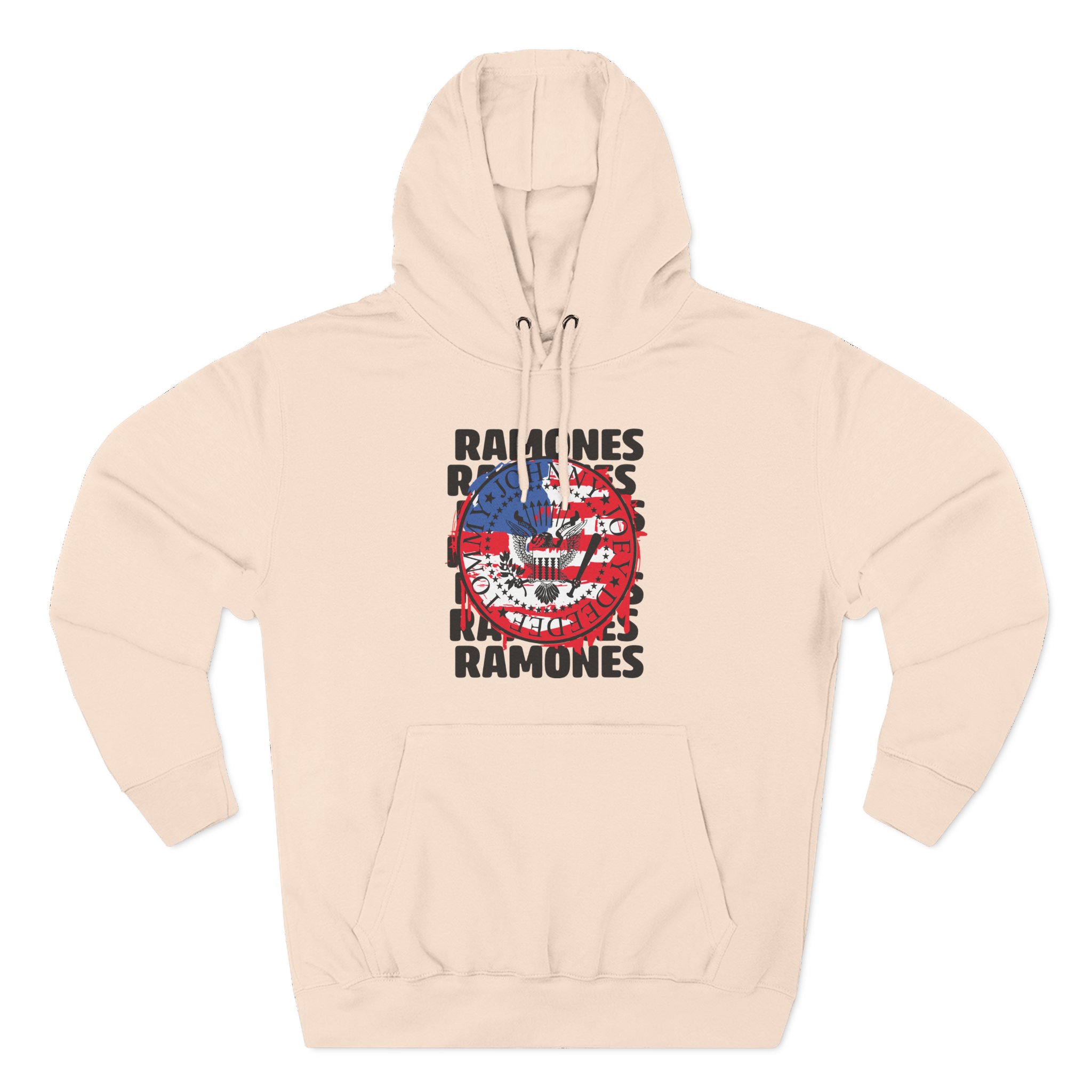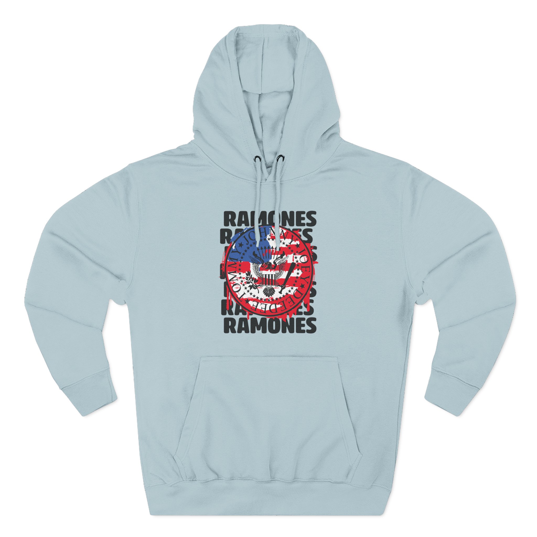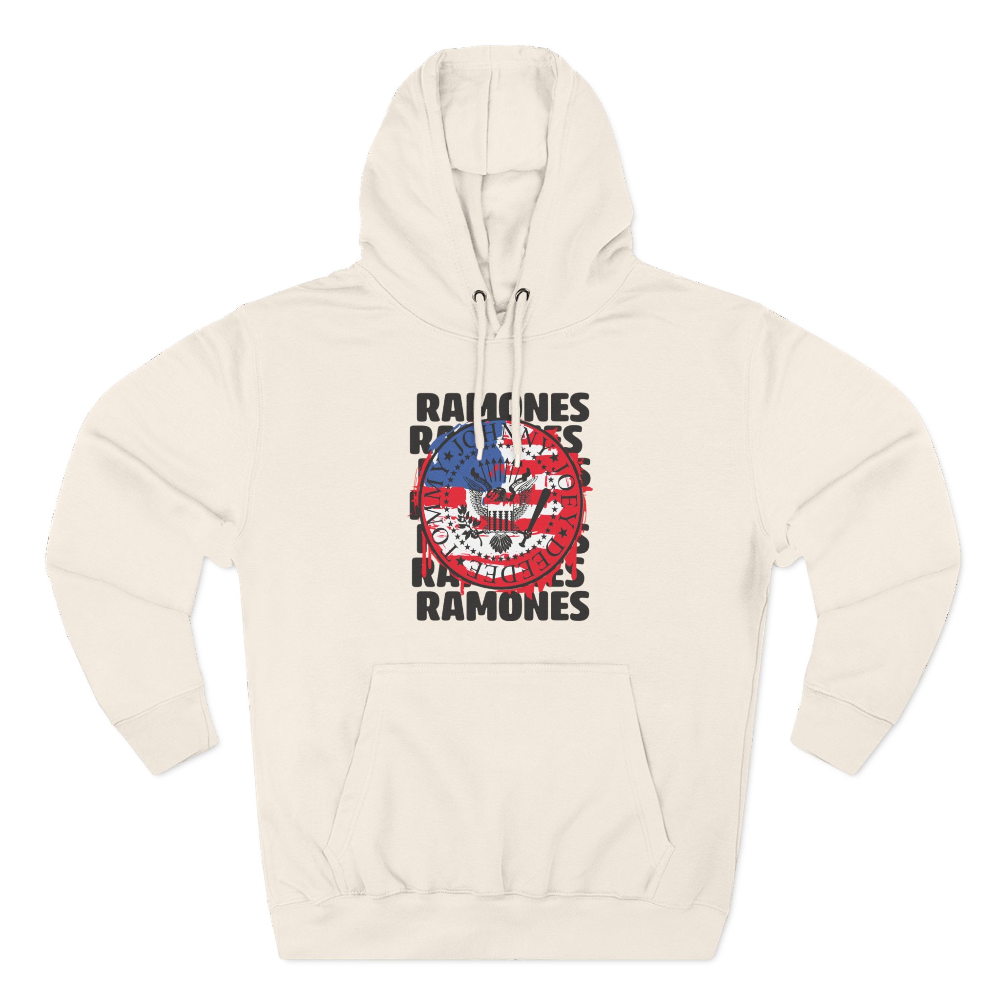Beat the cold with this Ramones US Flag premium pullover hoodie that’s just the right layer of warm and cozy. Made with three-panel fleece lining, this pullover is double stitched for durability and roomy. Pick one in your favorite color to match your style.