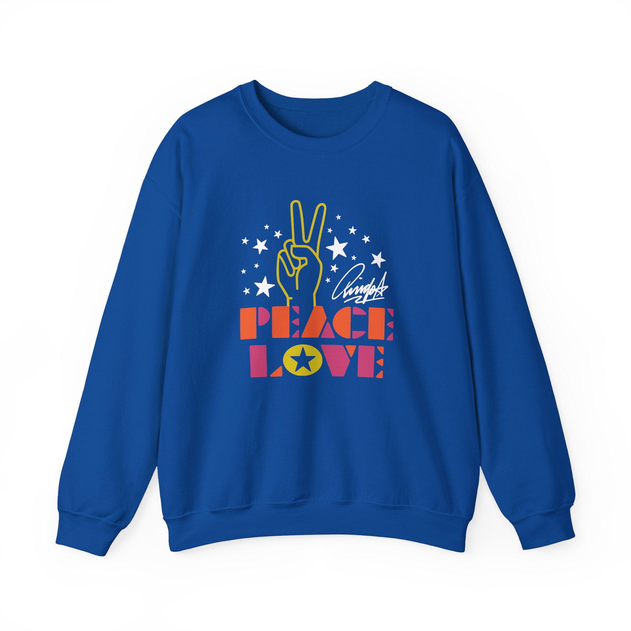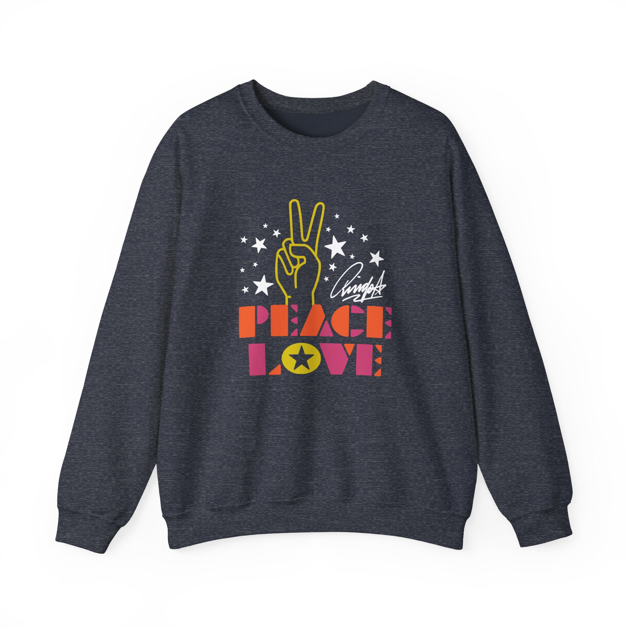 Ideal for any situation, a Ringo Starr Peace & Love Peace Sign unisex heavy blend crewneck sweatshirt is pure comfort. These garments are made from polyester and cotton. This combination helps designs come out looking fresh and beautiful. The collar is ribbed knit, so it retains its shape even after washing. There are no itchy side seams on these sweaters.