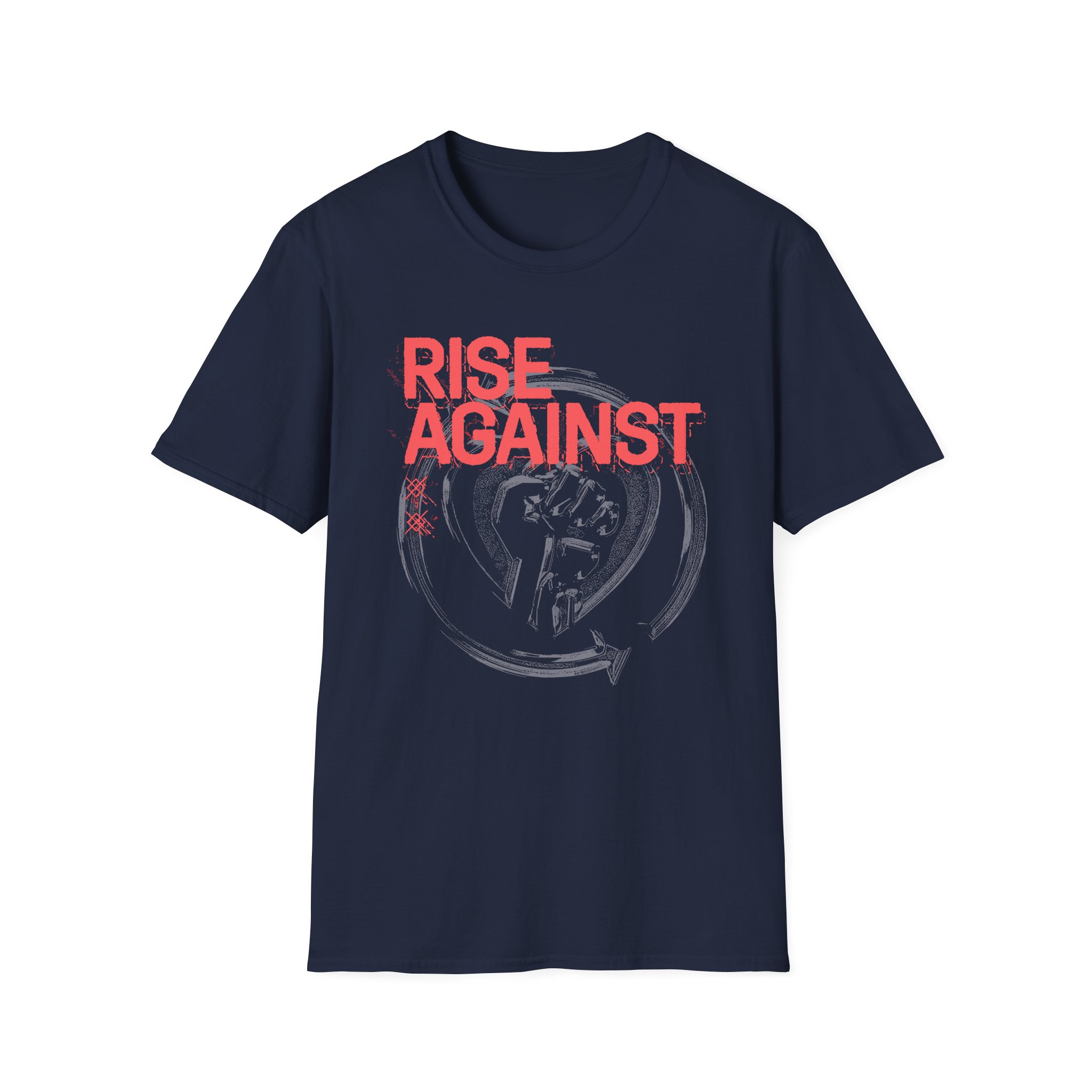 The Rise Against Dual Heartfist Logo unisex soft-style t-shirt puts a new spin on casual comfort. Made from very soft materials, this tee is 100% cotton for solid colors. Heather colors and sports grey include polyester. The shoulders have twill tape for improved durability. There are no side seams. The collar is made with ribbed knitting to prevent curling damage.