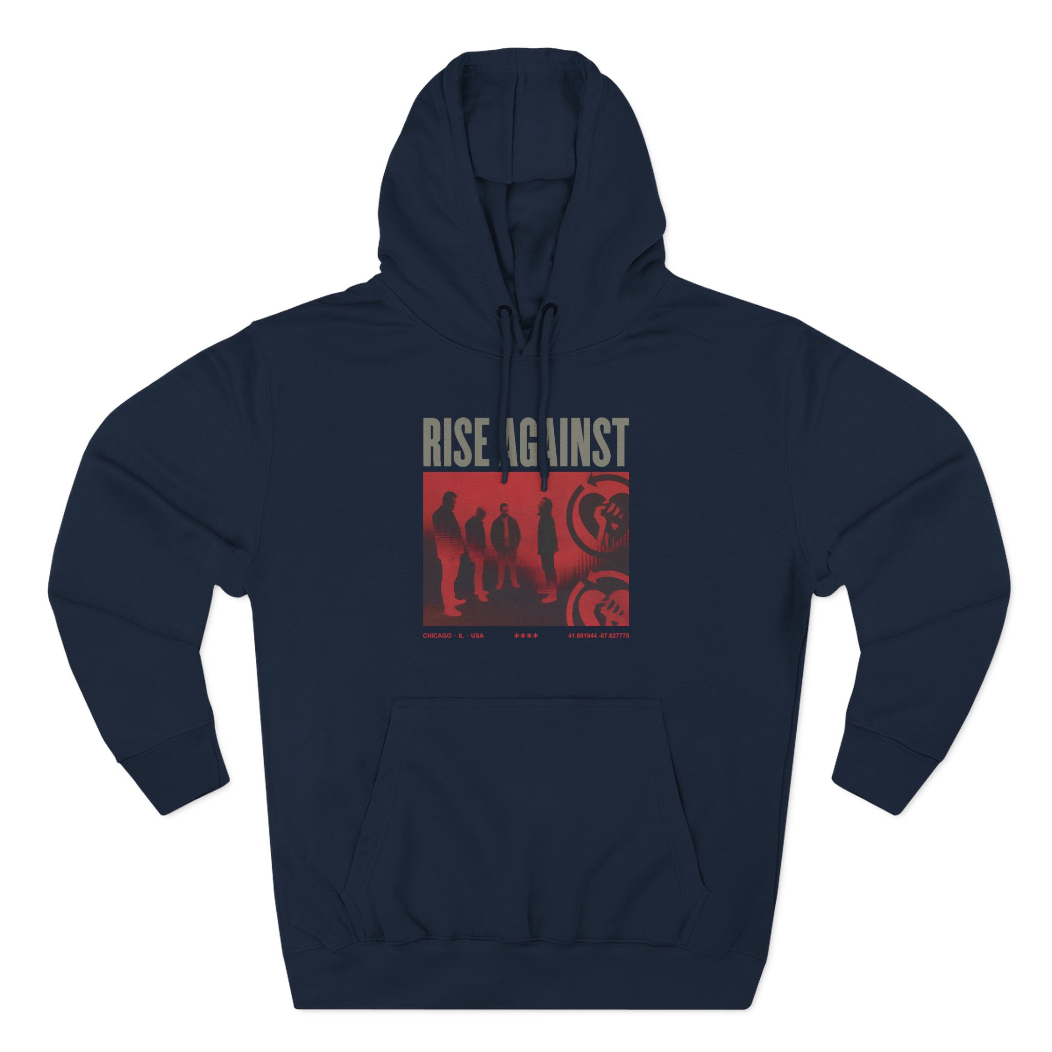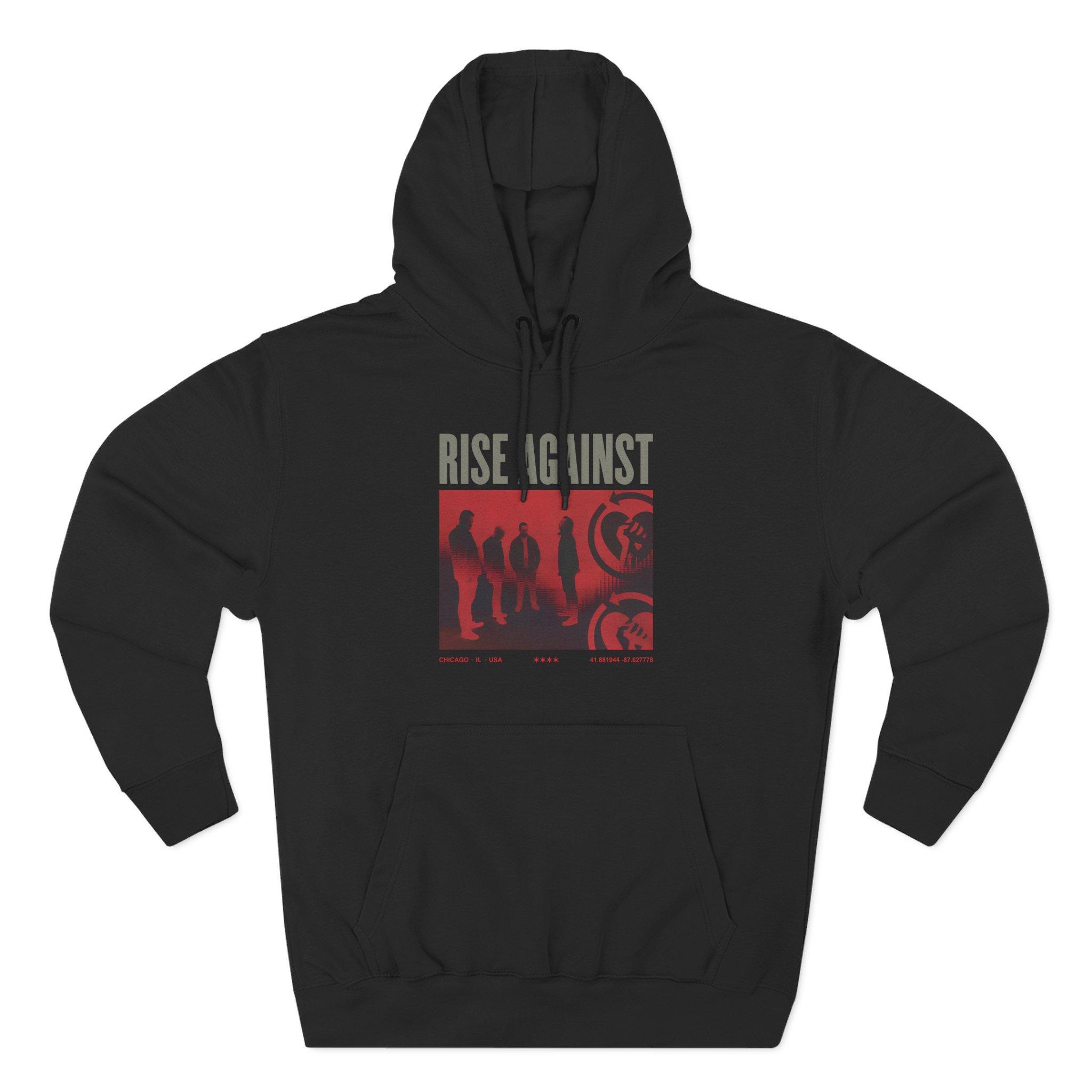 Beat the cold with this Rise Against Group Photo premium pullover hoodie that’s just the right layer of warm and cozy. Made with three-panel fleece lining, this pullover is double stitched for durability and roomy. Pick one in your favorite color to match your style.