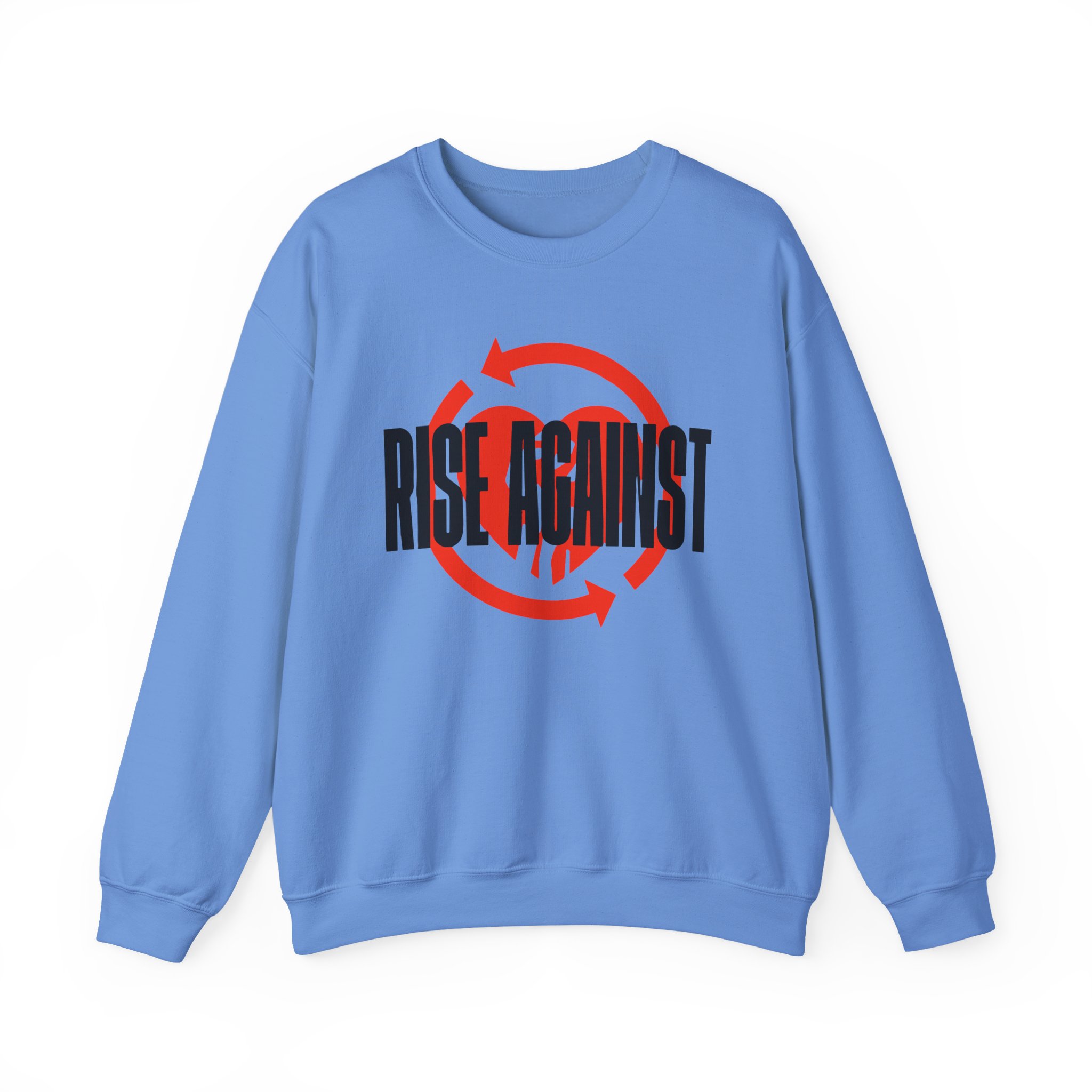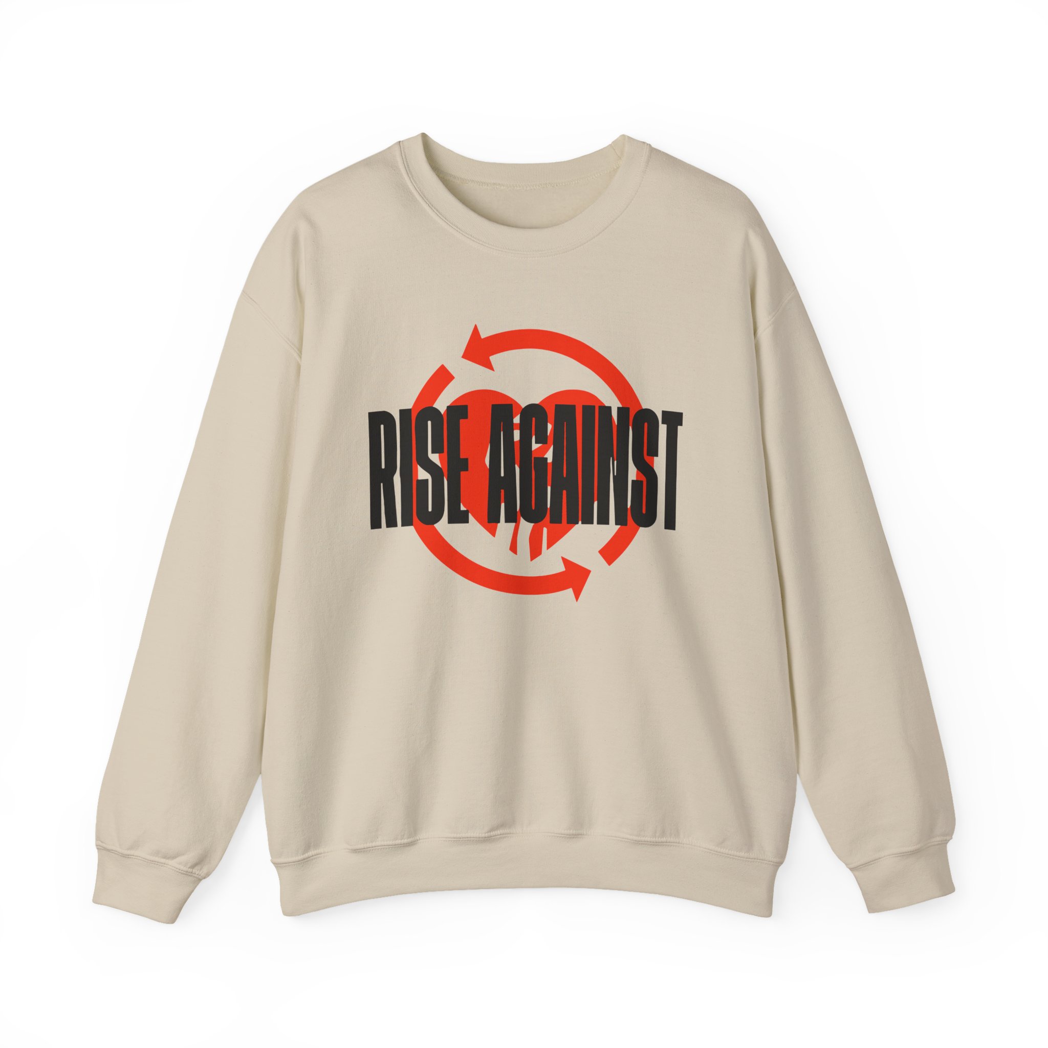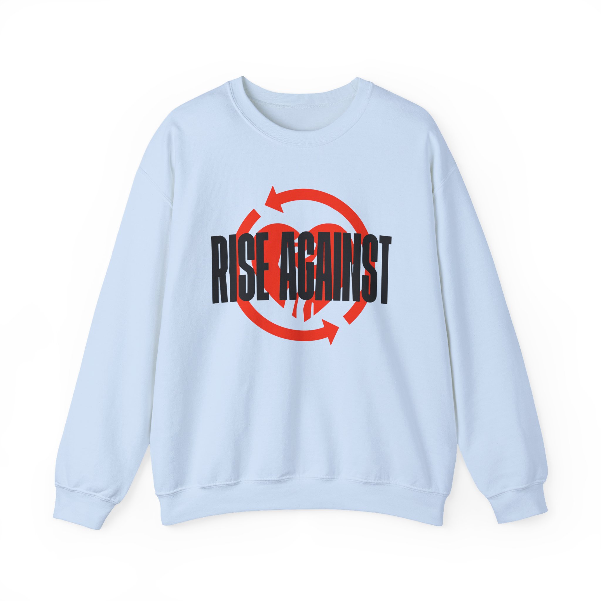 Ideal for any situation, a Rise Against Red Heartfist Label unisex heavy blend crewneck sweatshirt is pure comfort. These garments are made from polyester and cotton. This combination helps designs come out looking fresh and beautiful. The collar is ribbed knit, so it retains its shape even after washing. There are no itchy side seams on these sweaters.