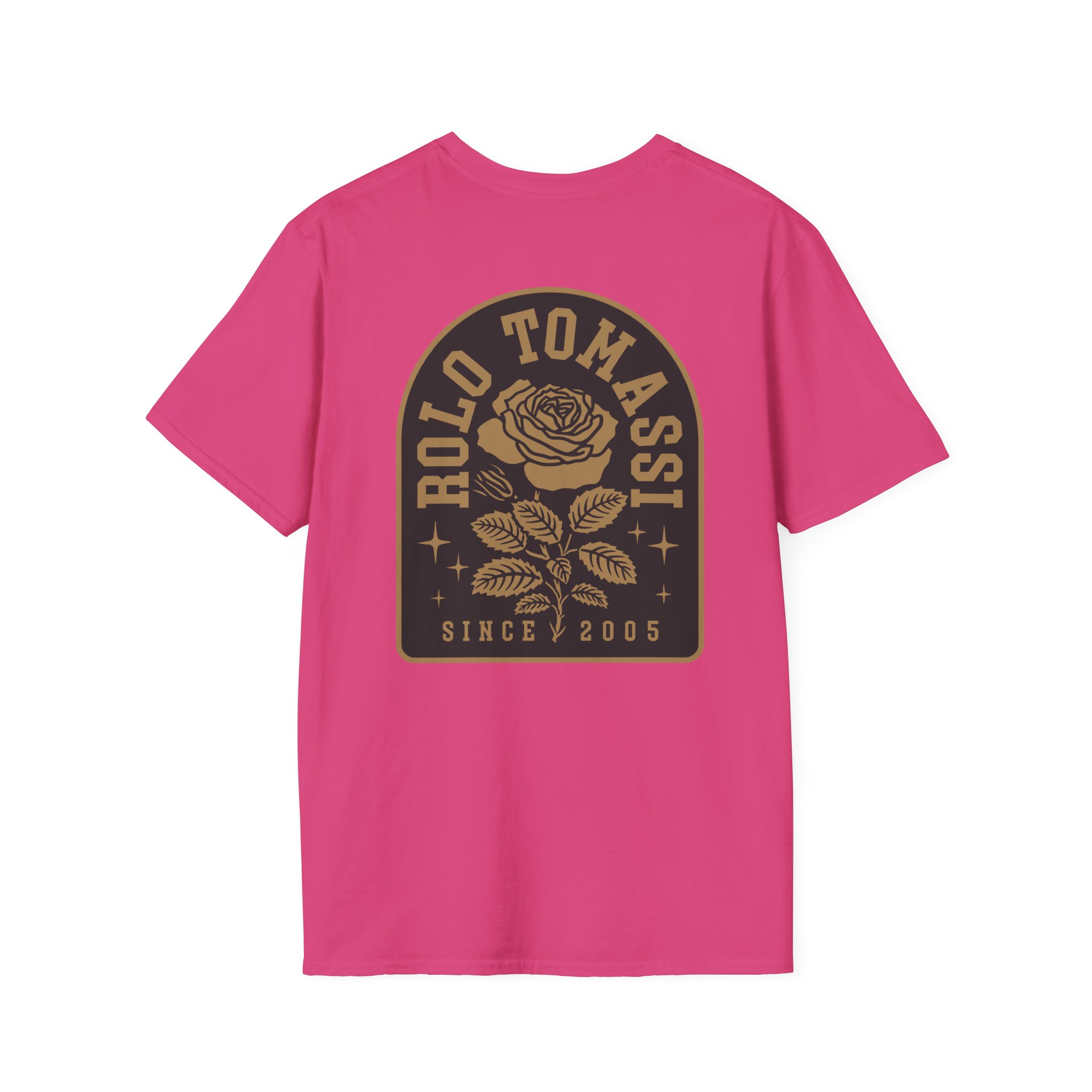 The Rolo Tomassi Rose Arch unisex soft-style t-shirt puts a new spin on casual comfort. Made from very soft materials, this tee is 100% cotton for solid colors. Heather colors and sports grey include polyester. The shoulders have twill tape for improved durability. There are no side seams. The collar is made with ribbed knitting to prevent curling damage.