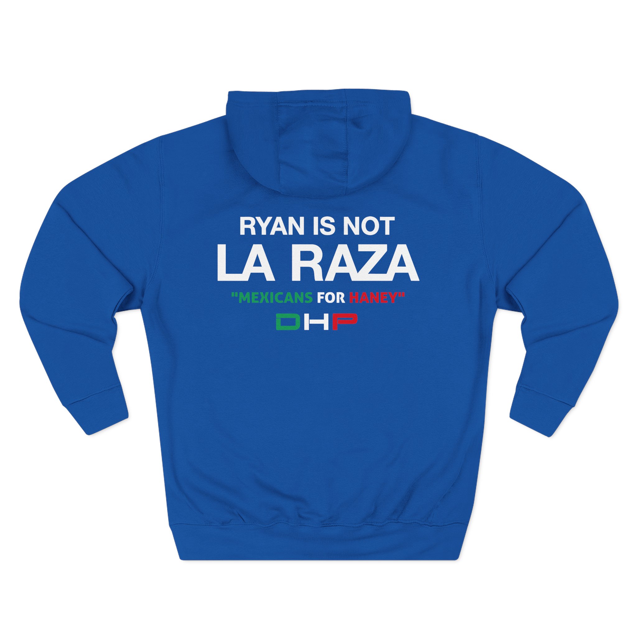 Beat the cold with this Ryan is Not a La Raza premium pullover hoodie that’s just the right layer of warm and cozy. Made with three-panel fleece lining, this pullover is double stitched for durability and roomy. Pick one in your favorite color to match your style.