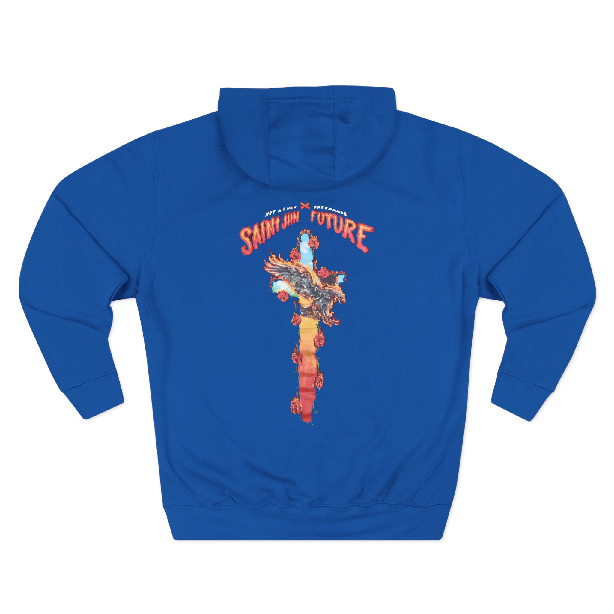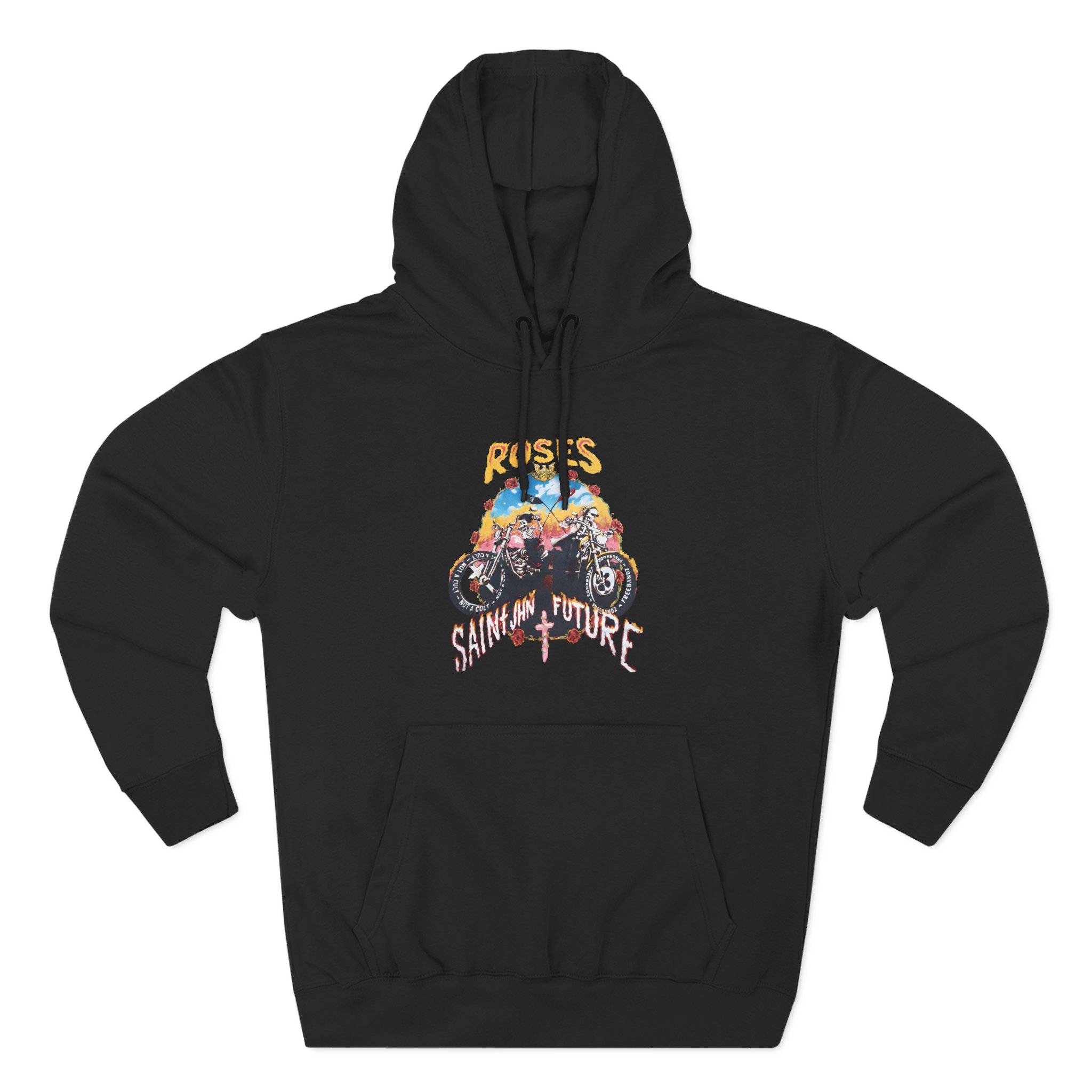 Beat the cold with this Saint Jhn Not a Cult X Freebandz Roses premium pullover hoodie that’s just the right layer of warm and cozy. Made with three-panel fleece lining, this pullover is double stitched for durability and roomy. Pick one in your favorite color to match your style.