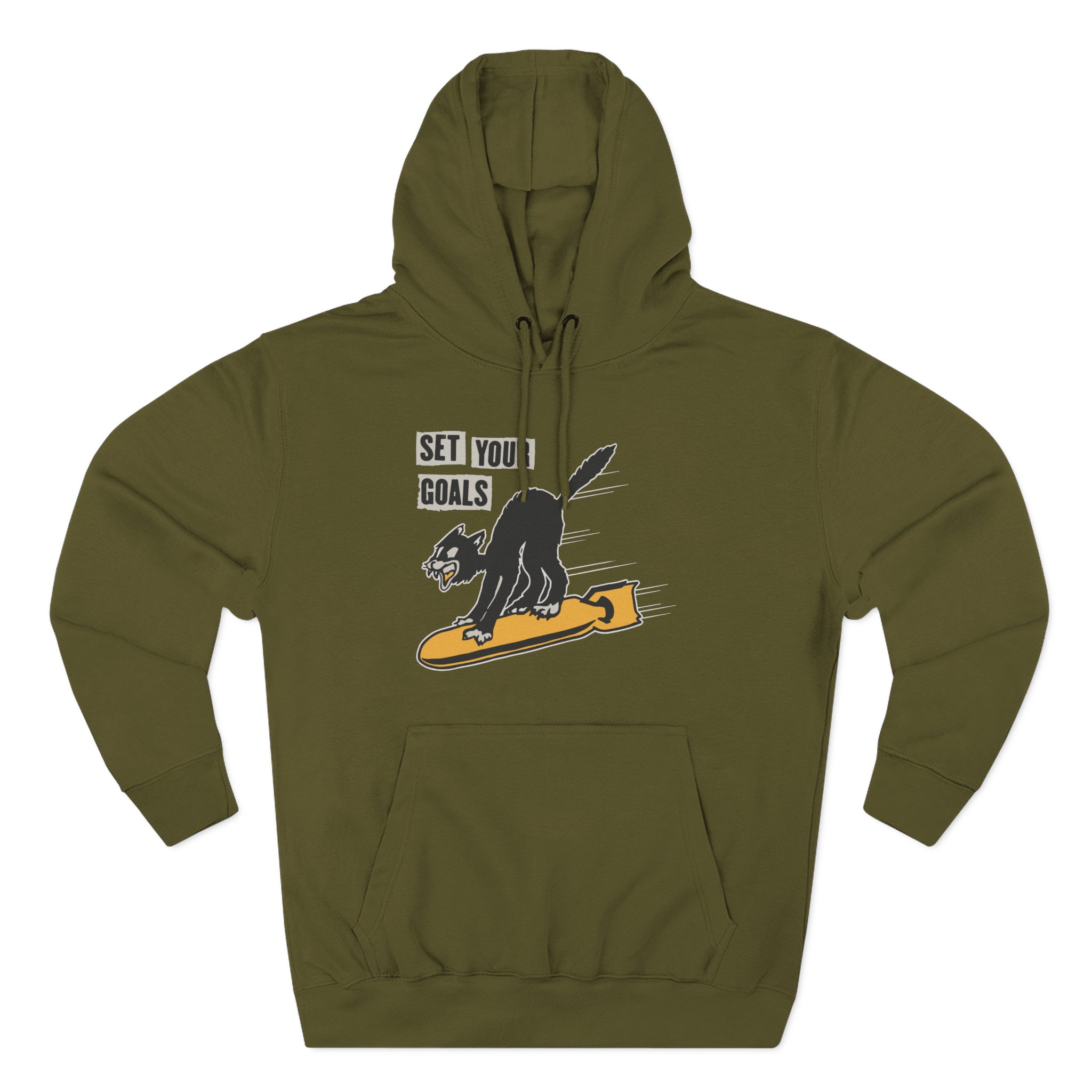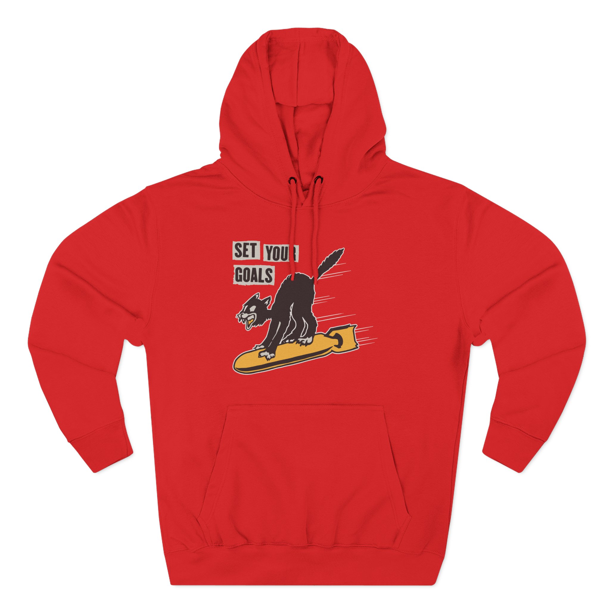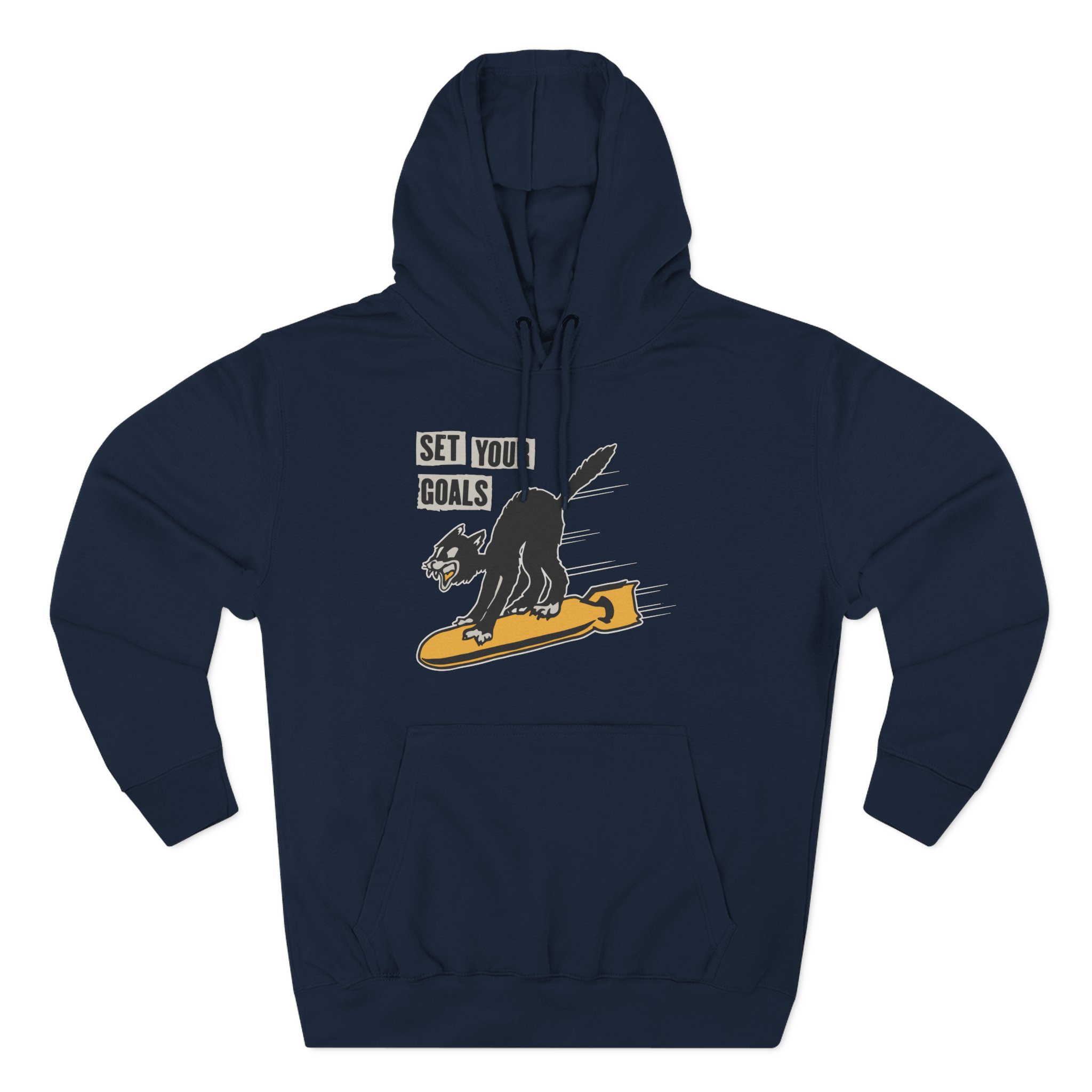 Beat the cold with this Set Your Goals Bomber premium pullover hoodie that’s just the right layer of warm and cozy. Made with three-panel fleece lining, this pullover is double stitched for durability and roomy. Pick one in your favorite color to match your style.