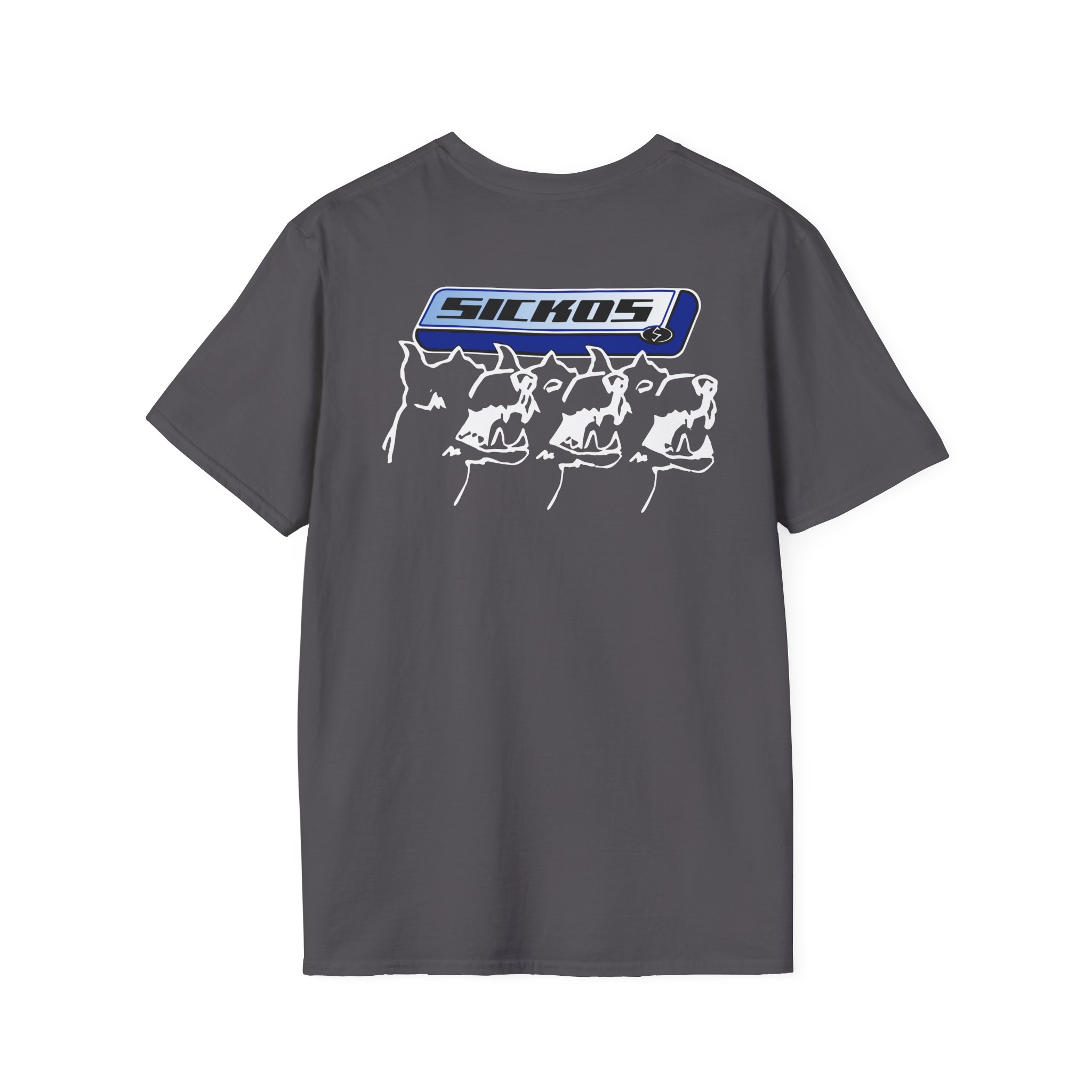 The Sickos unisex soft-style t-shirt puts a new spin on casual comfort. Made from very soft materials, this tee is 100% cotton for solid colors. Heather colors and sports grey include polyester. The shoulders have twill tape for improved durability. There are no side seams. The collar is made with ribbed knitting to prevent curling damage.