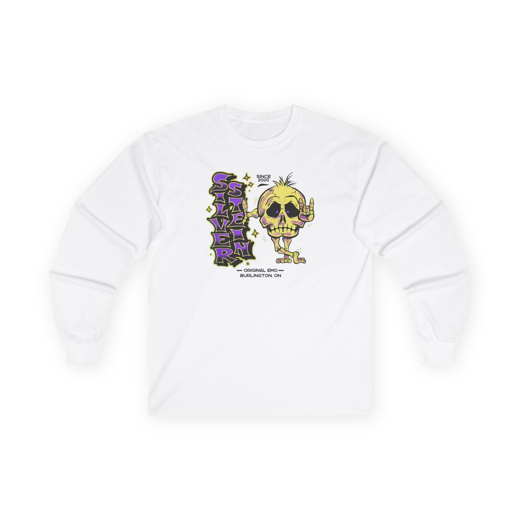 A bit more formal than a standard-issue t-shirt, the Silverstein Skeleton ultra cotton long sleeve tee is a clear comfort winner. The sleeves also act as a nice frame. There are no side seams. The shoulders are taped for improved durability. This makes for a good fitting around the shoulders and neck. The cotton used for these shirts is environmentally friendly.