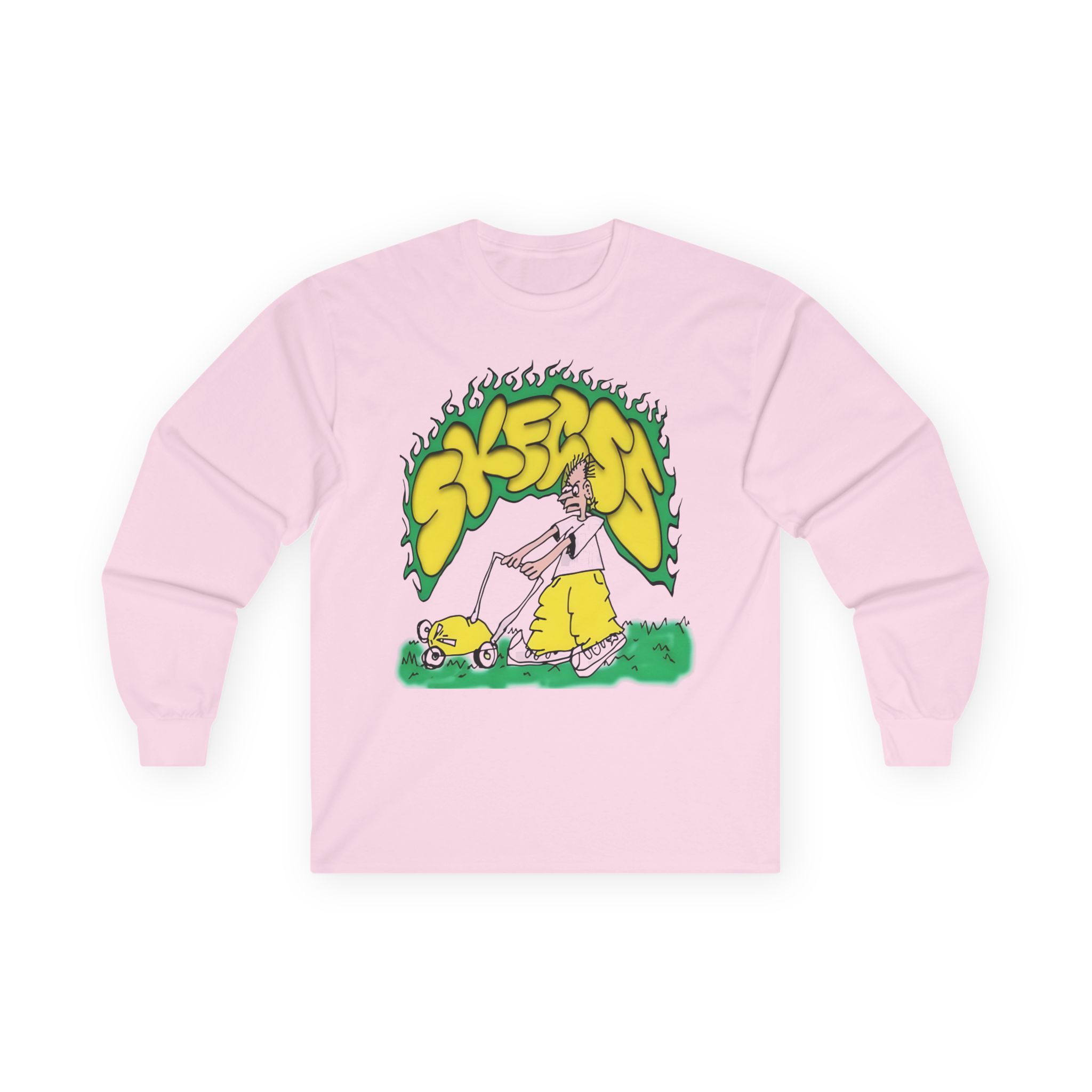 A bit more formal than a standard-issue t-shirt, the Skegss Lawn Mower ultra cotton long sleeve tee is a clear comfort winner. The sleeves also act as a nice frame. There are no side seams. The shoulders are taped for improved durability. This makes for a good fitting around the shoulders and neck. The cotton used for these shirts is environmentally friendly.