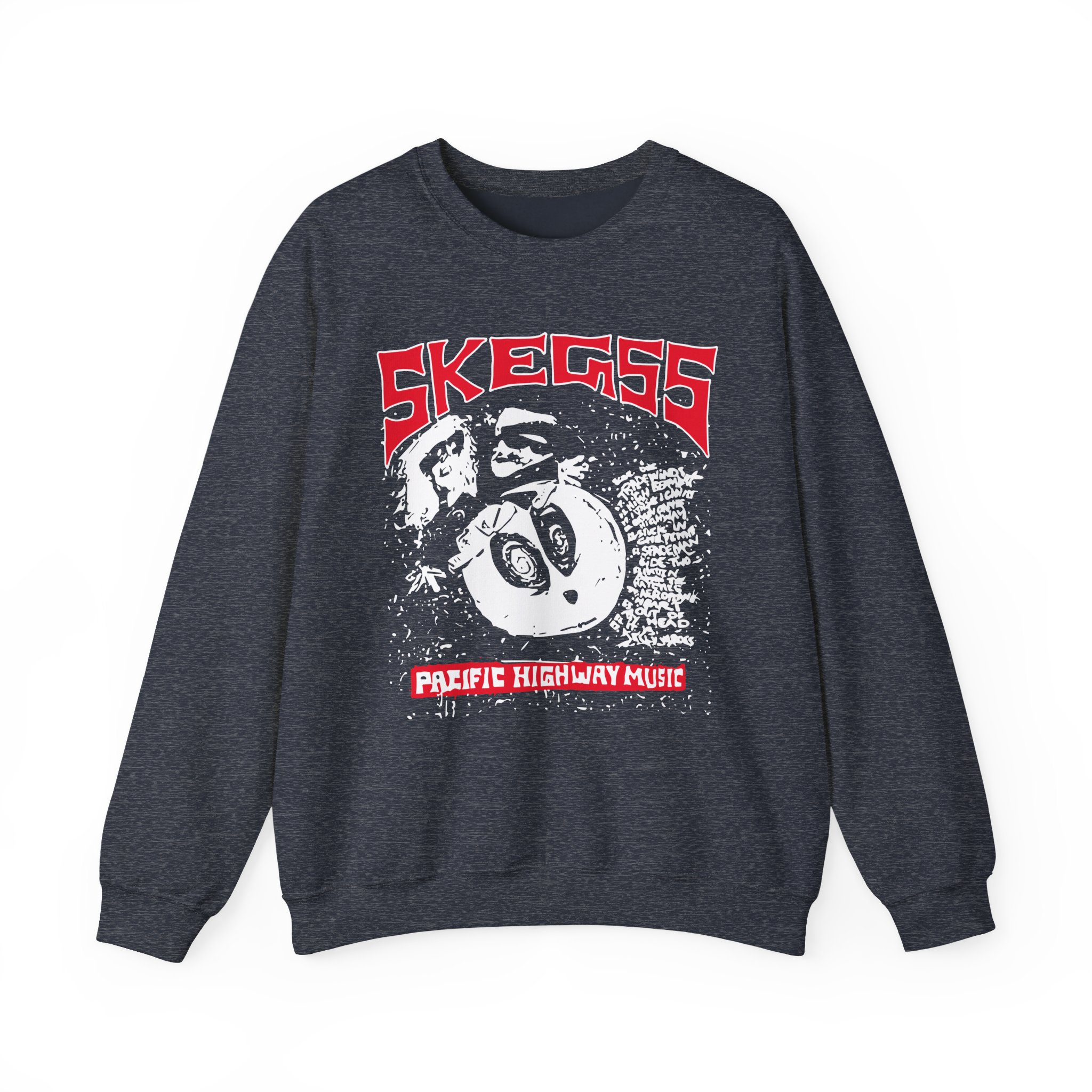 Ideal for any situation, a Skegss Pacific Highway Music unisex heavy blend crewneck sweatshirt is pure comfort. These garments are made from polyester and cotton. This combination helps designs come out looking fresh and beautiful. The collar is ribbed knit, so it retains its shape even after washing. There are no itchy side seams on these sweaters.