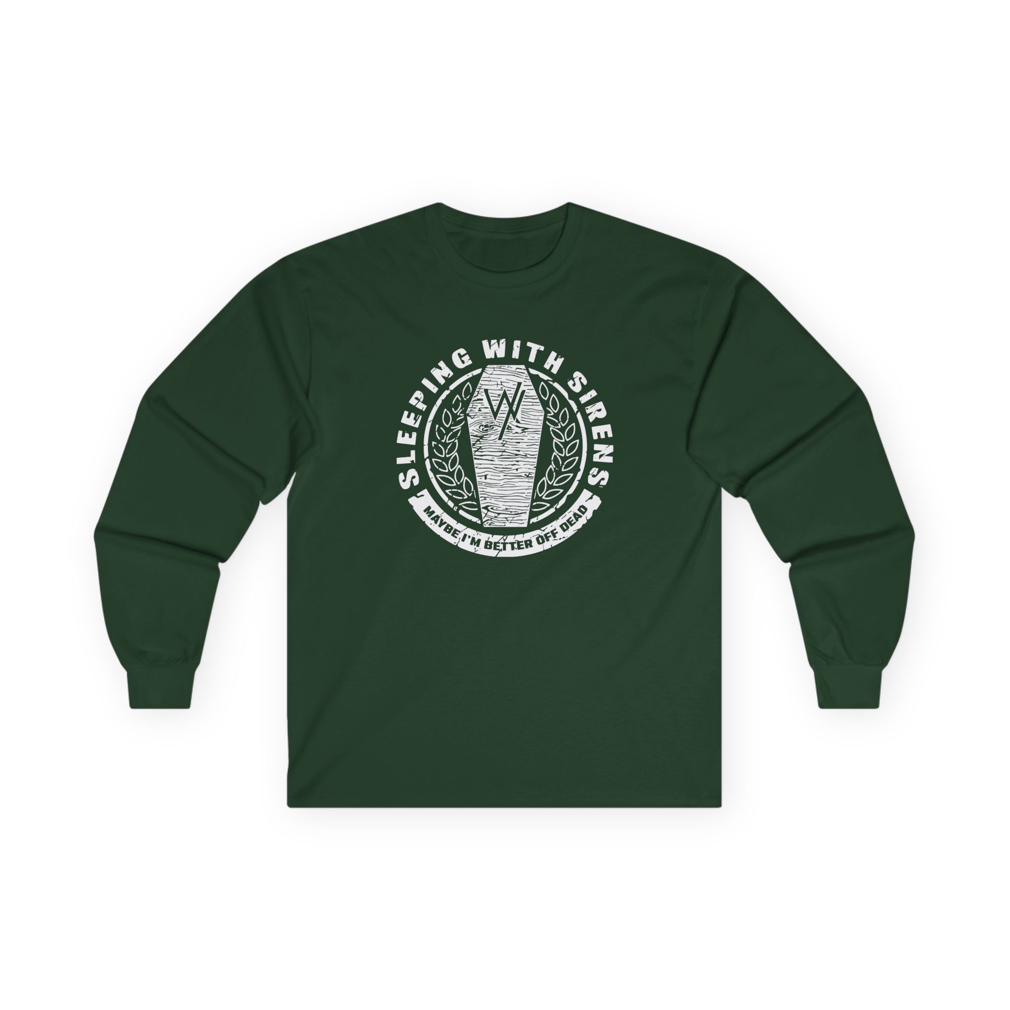 A bit more formal than a standard-issue t-shirt, the Sleeping With Sirens Coffin ultra cotton long sleeve tee is a clear comfort winner. The sleeves also act as a nice frame. There are no side seams. The shoulders are taped for improved durability. This makes for a good fitting around the shoulders and neck. The cotton used for these shirts is environmentally friendly.