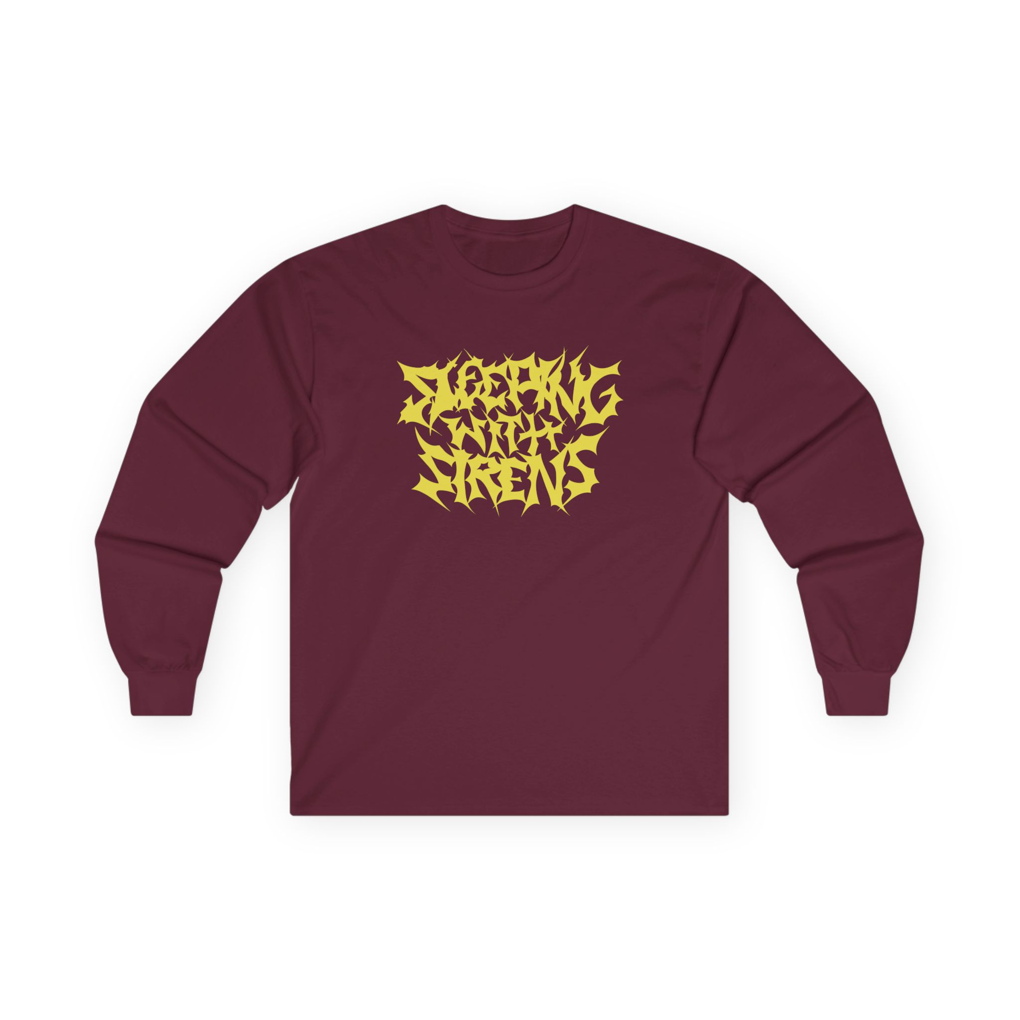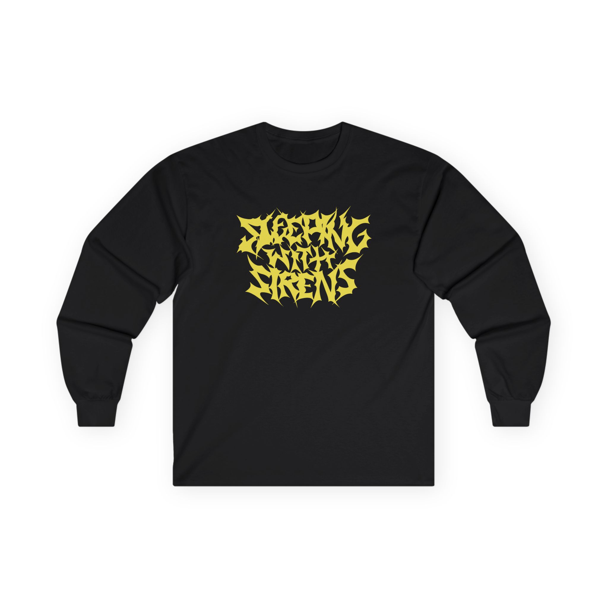 A bit more formal than a standard-issue t-shirt, the Sleeping With Sirens Metal Logo ultra cotton long sleeve tee is a clear comfort winner. The sleeves also act as a nice frame. There are no side seams. The shoulders are taped for improved durability. This makes for a good fitting around the shoulders and neck. The cotton used for these shirts is environmentally friendly.
