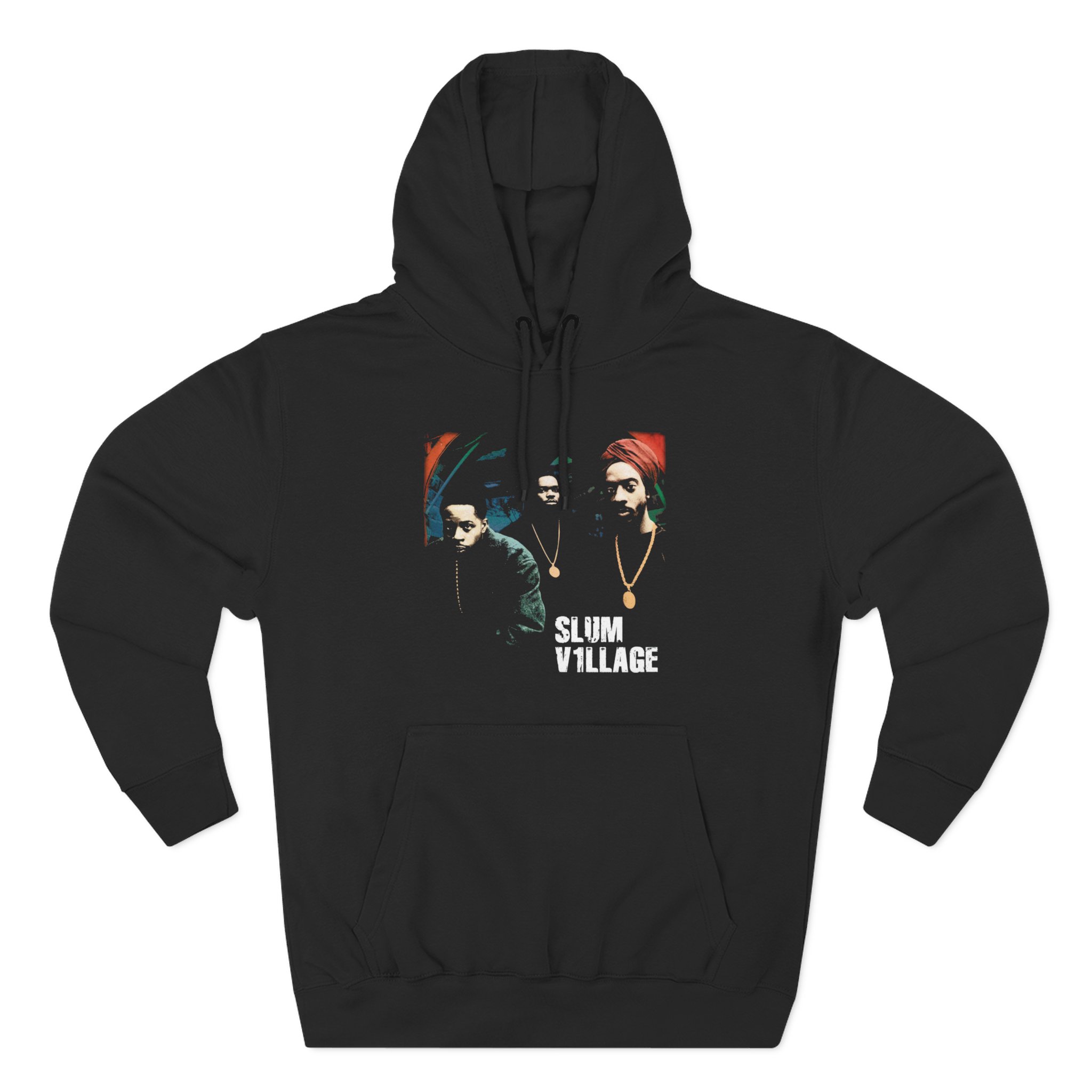 Beat the cold with this Slum Village premium pullover hoodie that’s just the right layer of warm and cozy. Made with three-panel fleece lining, this pullover is double stitched for durability and roomy. Pick one in your favorite color to match your style.