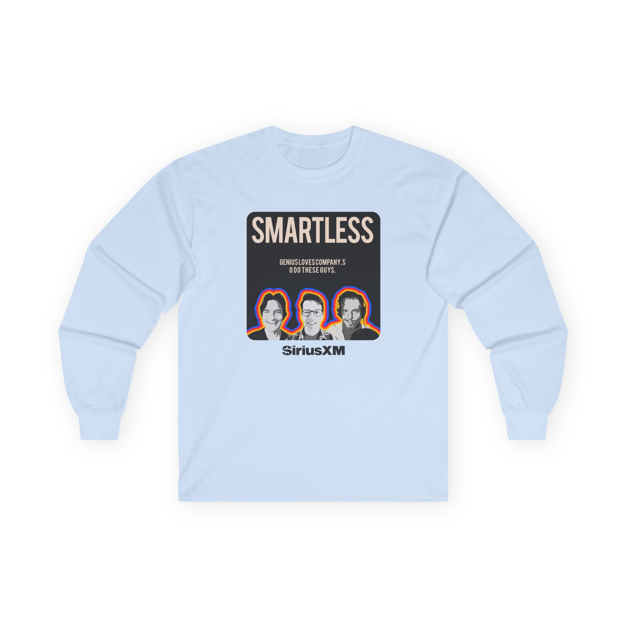 A bit more formal than a standard-issue t-shirt, the Smartless Genius Loves Company Logo ultra cotton long sleeve tee is a clear comfort winner. The sleeves also act as a nice frame. There are no side seams. The shoulders are taped for improved durability. This makes for a good fitting around the shoulders and neck. The cotton used for these shirts is environmentally friendly.