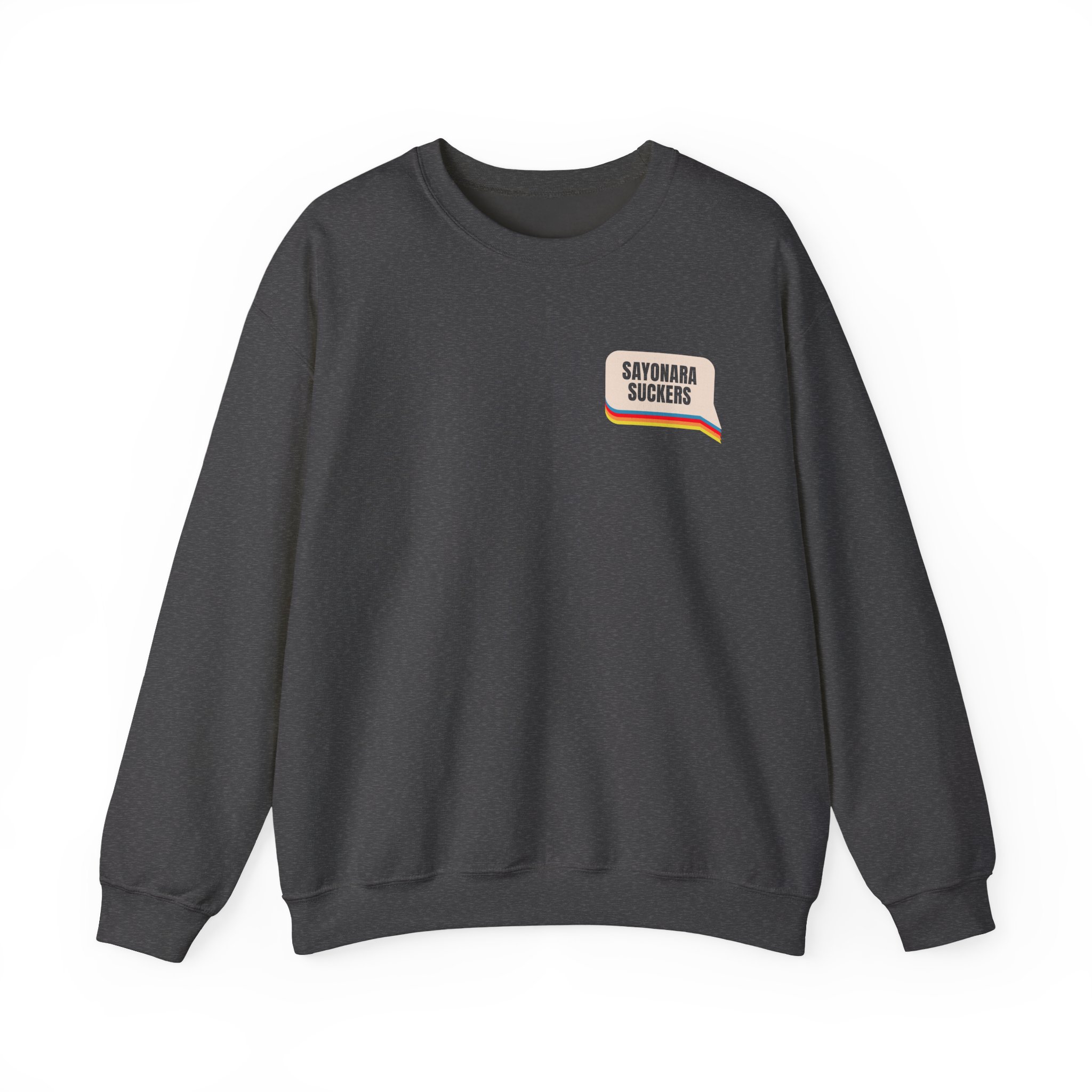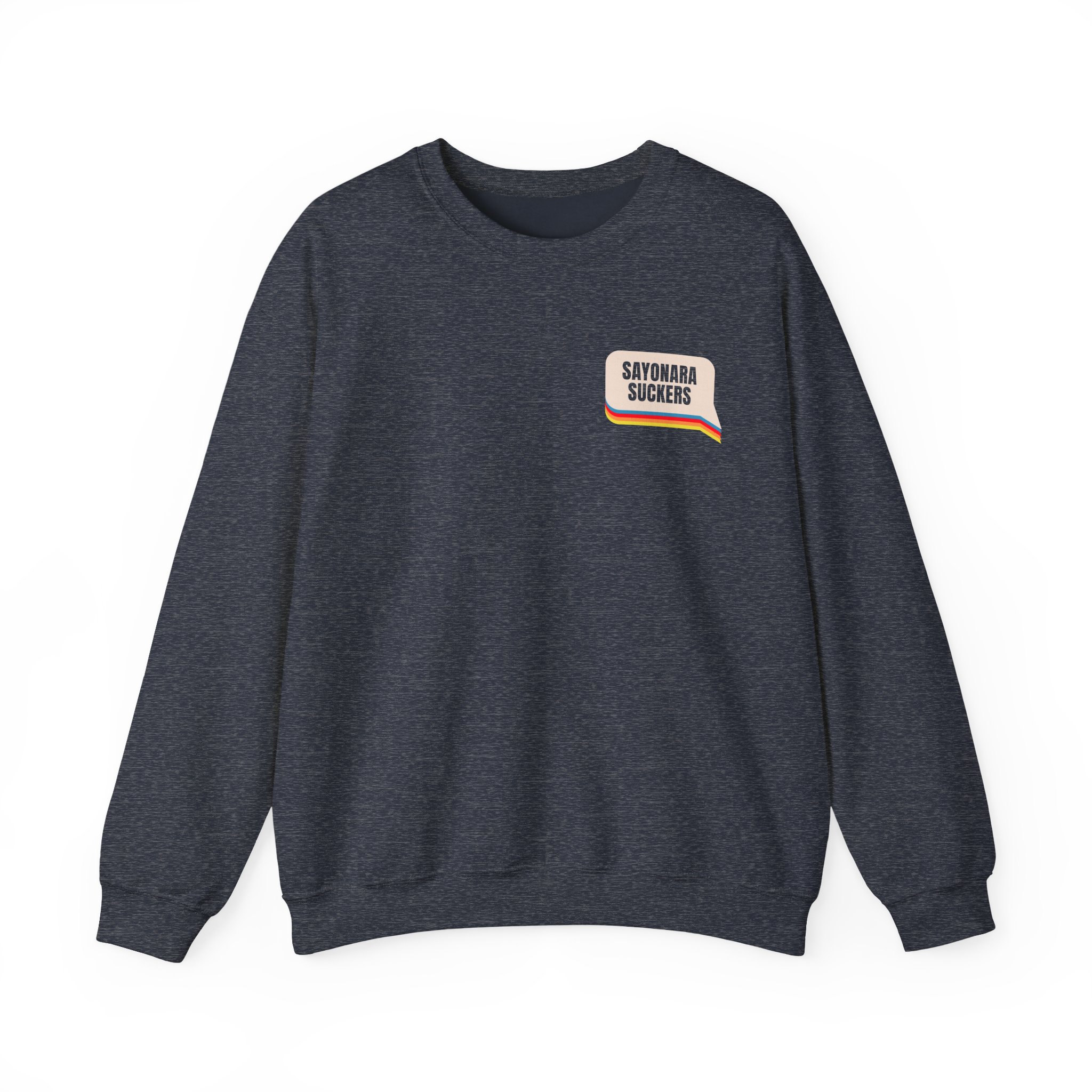 Ideal for any situation, a Smartless Sayonara Suckers unisex heavy blend crewneck sweatshirt is pure comfort. These garments are made from polyester and cotton. This combination helps designs come out looking fresh and beautiful. The collar is ribbed knit, so it retains its shape even after washing. There are no itchy side seams on these sweaters.